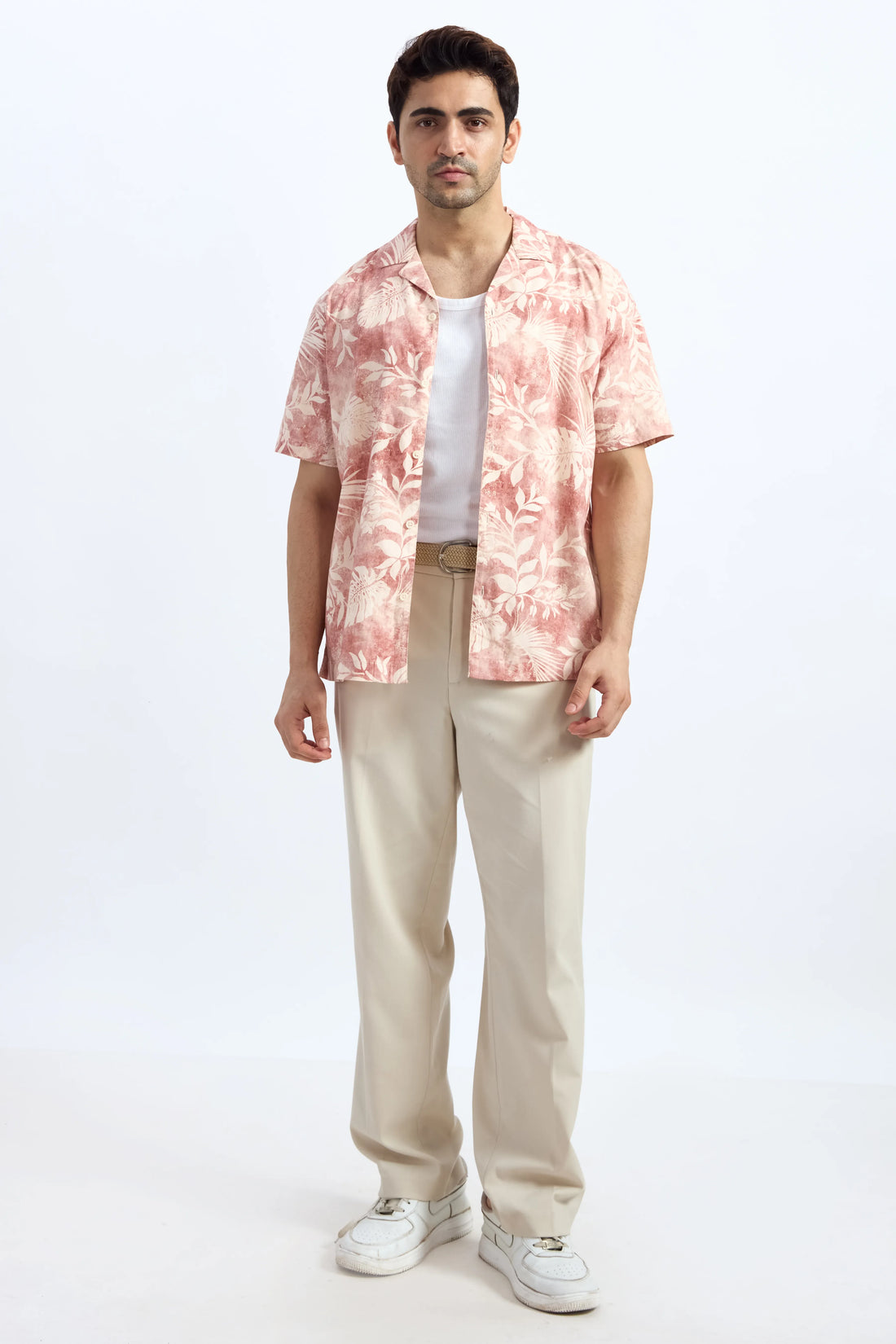 LIGHT RED PRINTED RELAXED FIT COTTON SHIRT