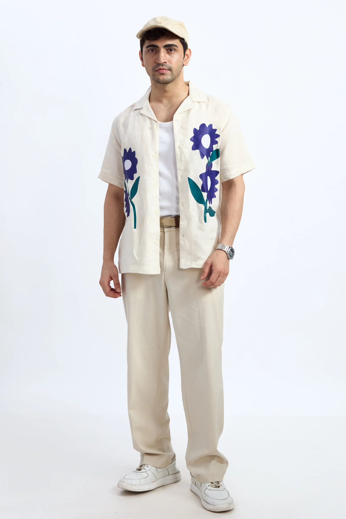 SUNFLOWER LINEN BLEND PRINTED CUBAN SHIRT