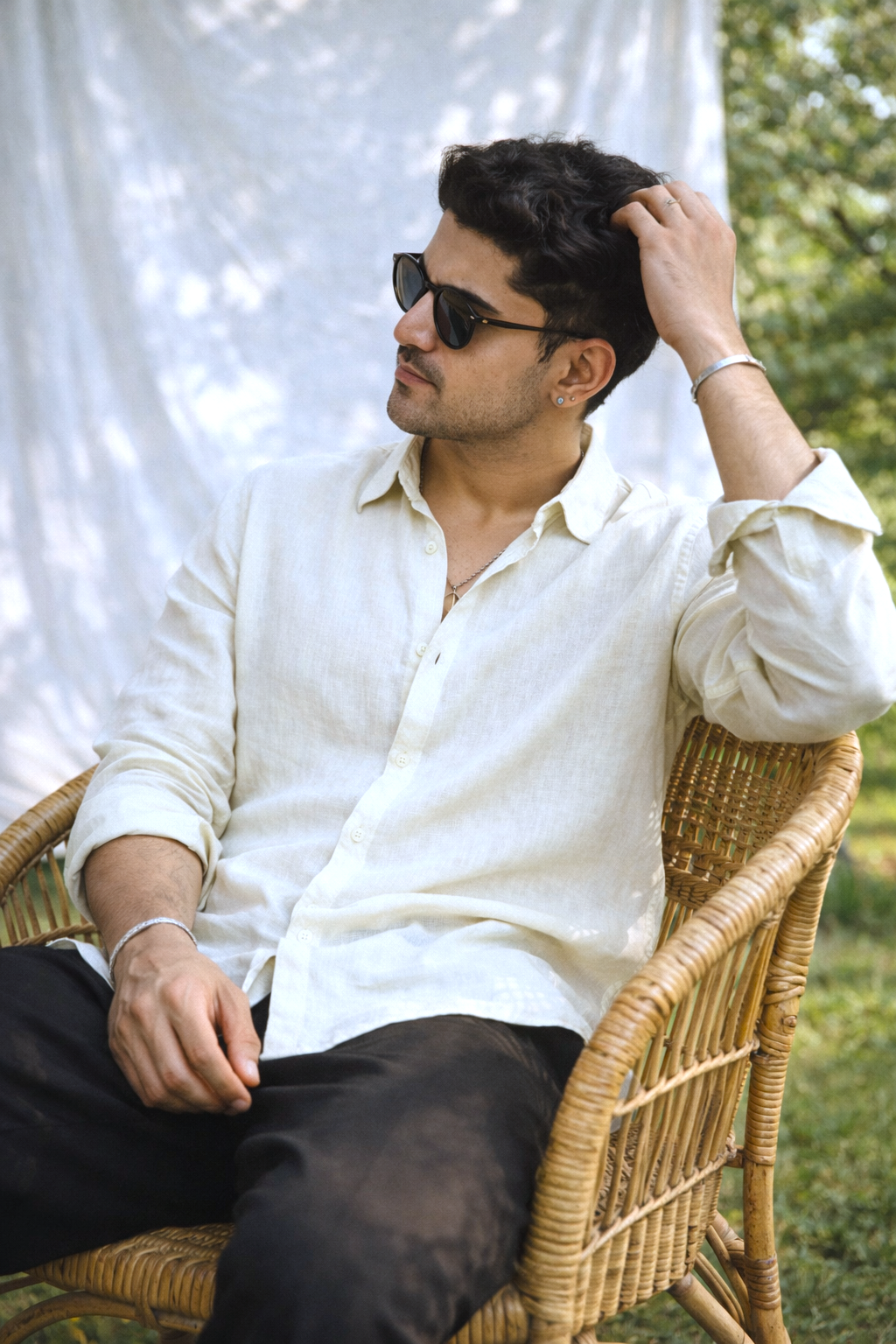 WHITE LINEN BLEND MANDARIN SHIRT