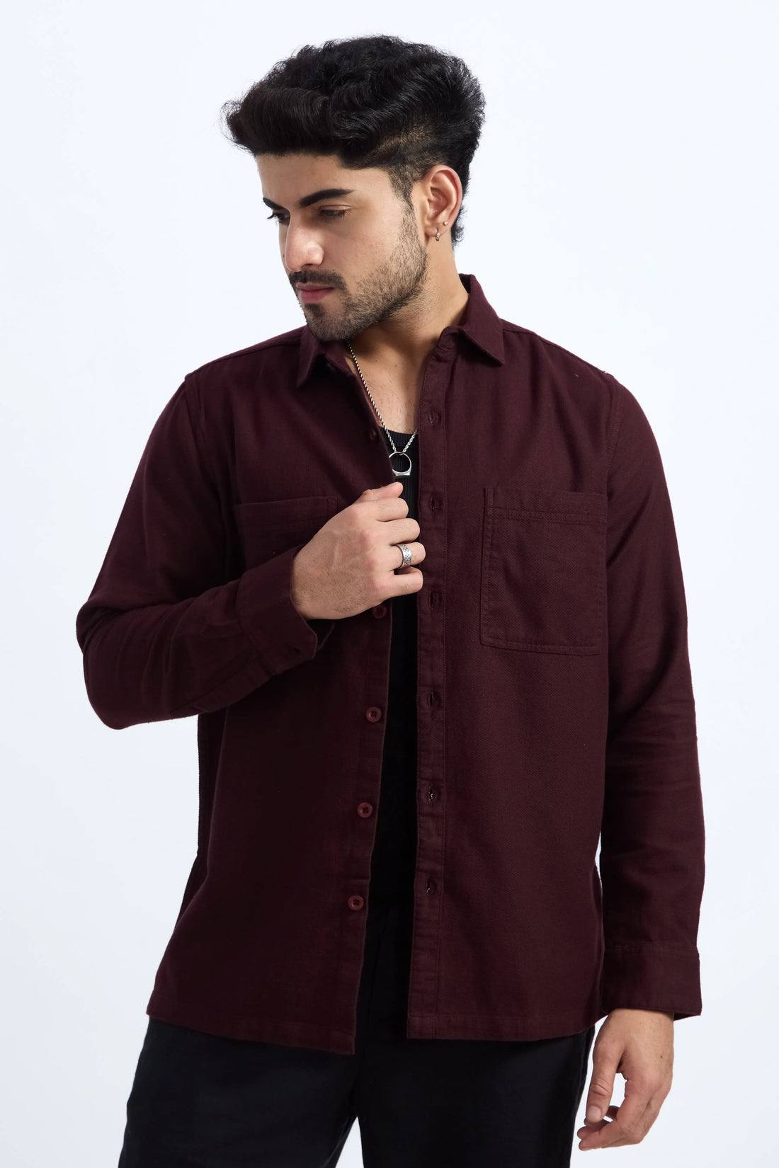 Make a statement with our dark maroon textured shacket, expertly crafted from 100% cotton for...