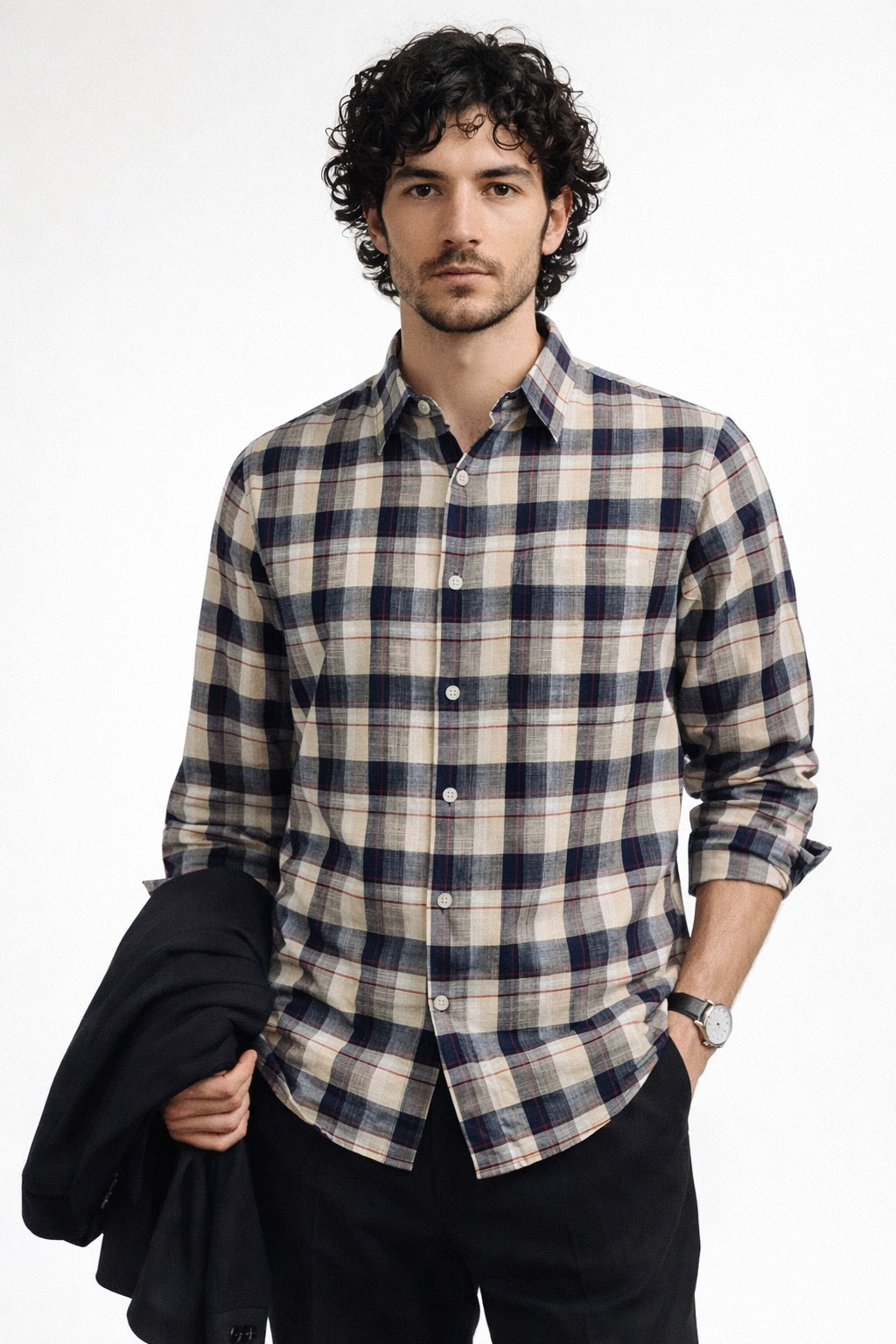 XKIND This classic olive and navy blue-coloured check pattern exudes timeless style, ensuring you look...