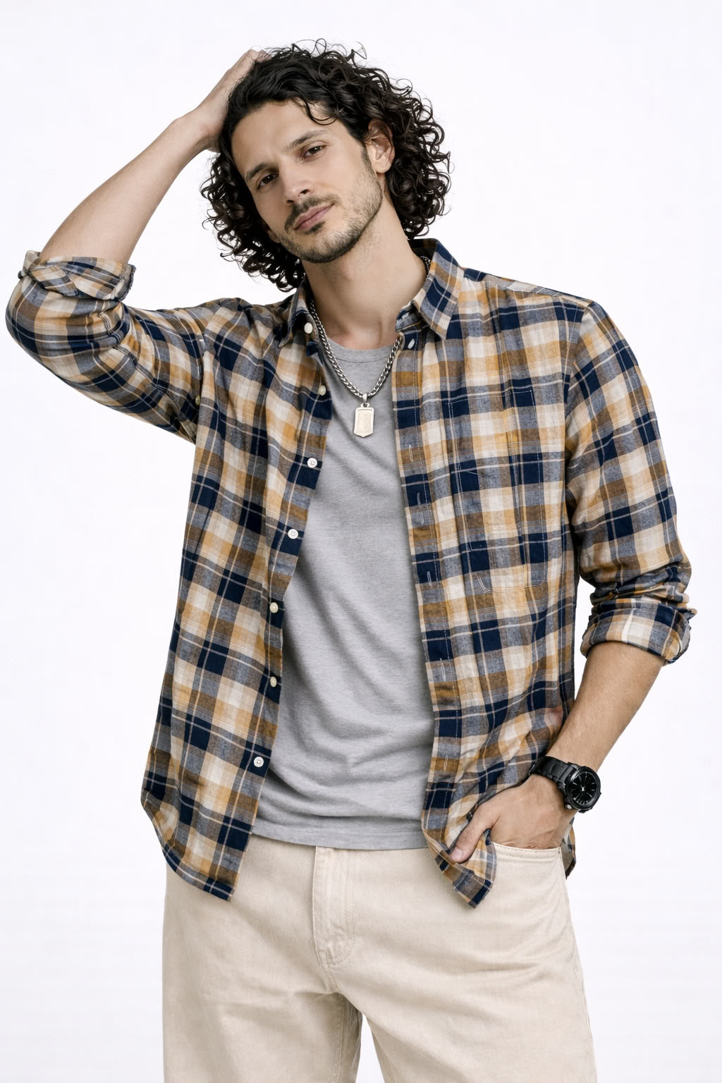 Jonesburg Colour: Beige Fabric : 100% Cotton Sleeves: Full Sleeves Pattern : Checks Fit :...