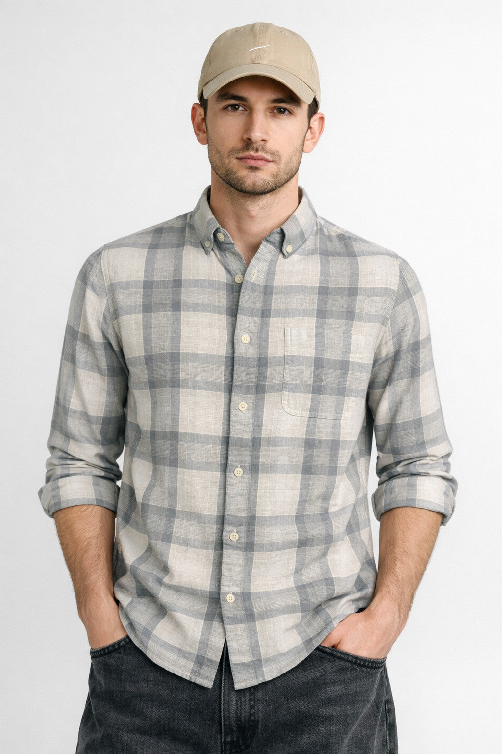 Fabric: Linen BlendPattern: ChecksCollar: Regular Button DownFit: Regular FitPlacket: 28 mm [box]Bottom Hem: Regular Round...
