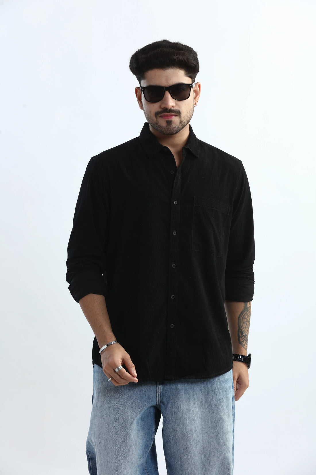 XKIND MEN'S BLACK FINE CORDUROY REGULAR FIT SHIRT