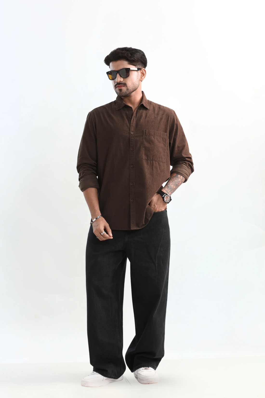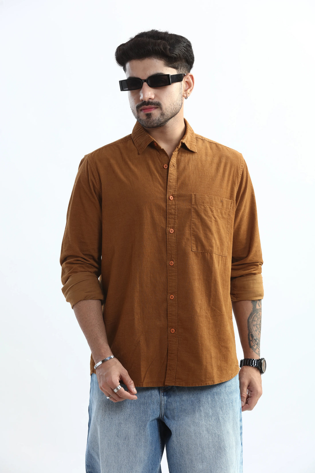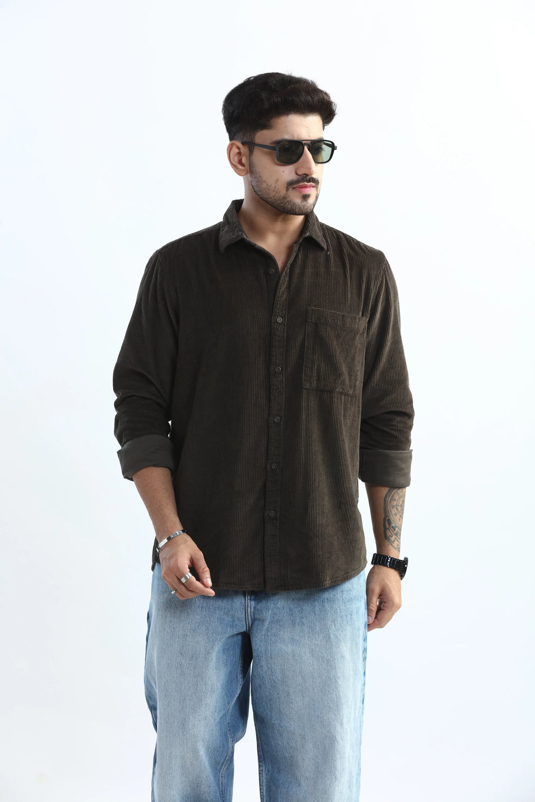 XKIND MEN'S MOCHA BROWN FINE CORDUROY REGULAR FIT SHIRT