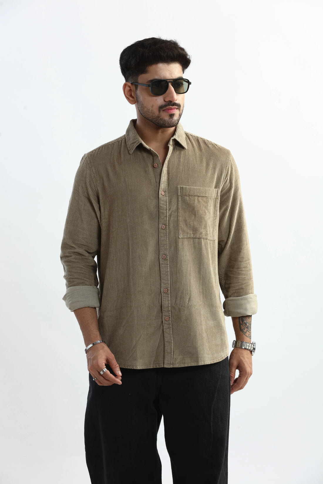 XKIND MEN'S BEIGE CORDUROY REGULAR FIT SHIRT