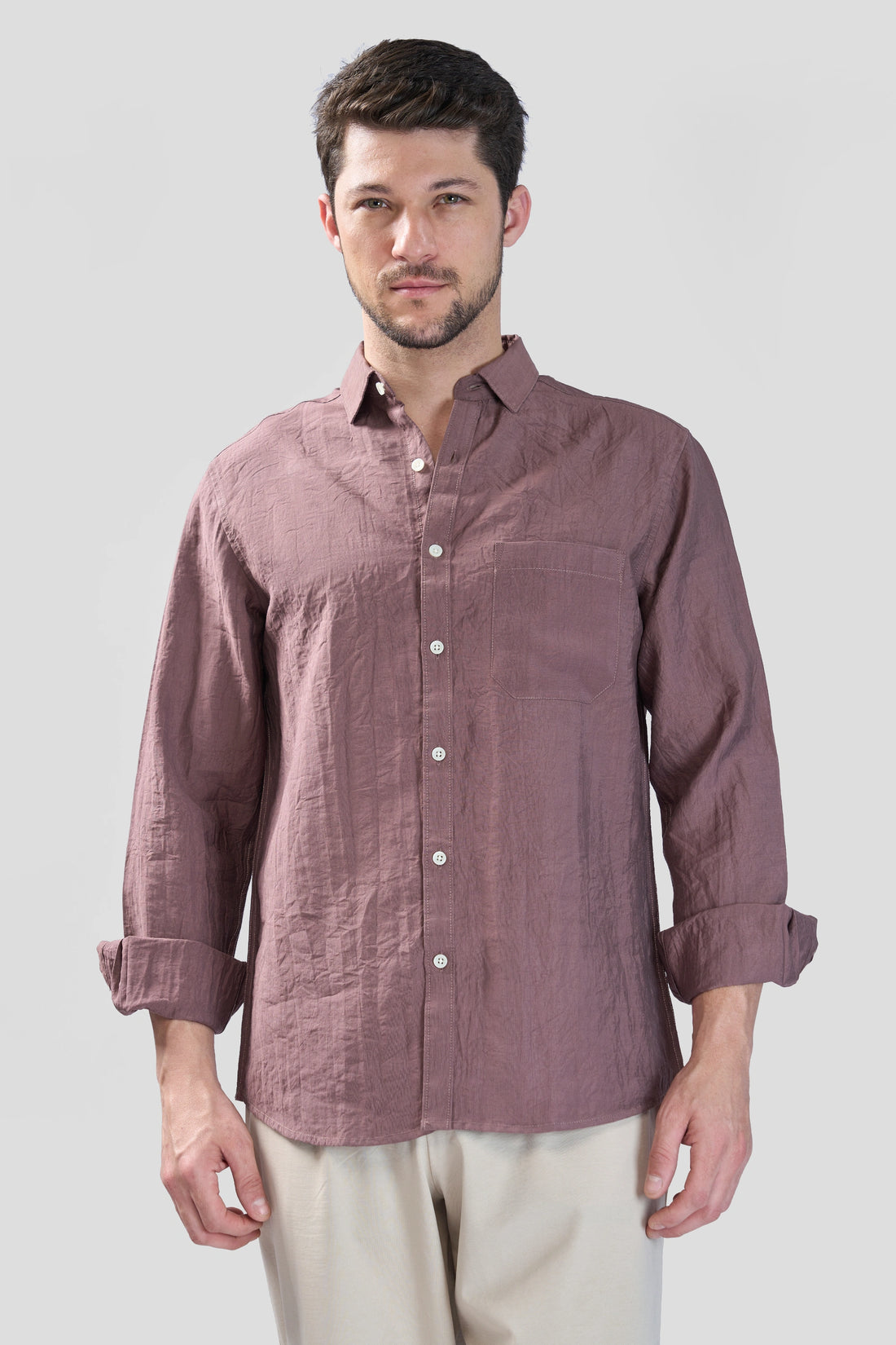 XKIND BROWN CRUSH WRINKLED LOOK REGULAR FIT SHIRT