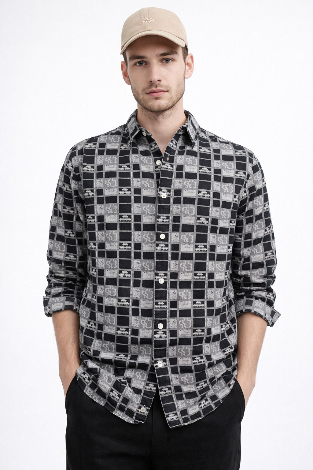 JACQUARD[COTTON] BLACK REGULAR FIT CASUAL SHIRT