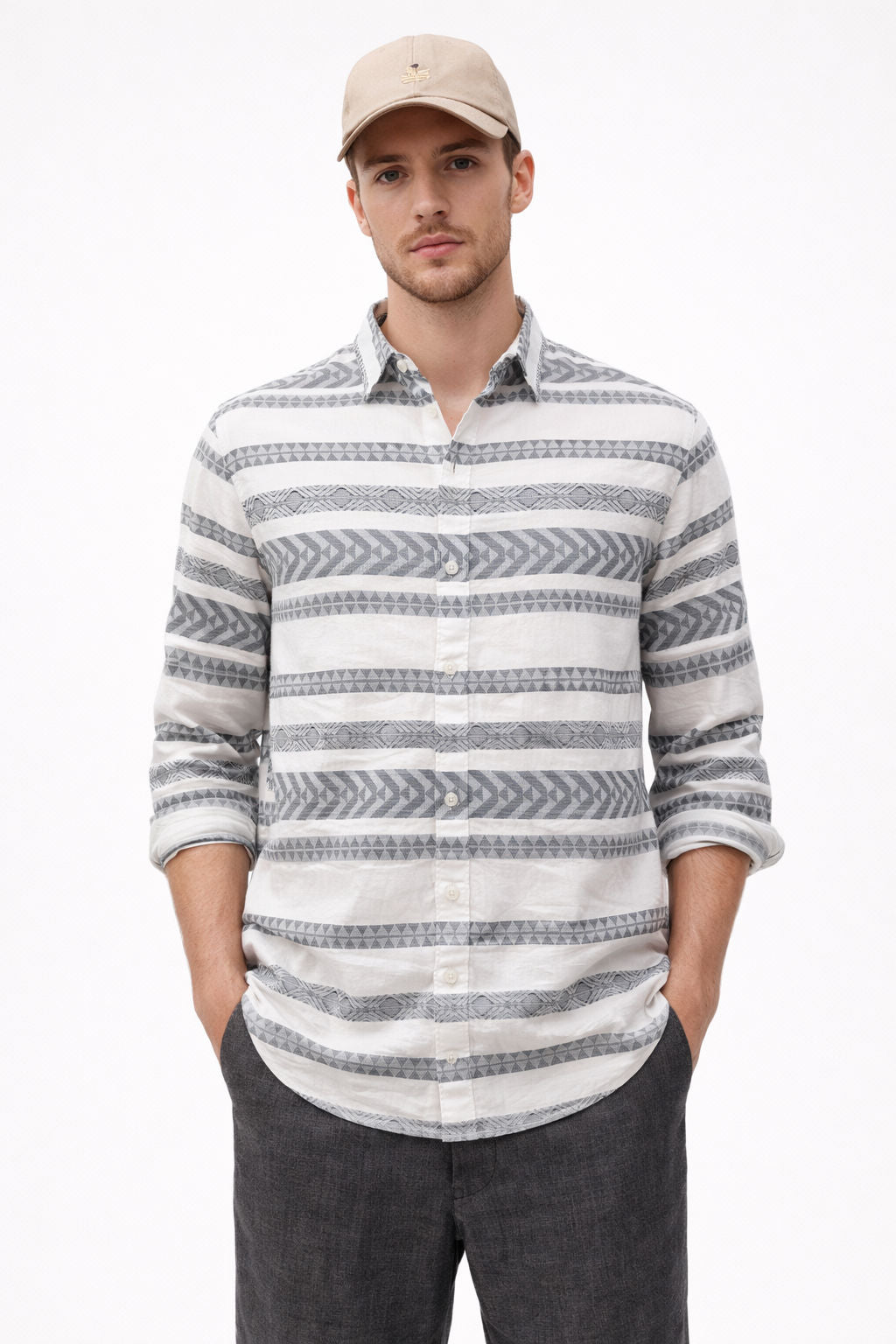 XKIND Fabric: Viscose BlendPattern: Jacquard Textured ShirtCollar: Regular CollarFit: Relaxed FitPlacket: French PlacketBottom: Straight BottomColour:...