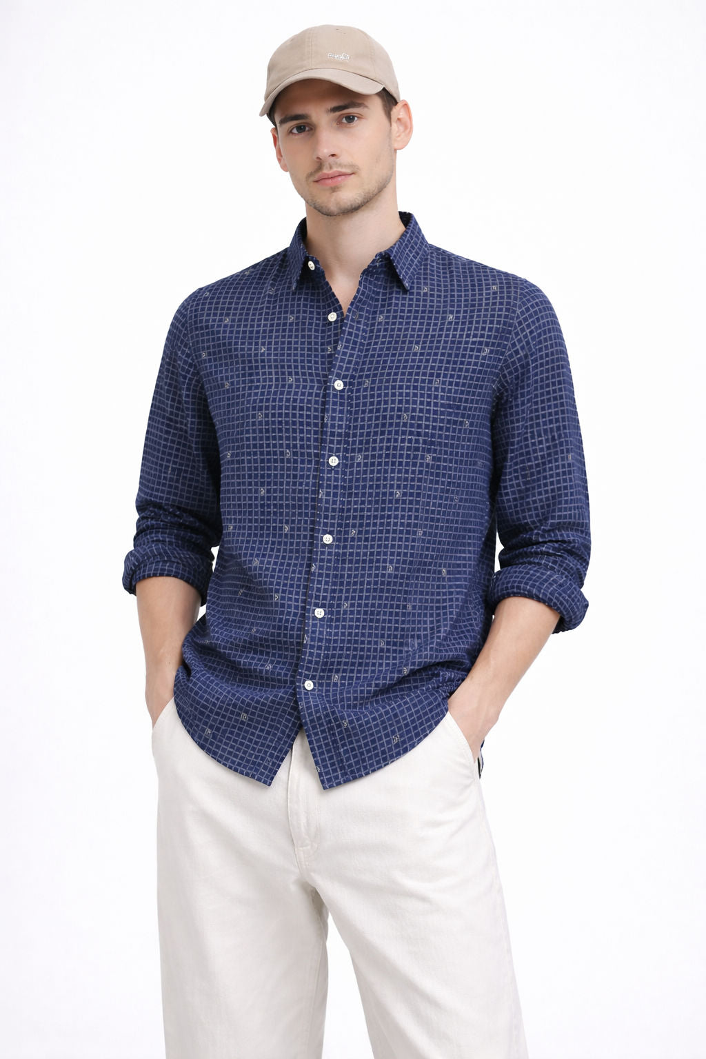 Fabric: 100%CottonPattern: JacquardCollar: Regular Fit: Regular FitPlacket: 28mm [box]Bottom Hem: Regular Round HemColour: NavyPocket: RoundCuff: Round...