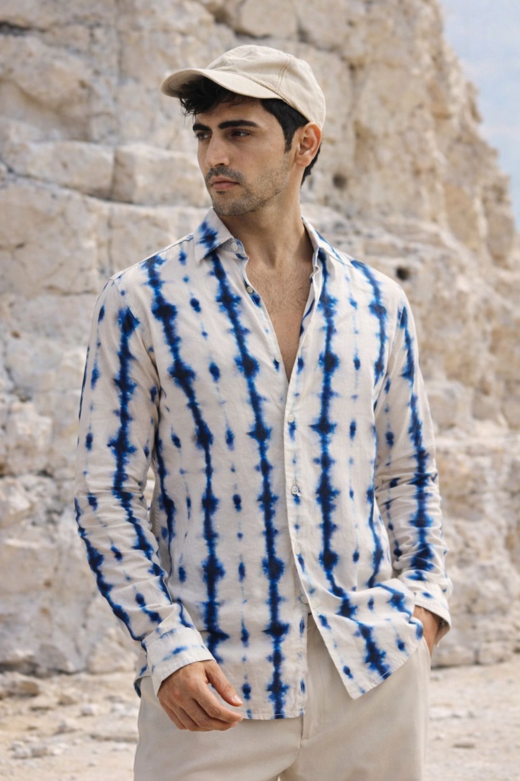 XKIND BLUE ABSTRACT PRINTED RELAXED FIT SHIRT