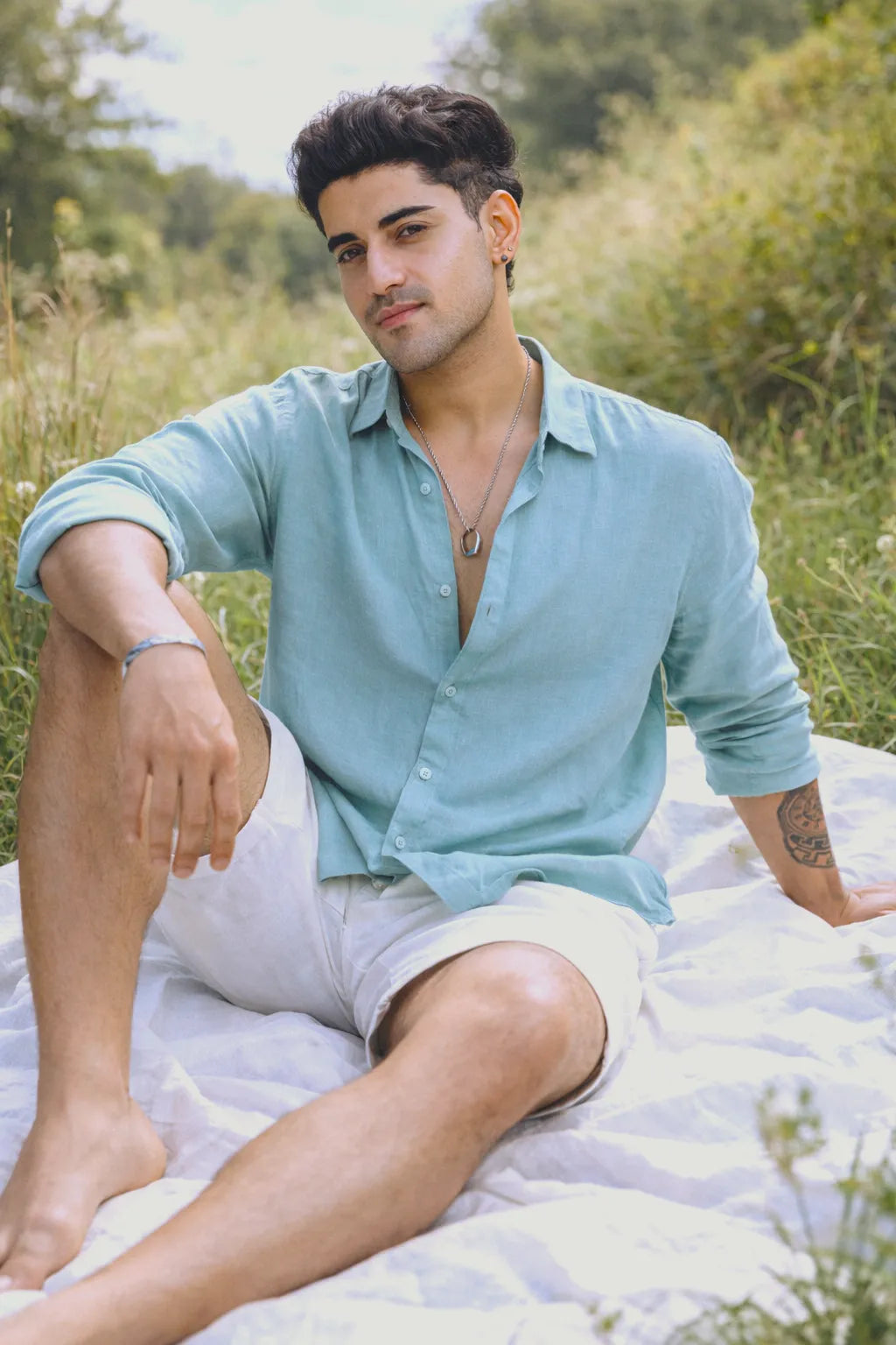 MINT GREEN LINEN BLEND MANDARIN COLLAR SHIRT