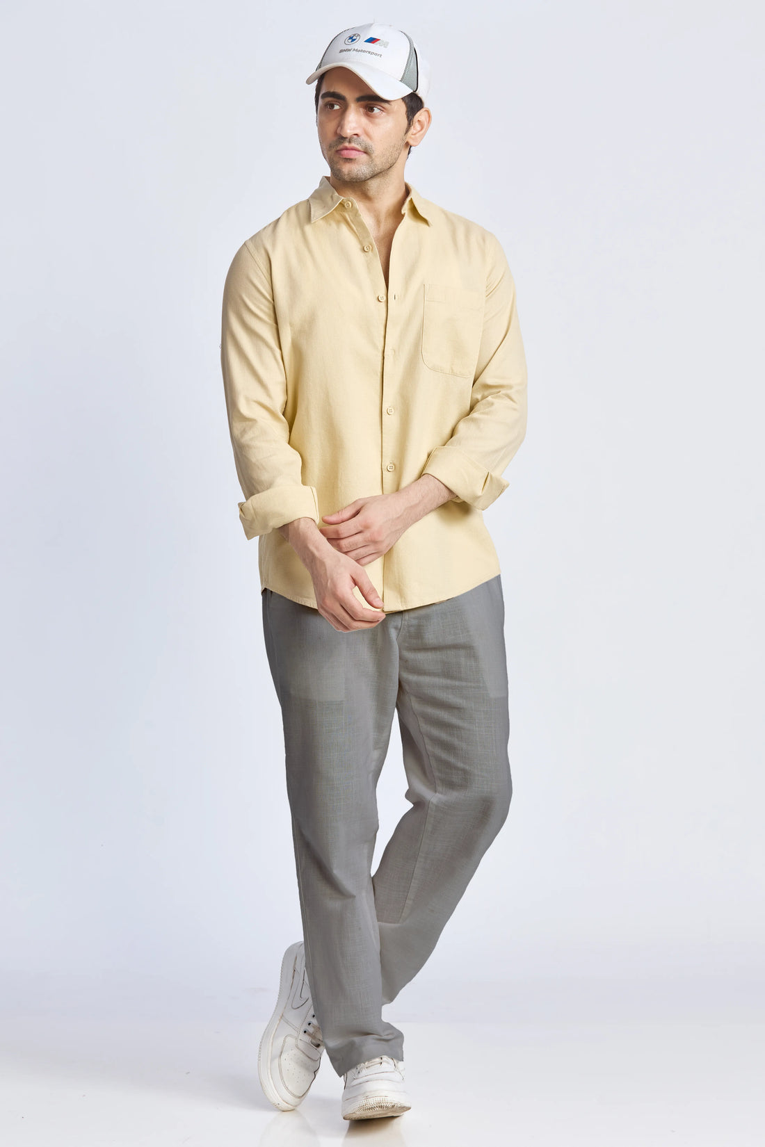 Fabric: Linen CottonPattern: SolidCollar: Regular CollarFit: Regular FitPlacket: French PlacketBottom: Curved Regular BottomColour: Beige