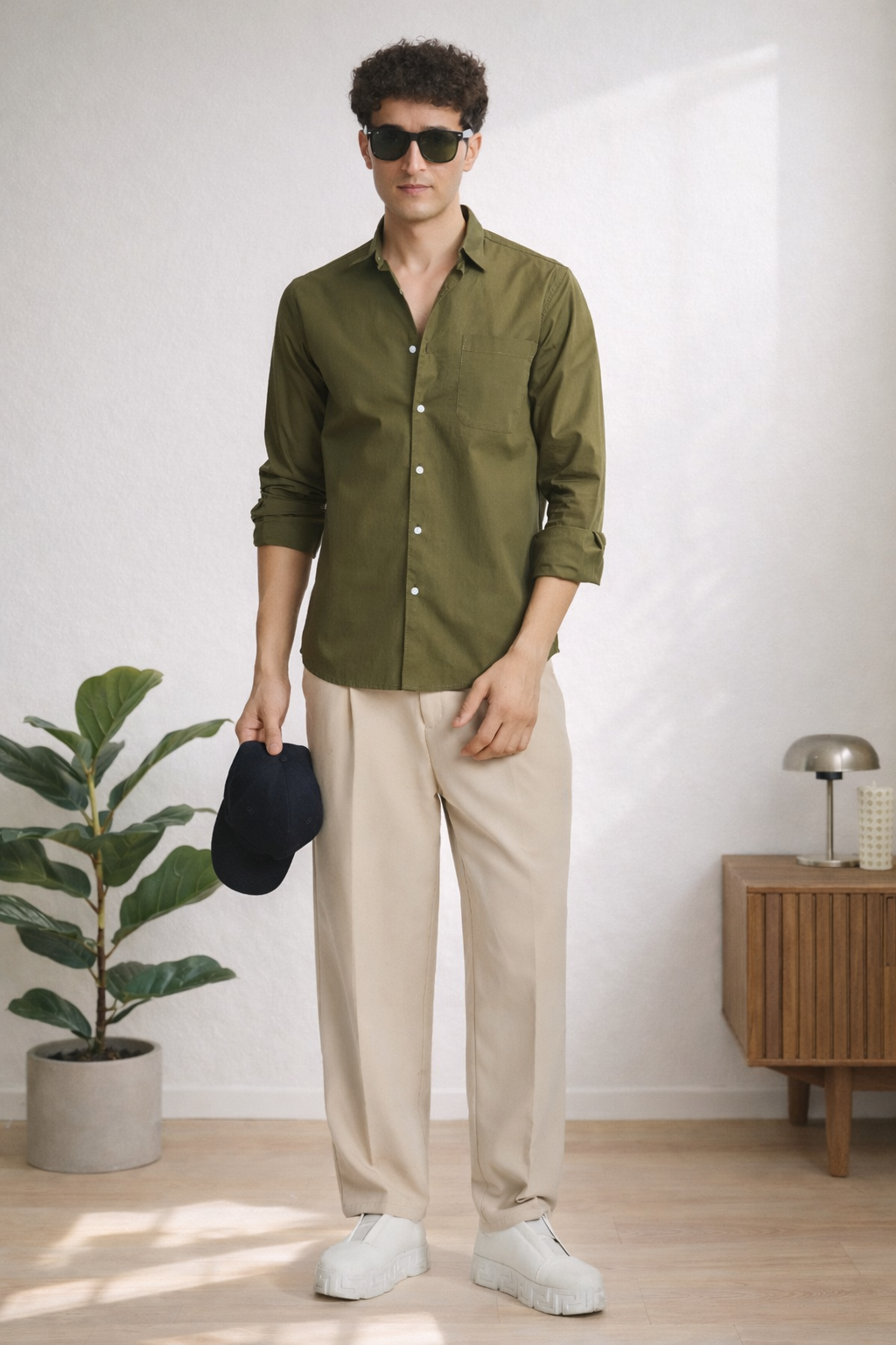 Fabric: Linen CottonPattern: SolidCollar: Regular CollarFit: Regular FitPlacket: French PlacketBottom: Curved Regular BottomColour: Olive