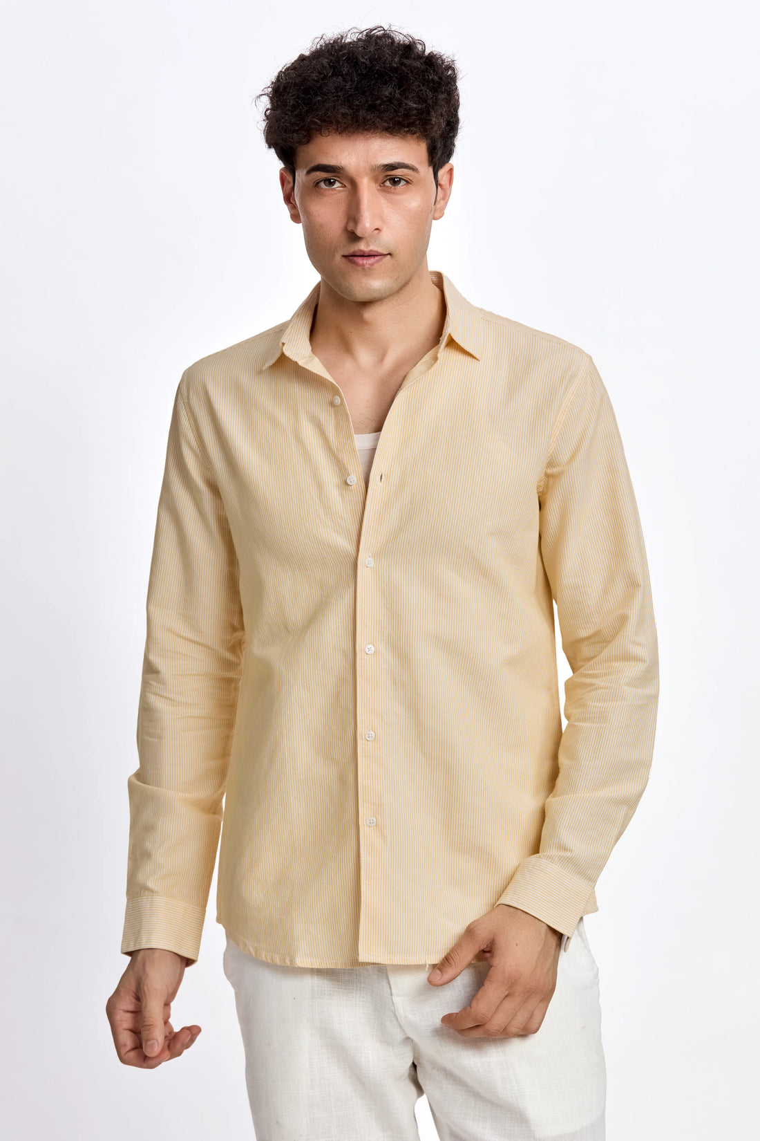 Fabric: 100% CottonPattern: Stripe ShirtCollar: Regular CollarFit: Slim FitPlacket: FrenchBottom Hem: Regular Round HemColour: YellowOccasion:...