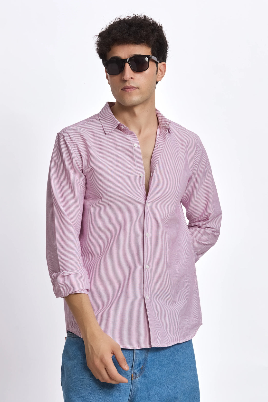 MAROON PINSTRIPE COTTON TEXTURED SHIRT