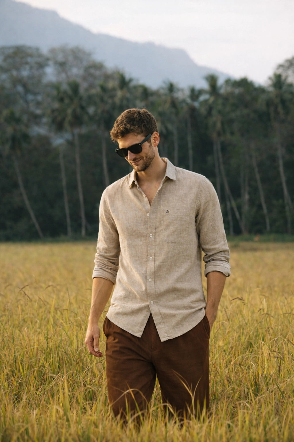Fabric -Linen Lyocell BlendColour -brownCollar - RegularPlacket - FrenchFit- Regular FitHem - CurvedBack - Pleated...