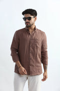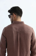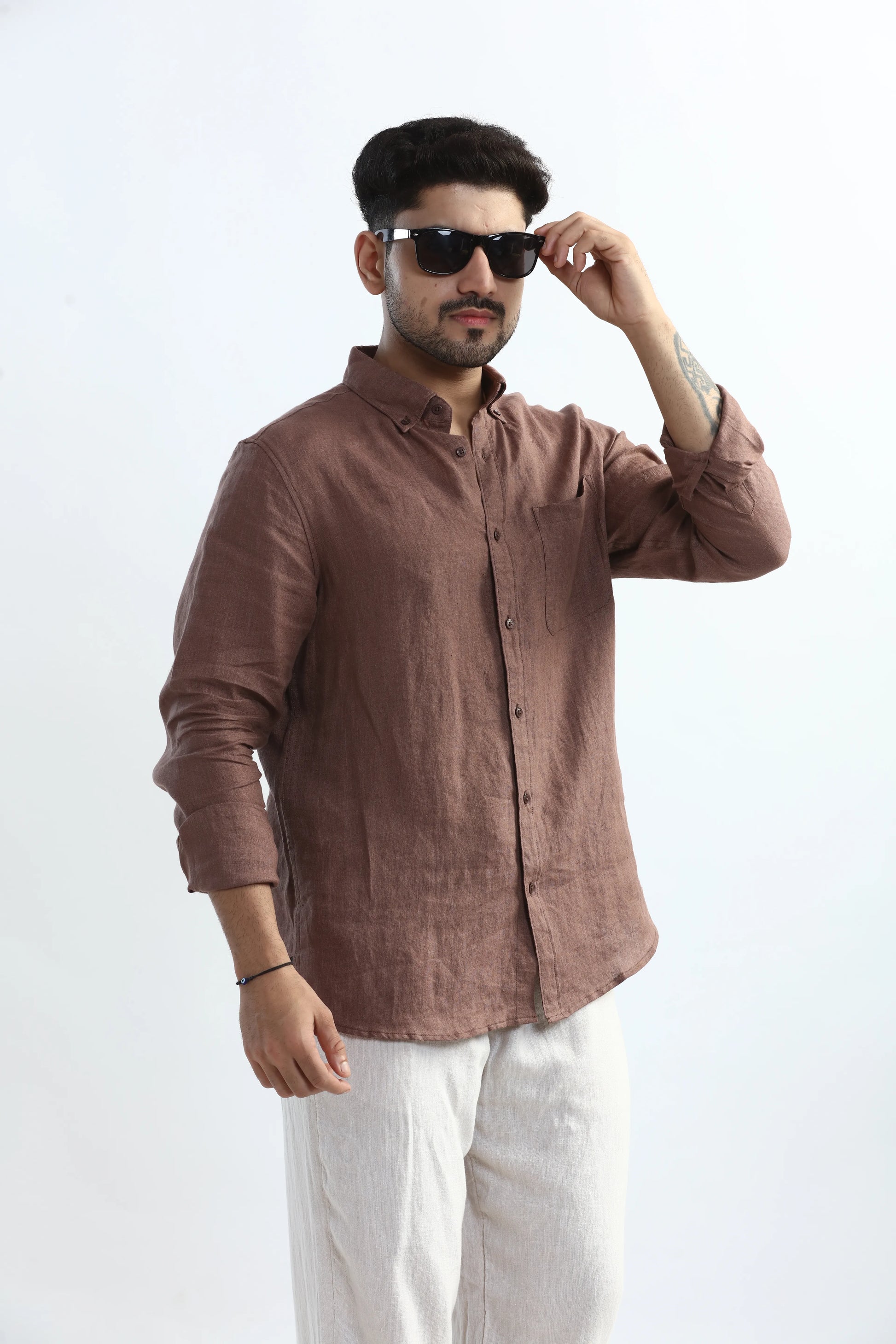 100% PURE LINEN MOCHA MOUSE BUTTON DOWN CASUAL SHIRT