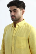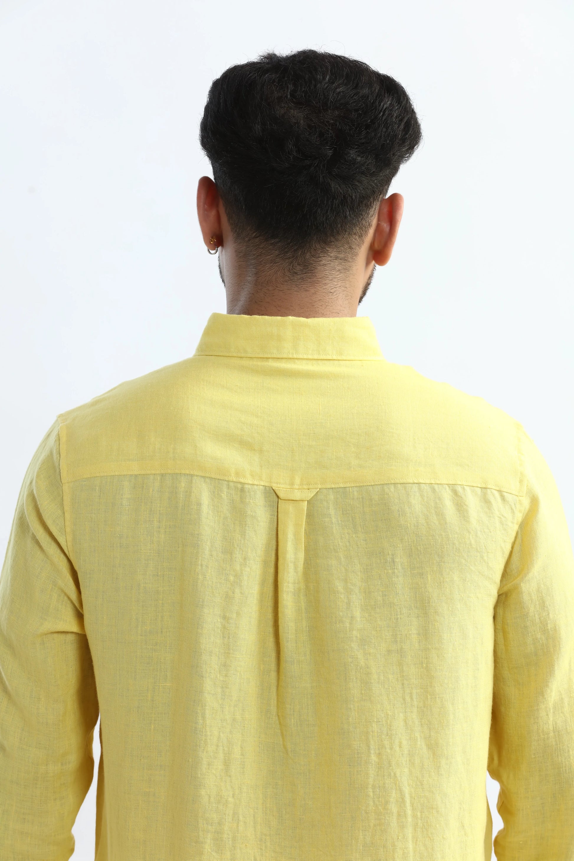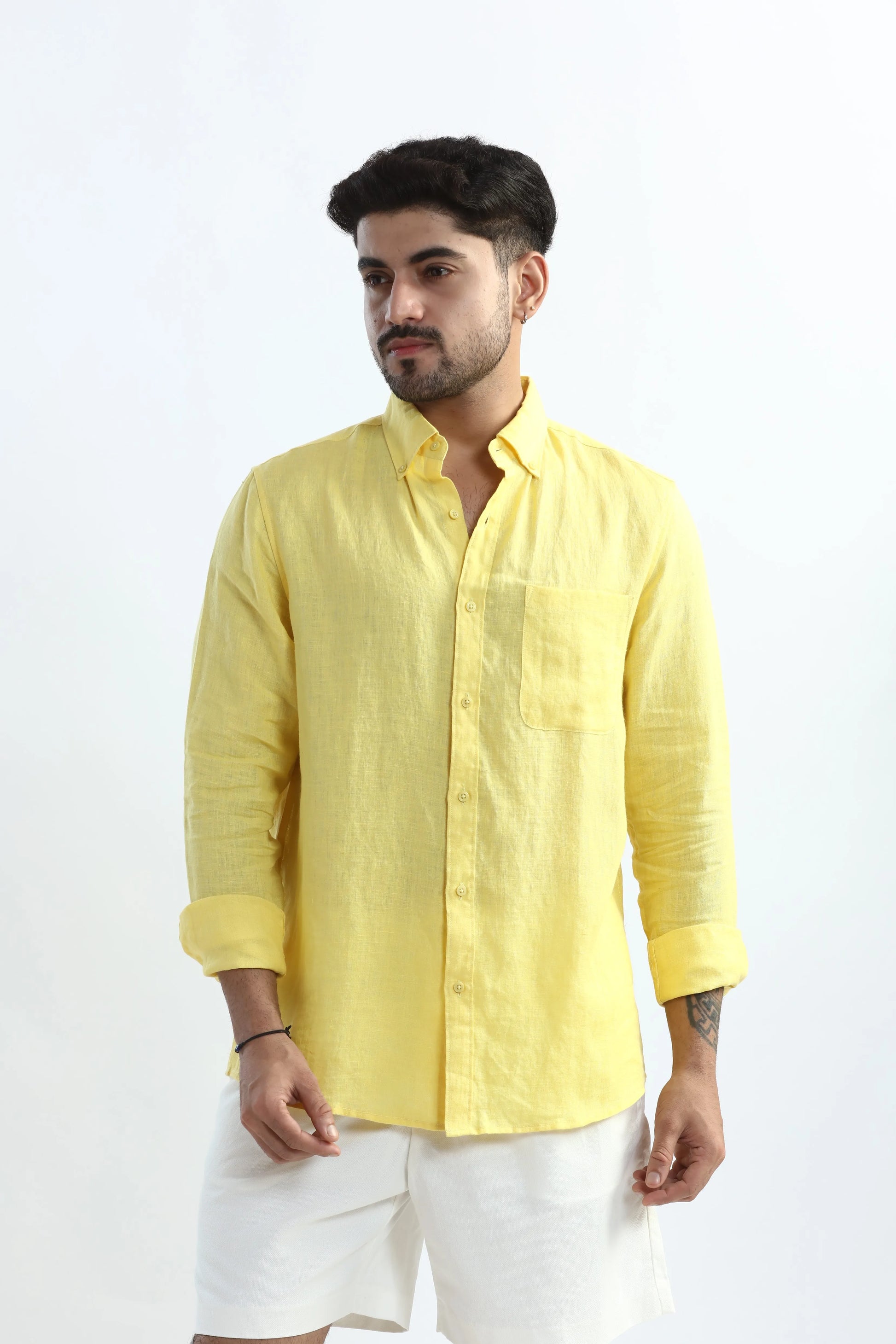 100% PURE LINEN BUTTERCUP YELLOW BUTTON DOWN CASUAL SHIRT