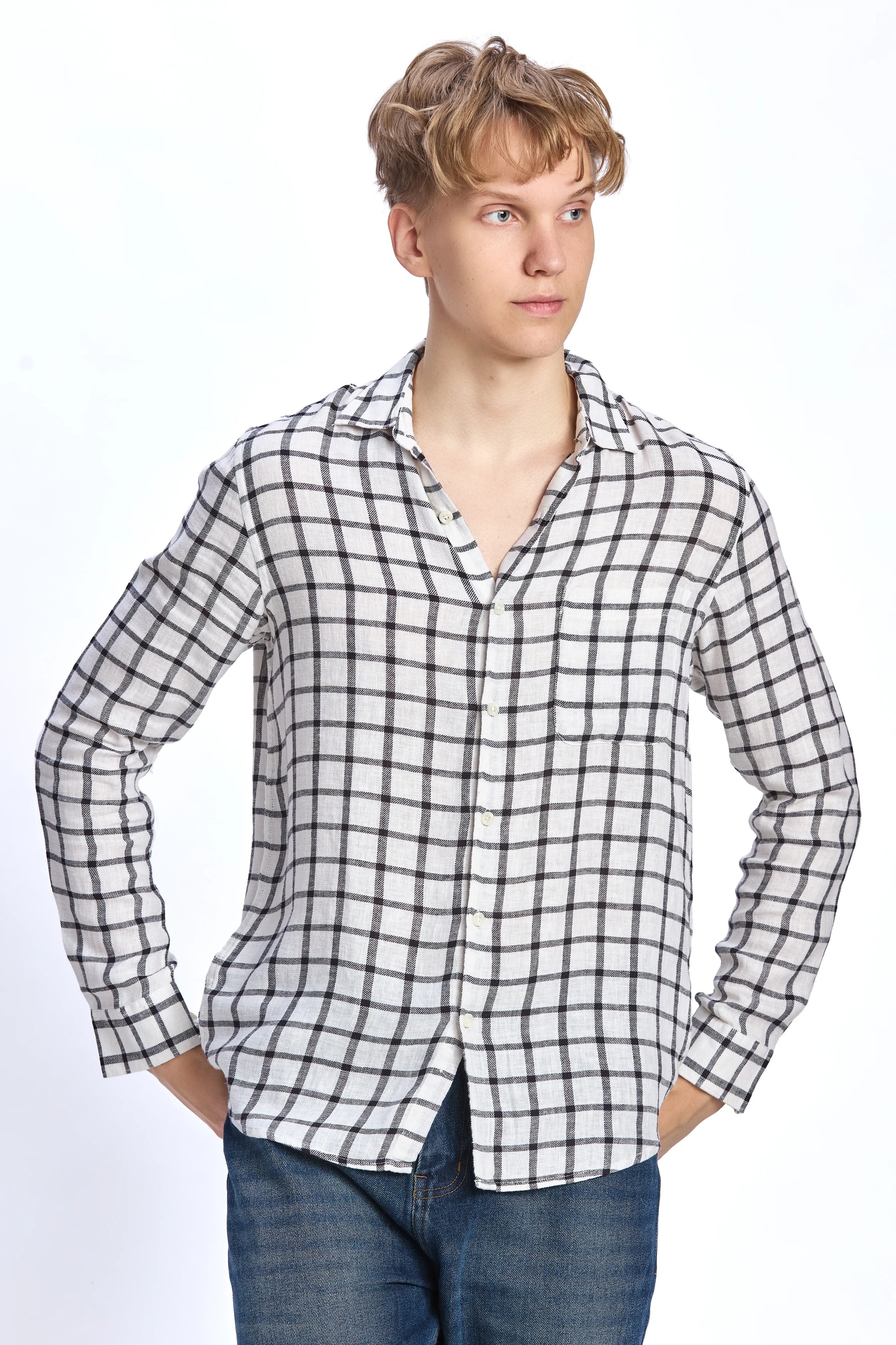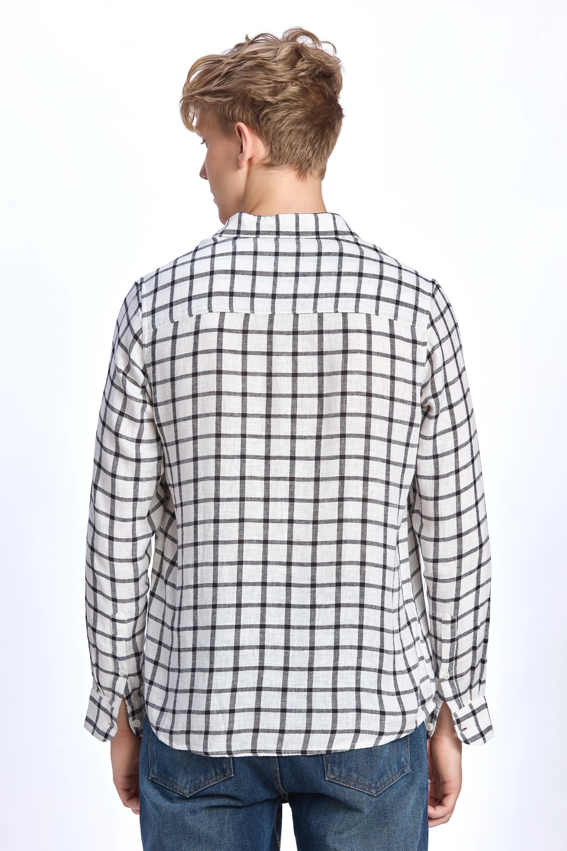 LINEN COTTON WHITE CHECK REGULAR FIT SHIRT