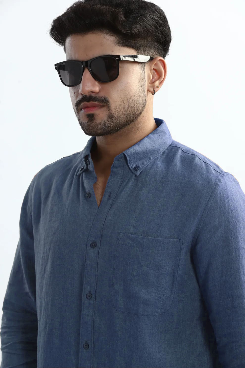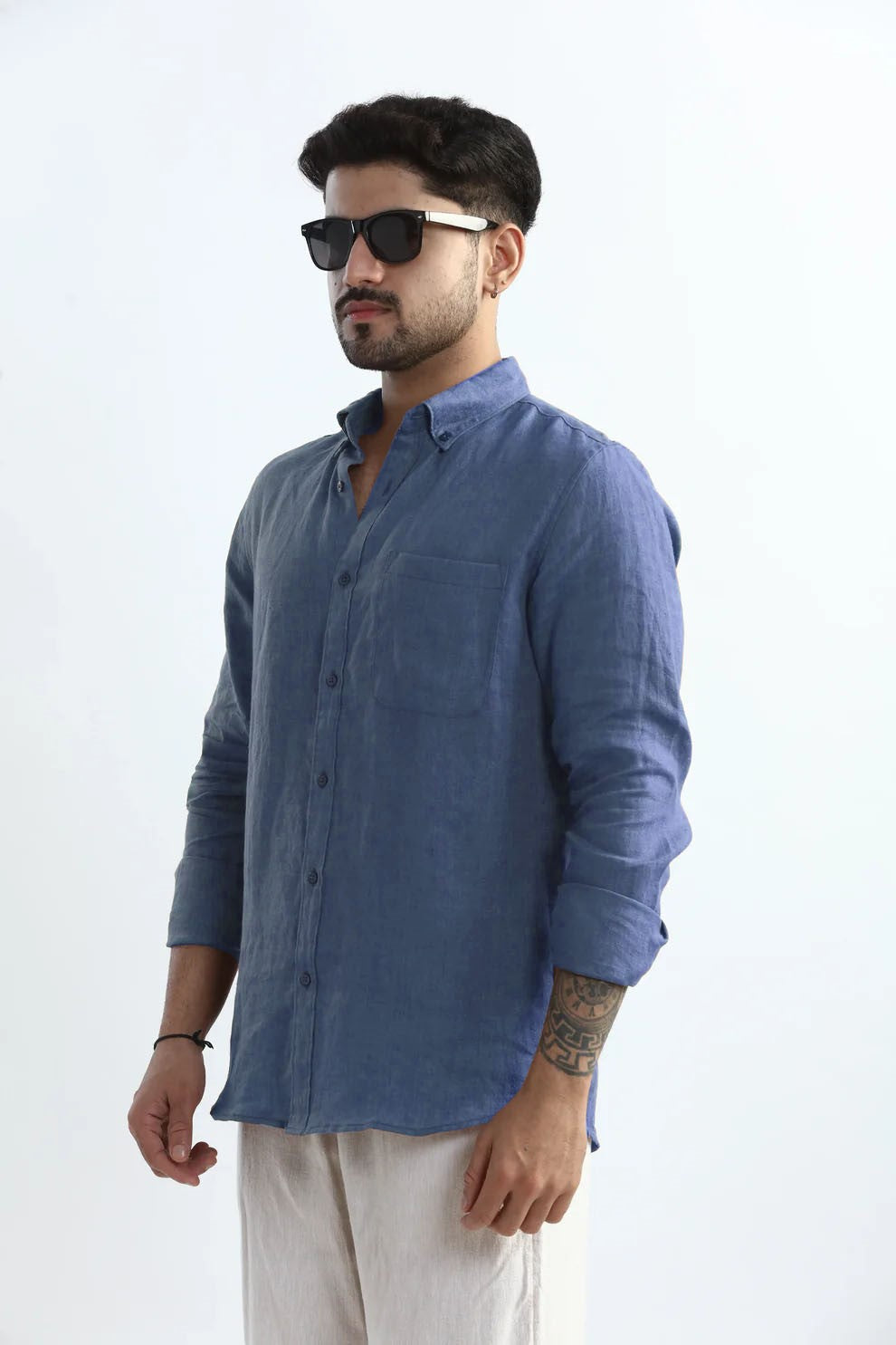 100% PURE LINEN POWDER BLUE BUTTON DOWN CASUAL SHIRT