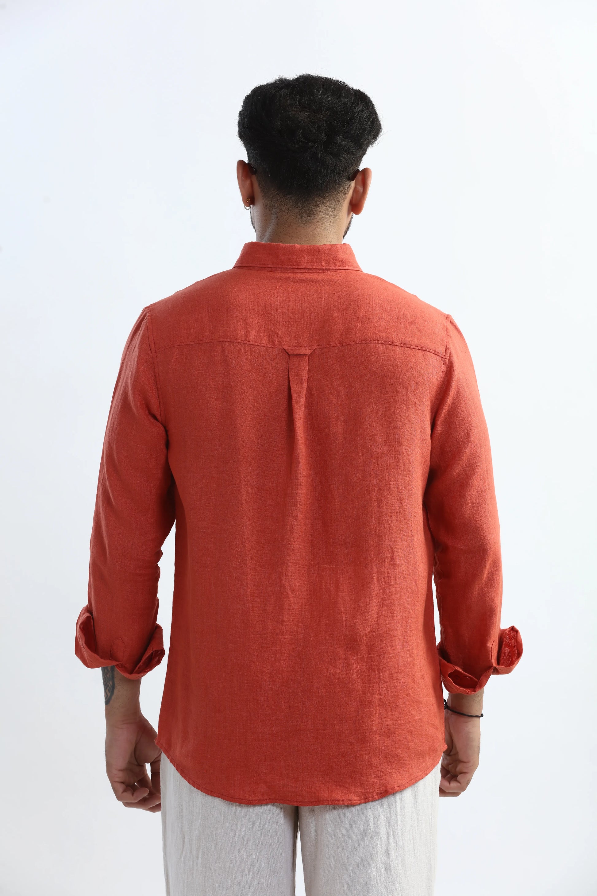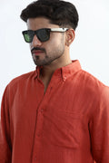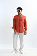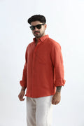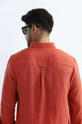 100% PURE LINEN RUSTIC RED BUTTON DOWN CASUAL SHIRT
