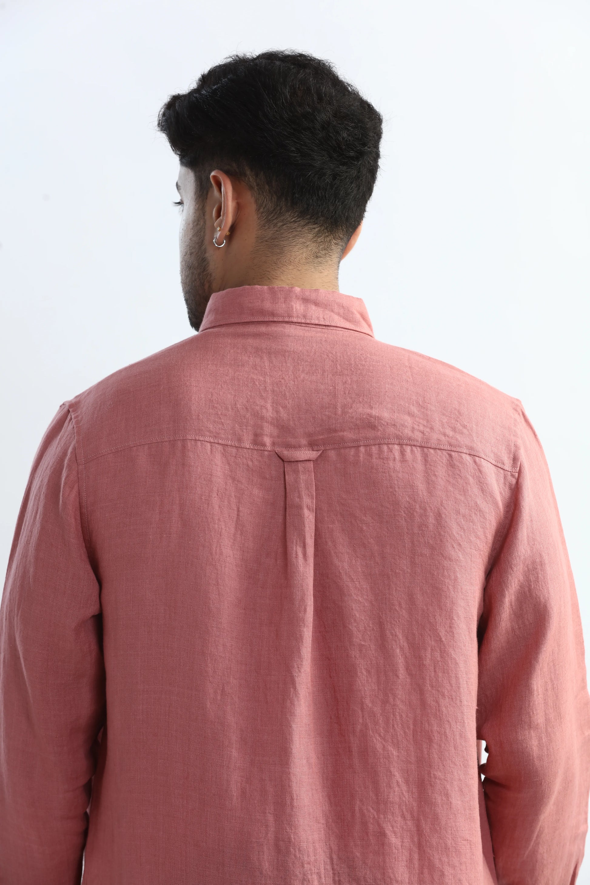 100% PURE LINEN SOFT PEACH BUTTON DOWN CASUAL SHIRT