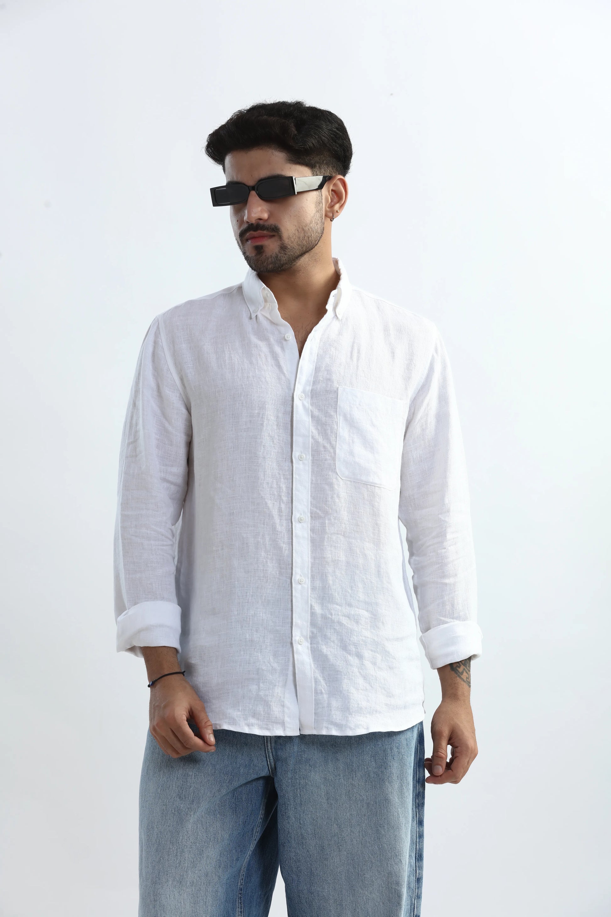 100% PURE LINEN WHITE BUTTON DOWN CASUAL SHIRT