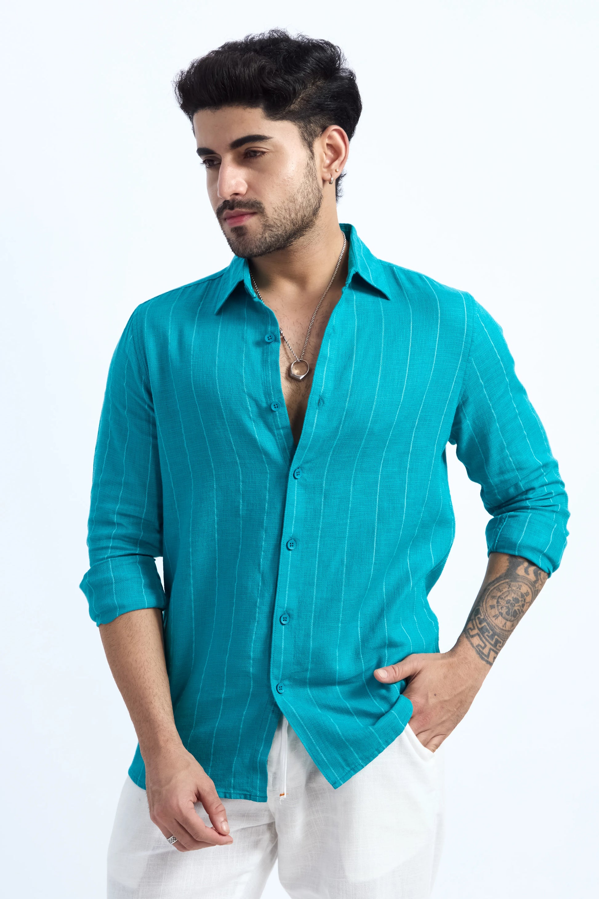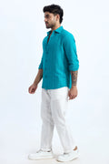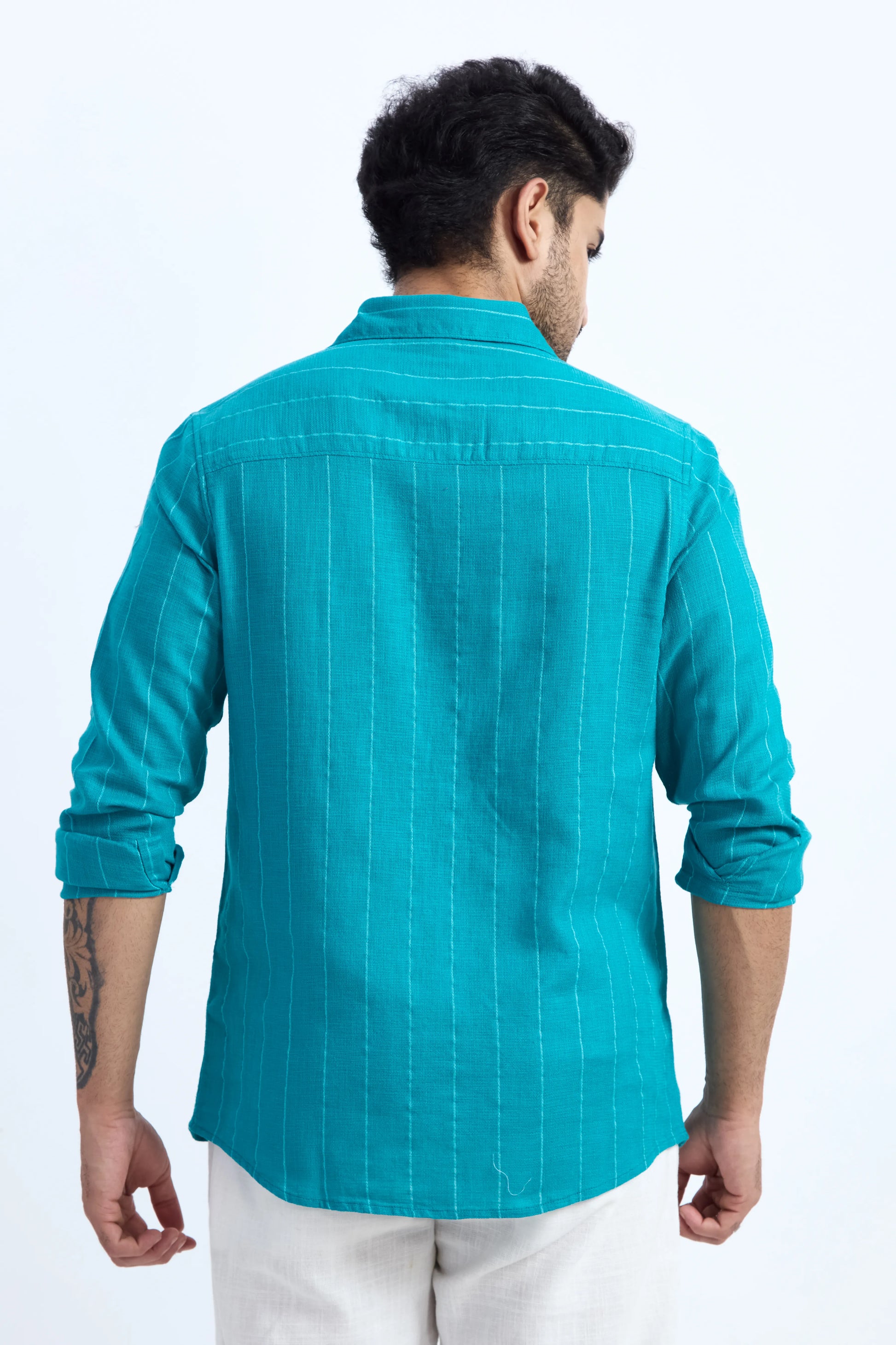 AQUA BLUE PINSTRIPE COTTON TEXTURED SHIRT