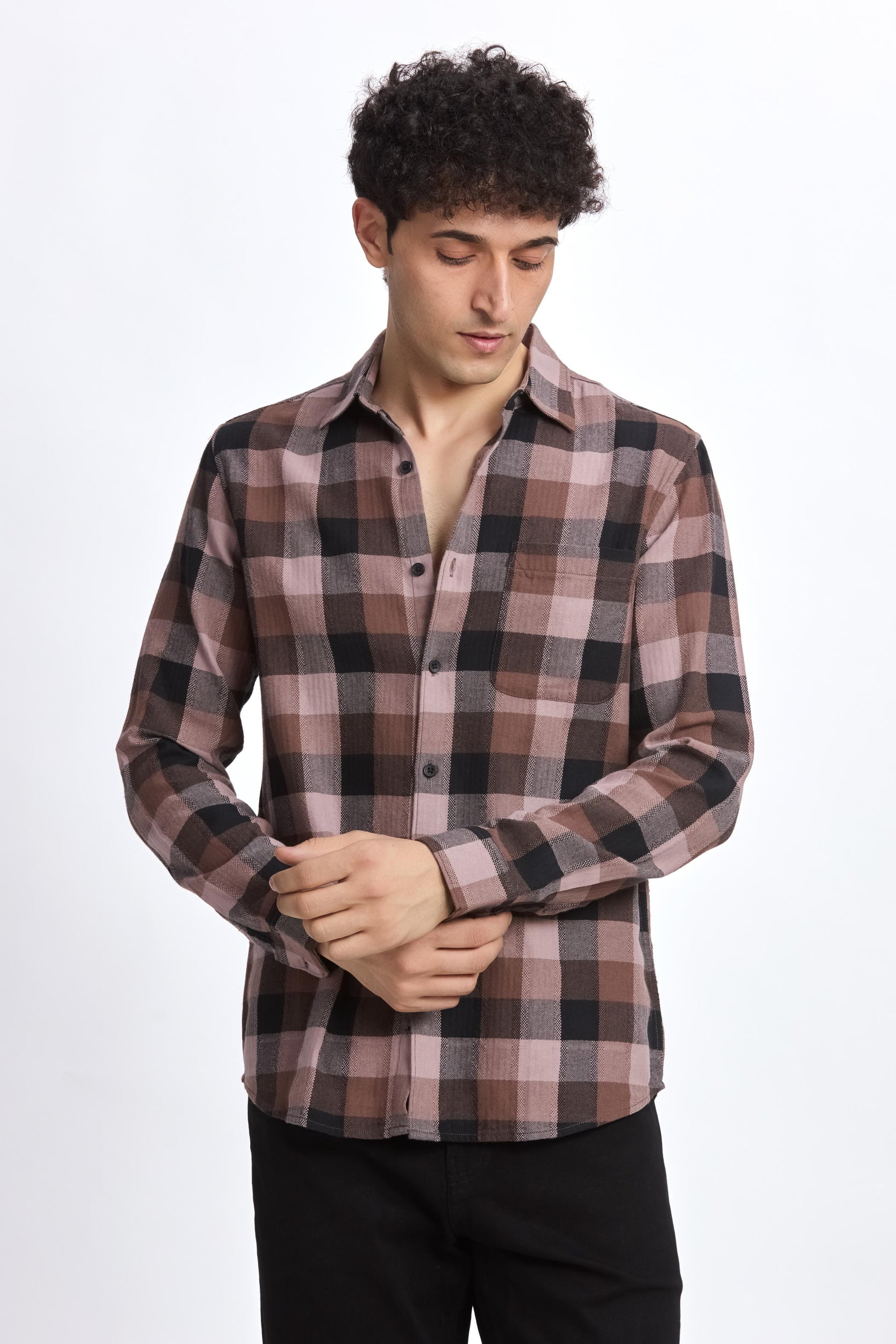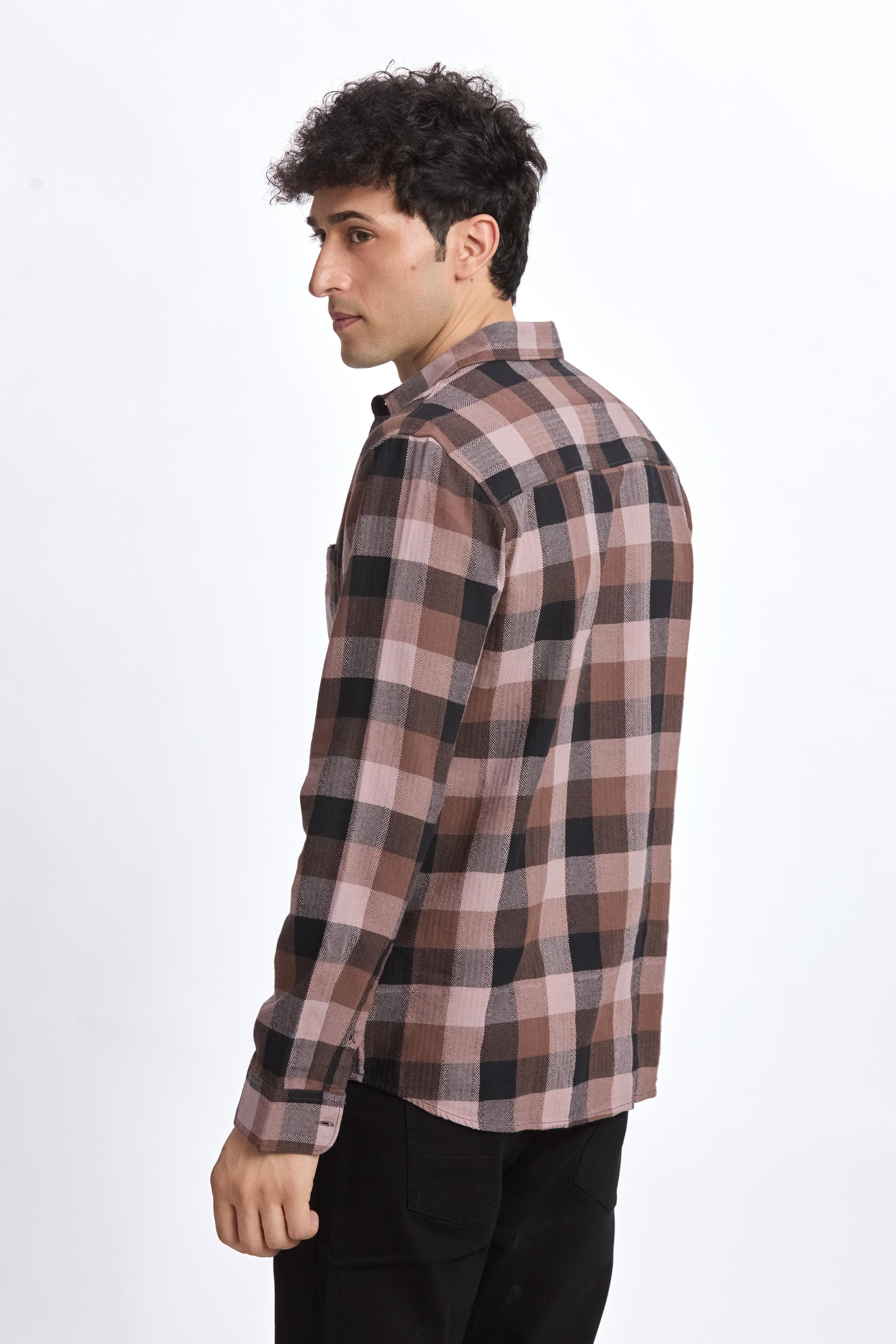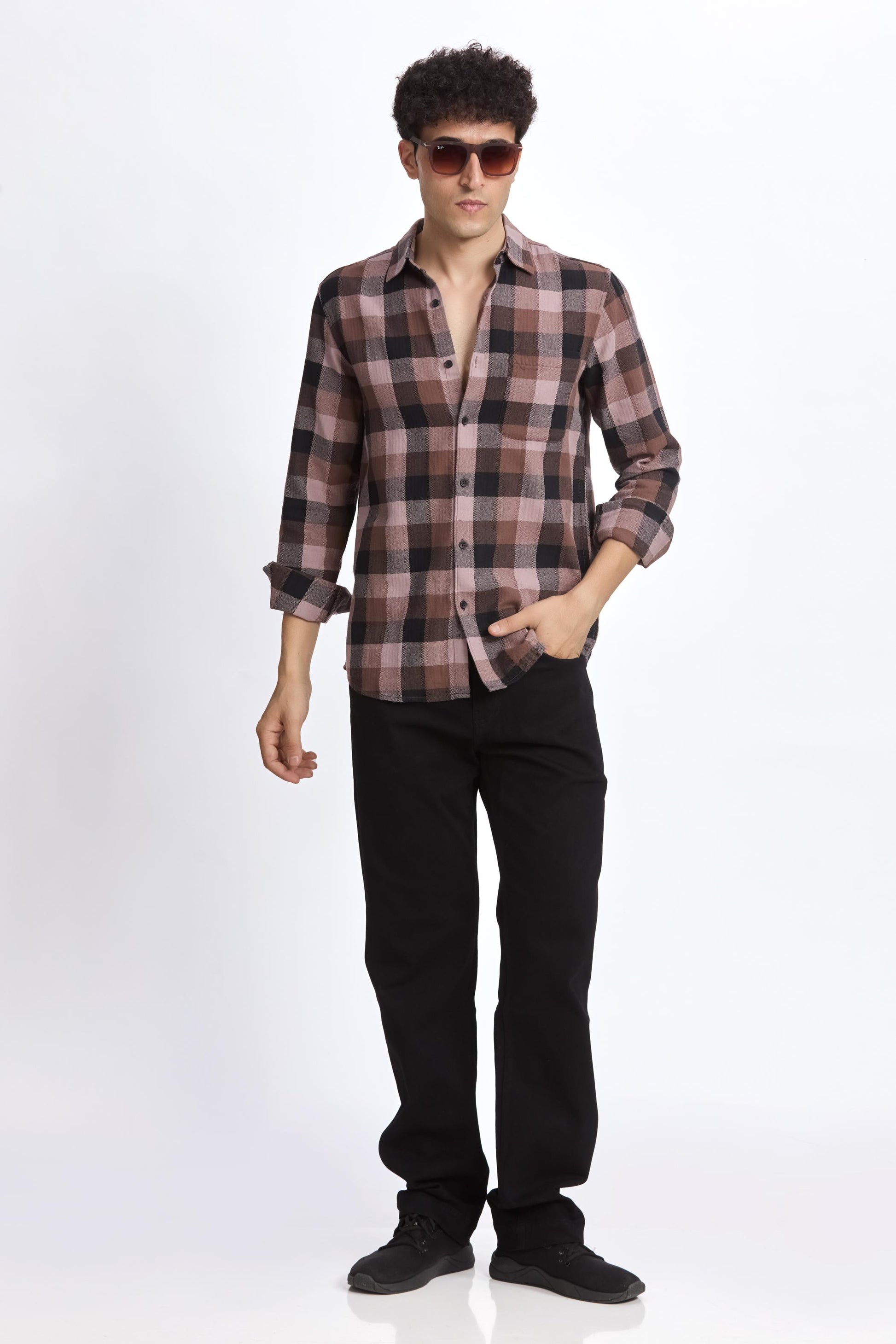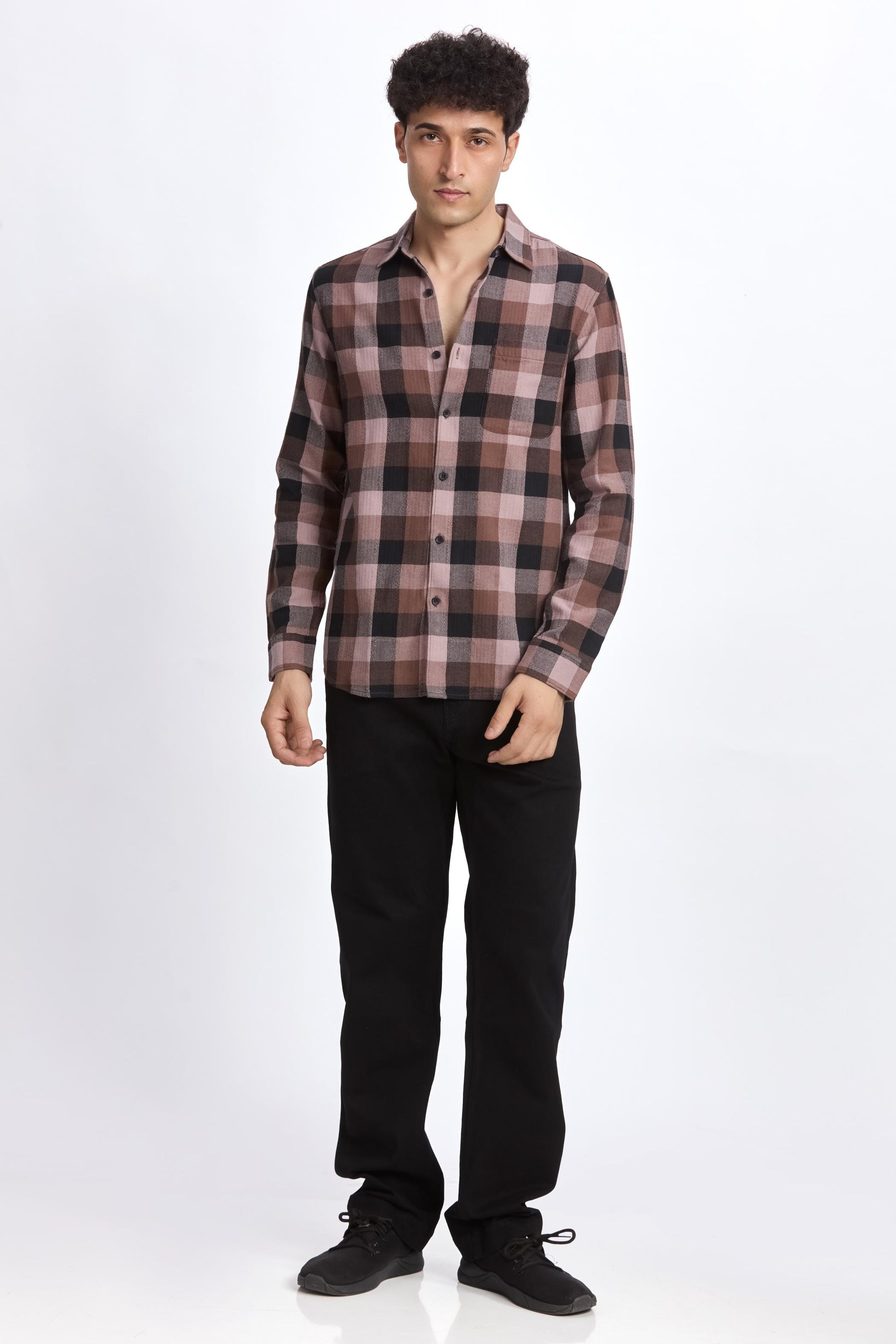 BROWN CHECK REGULAR FIT SHIRT
