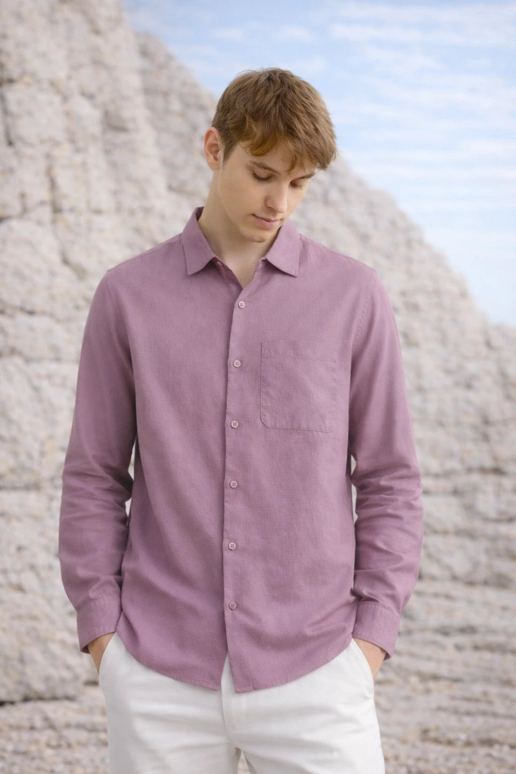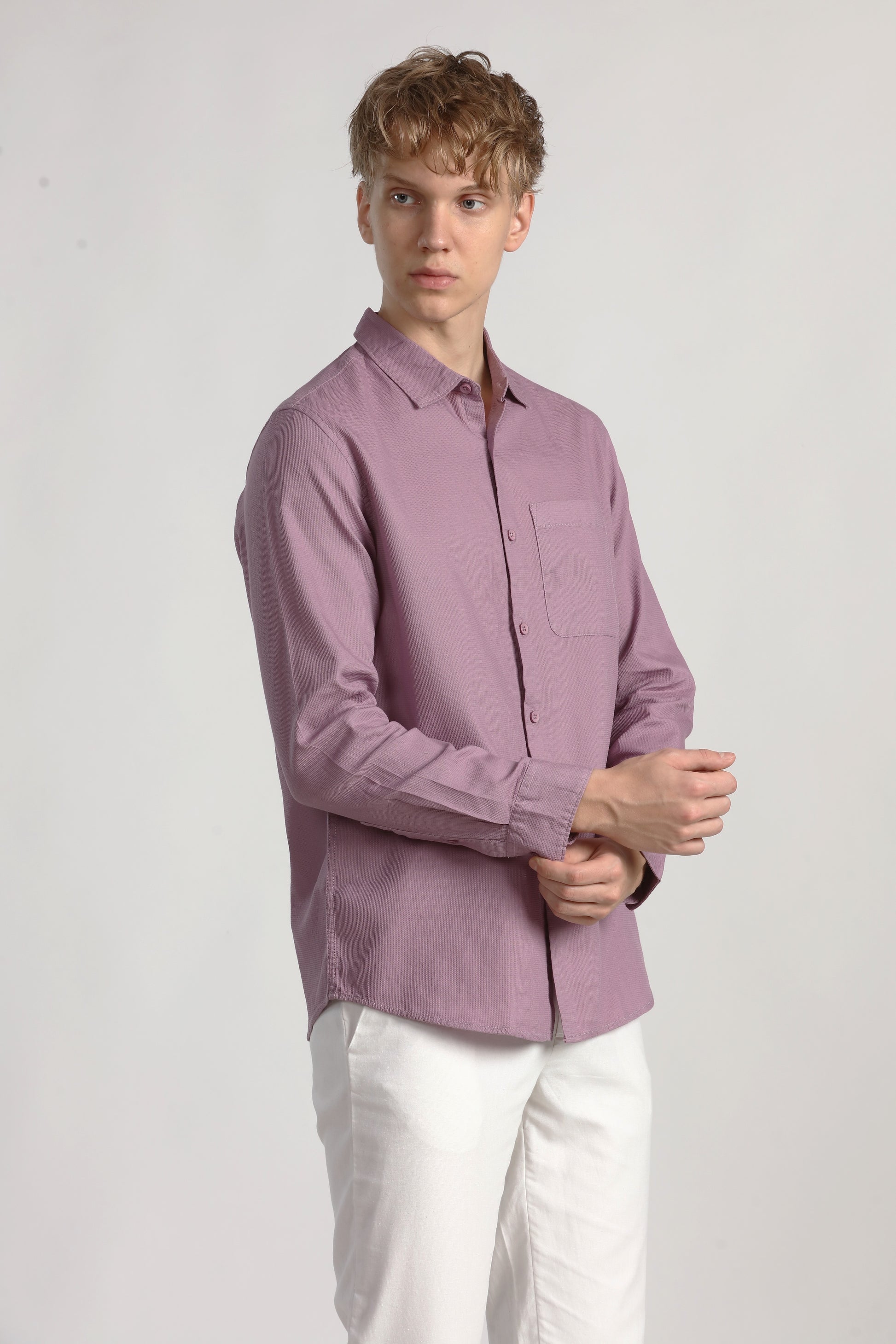 LAVENDER TEXTURED REGULAR FIT SHIRT