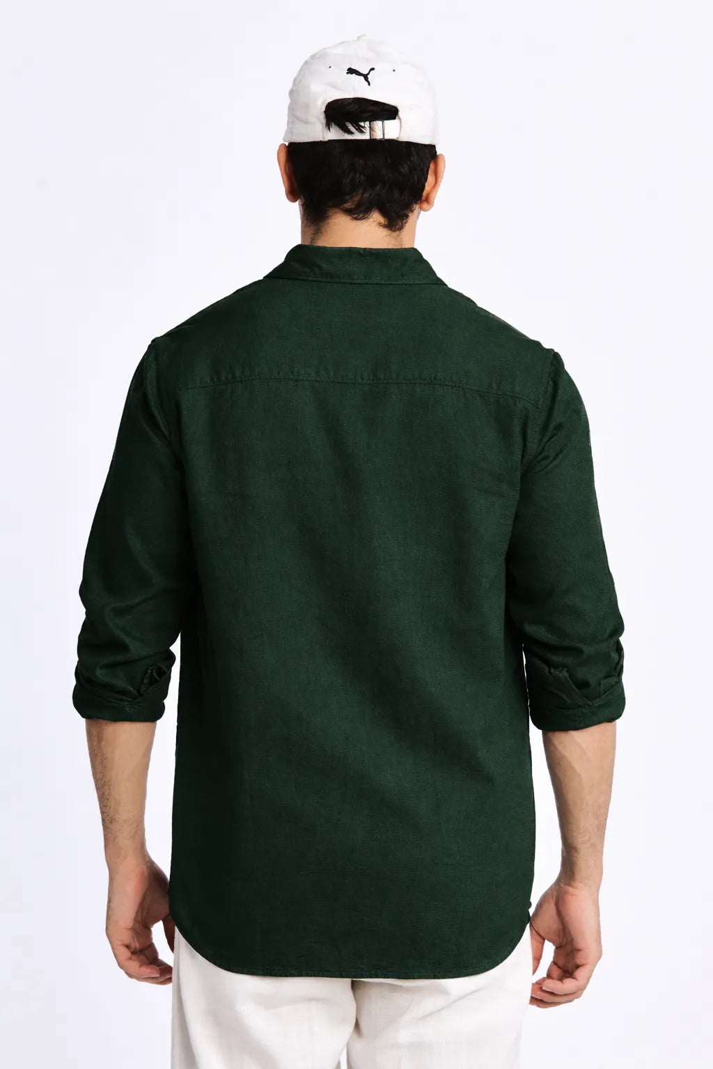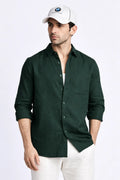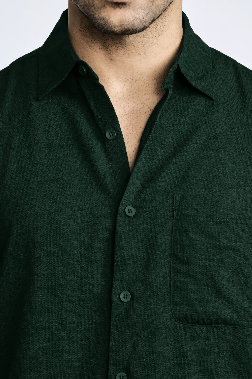 BOTTLE GREEN CROPPED FIT TEXTURED SHIRT