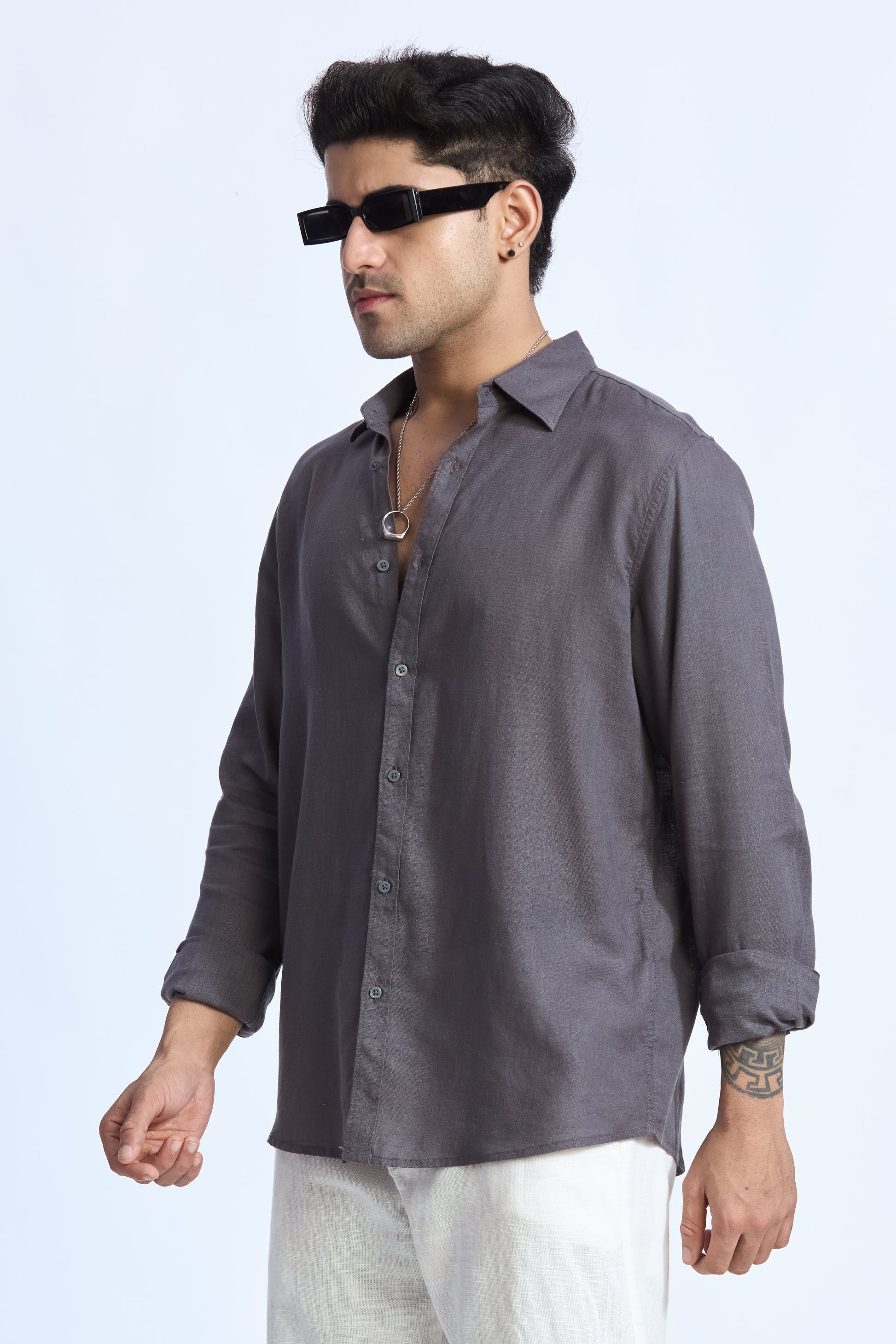 CHARCOAL GREY LINEN BLEND SHIRT