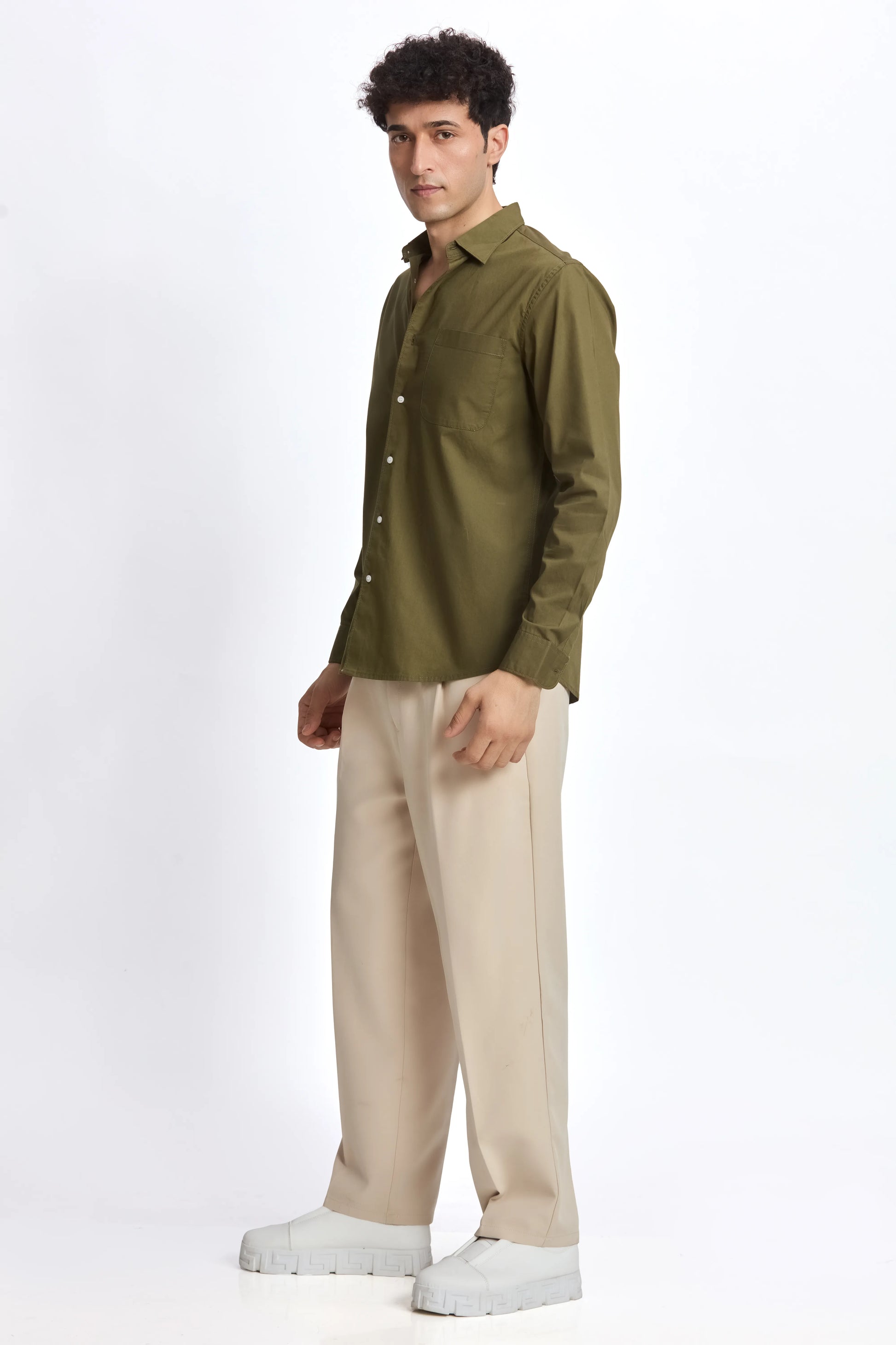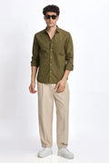 OLIVE POPLIN REGULAR FIT SHIRT