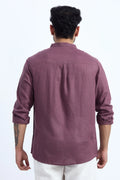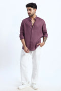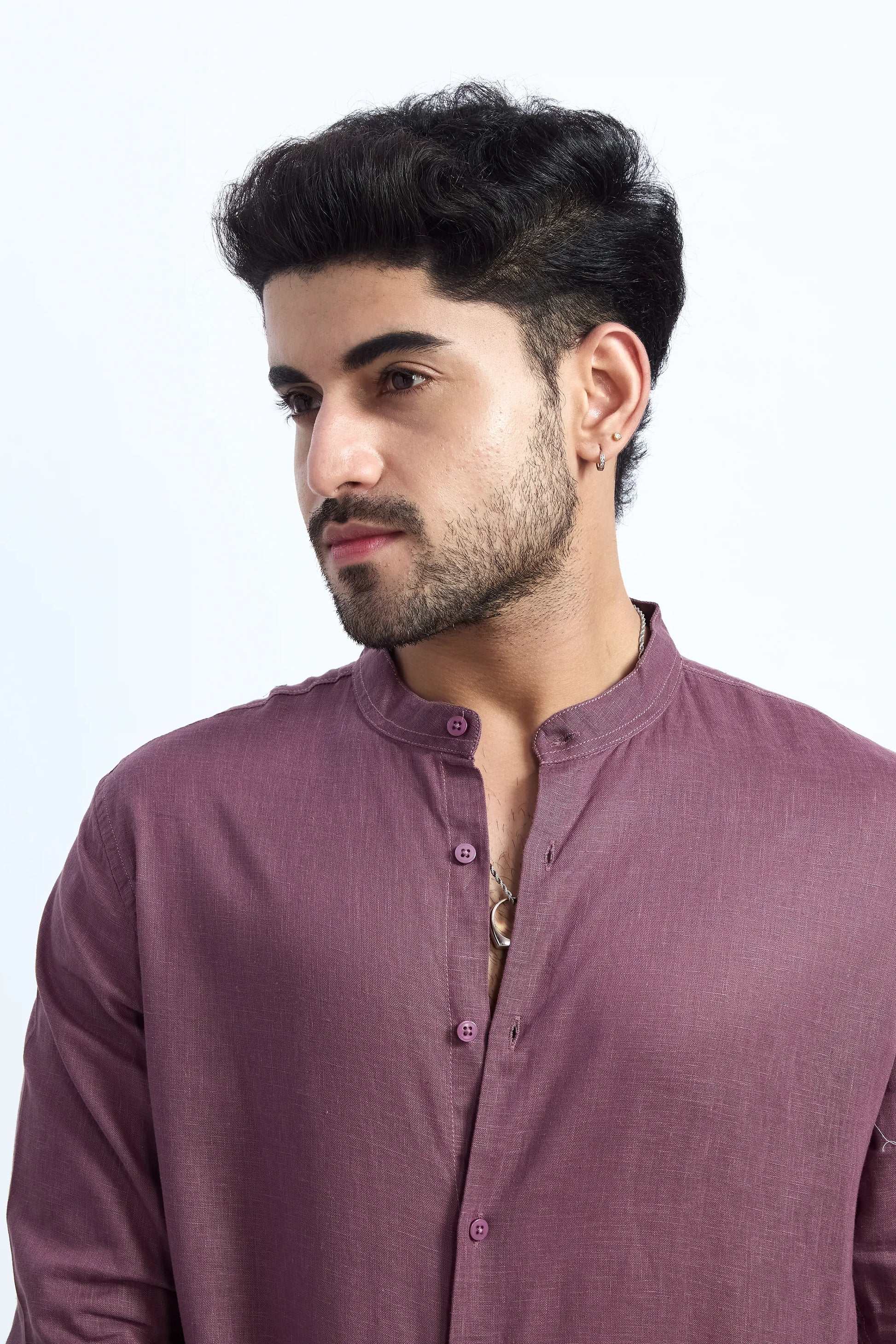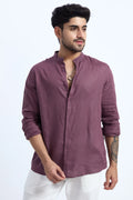DARK MAUVE LINEN BLEND MANDARIN SHIRT