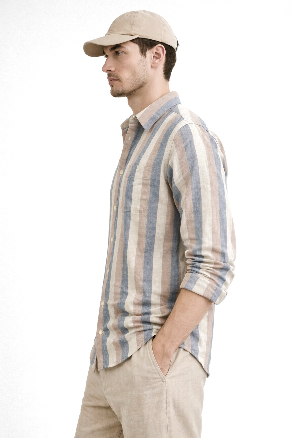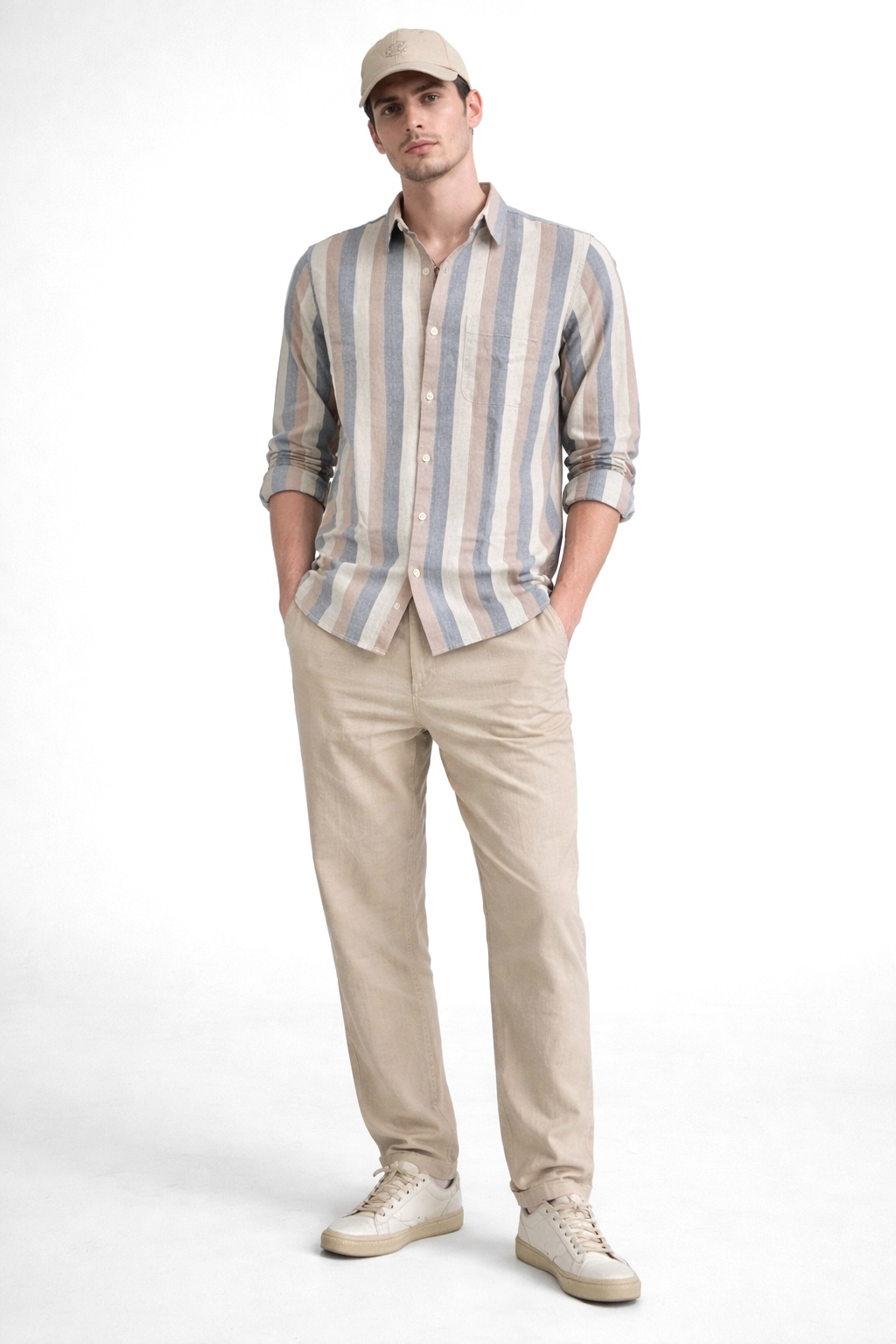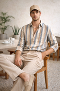 KHAKI STRIPE REGULAR FIT CASUAL SHIRT