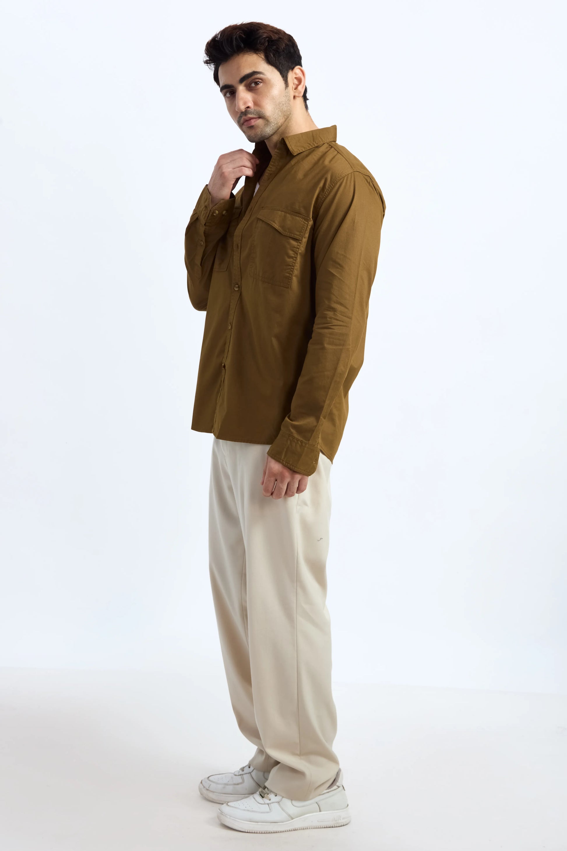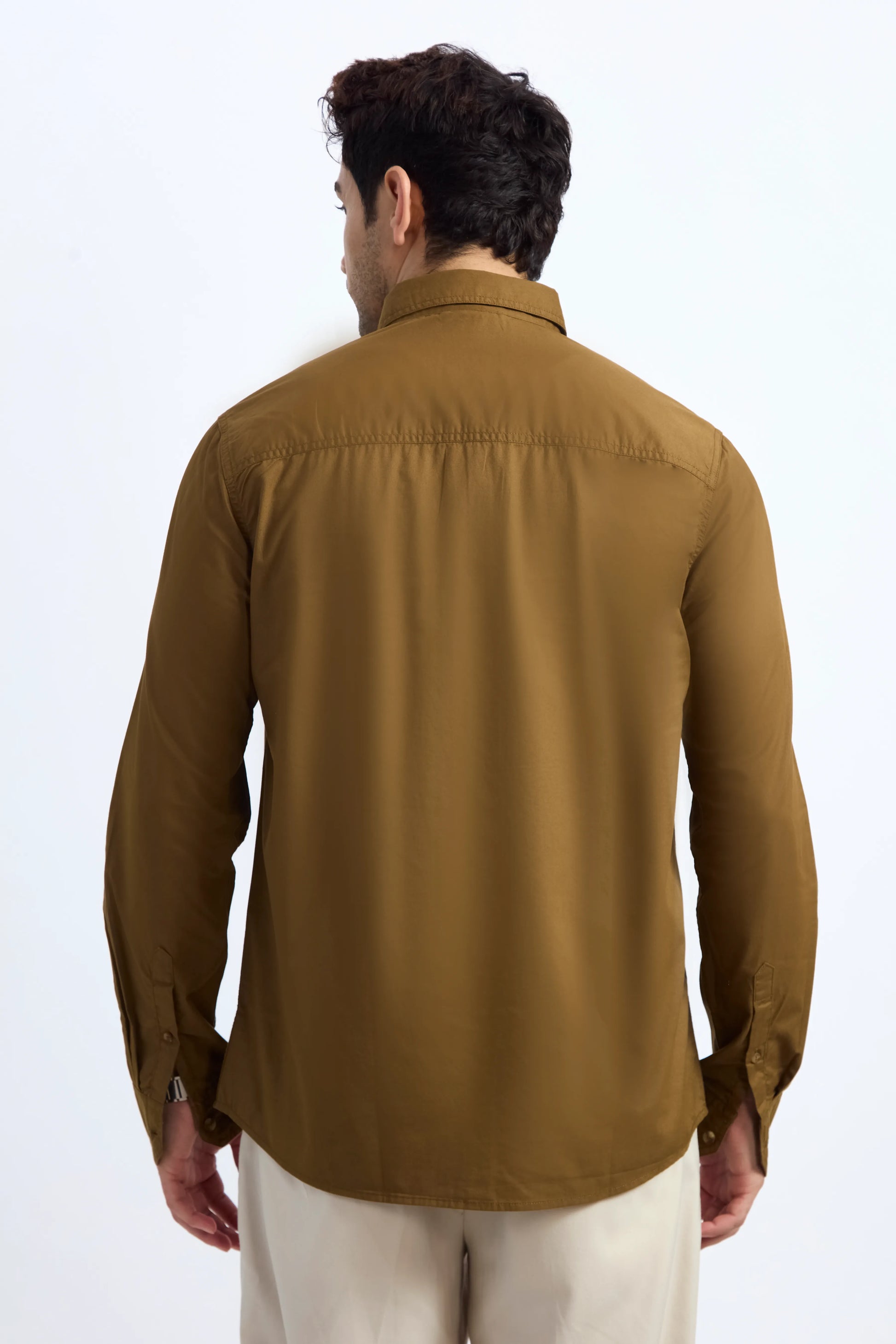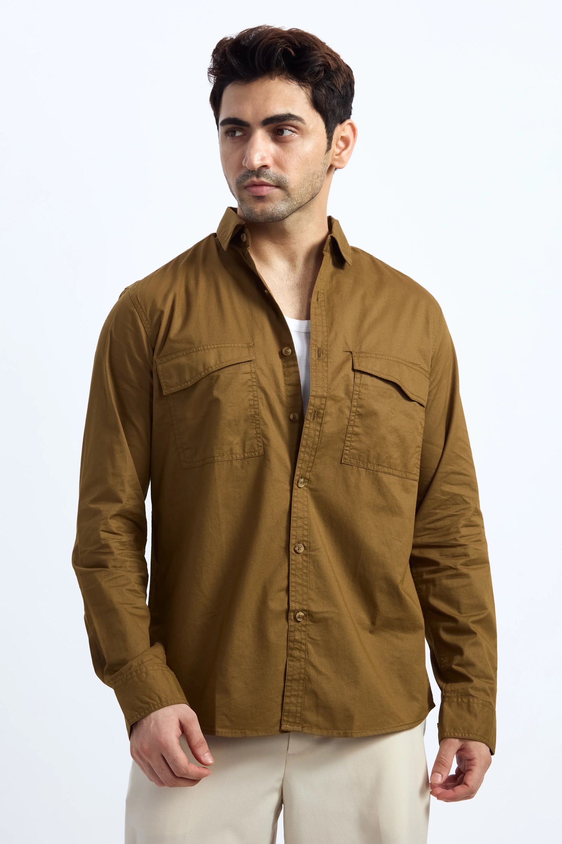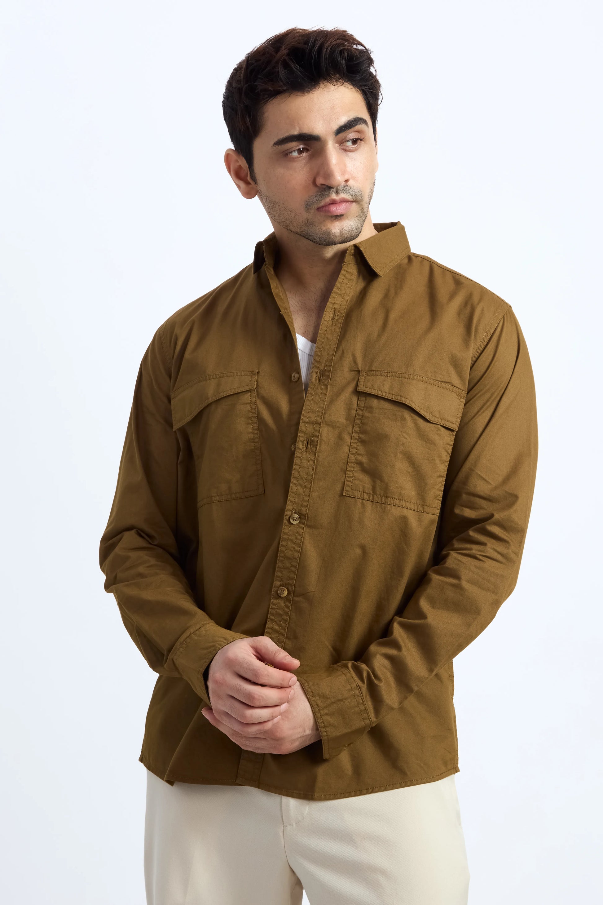 JONESBURG BROWN DOUBLE POCKET REGULAR FIT SHIRT