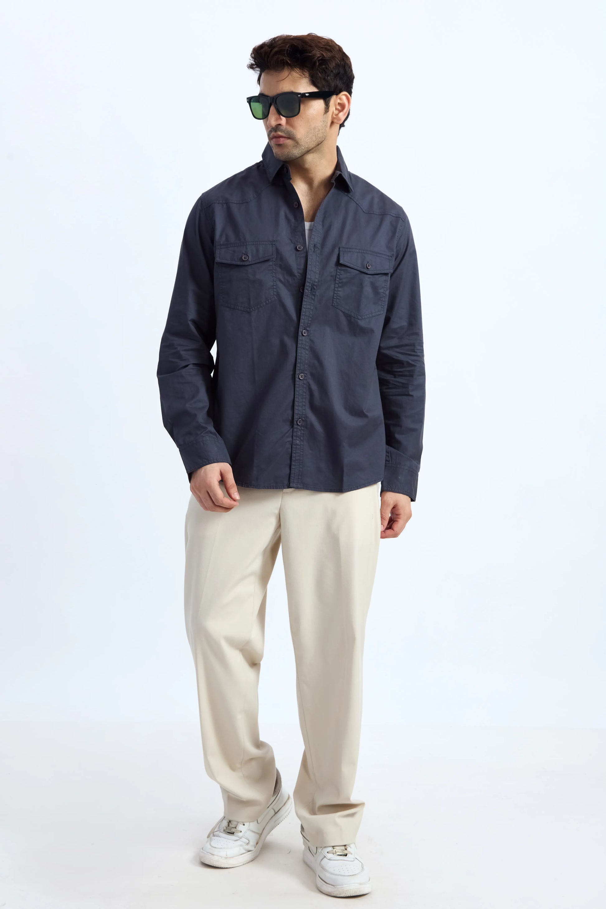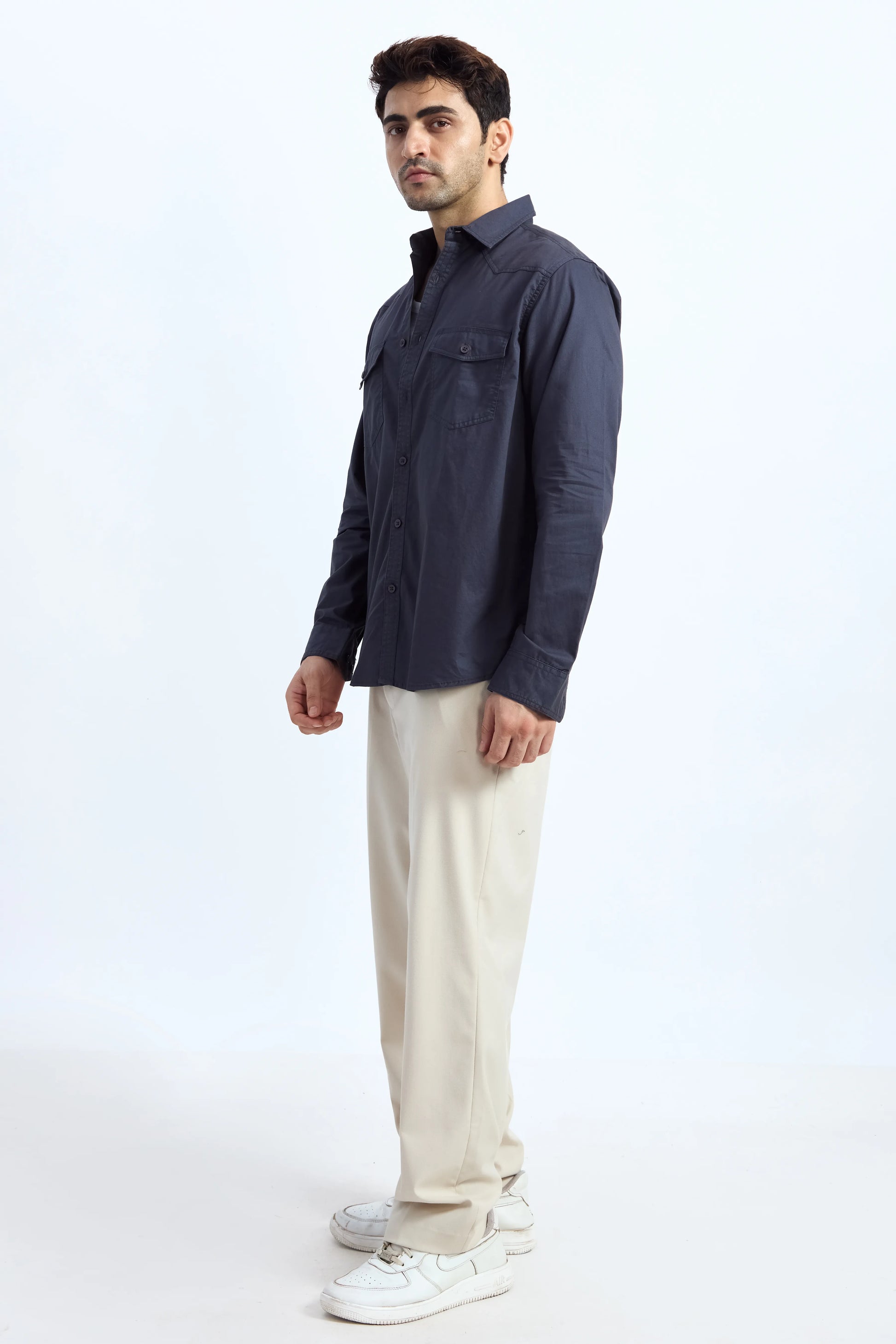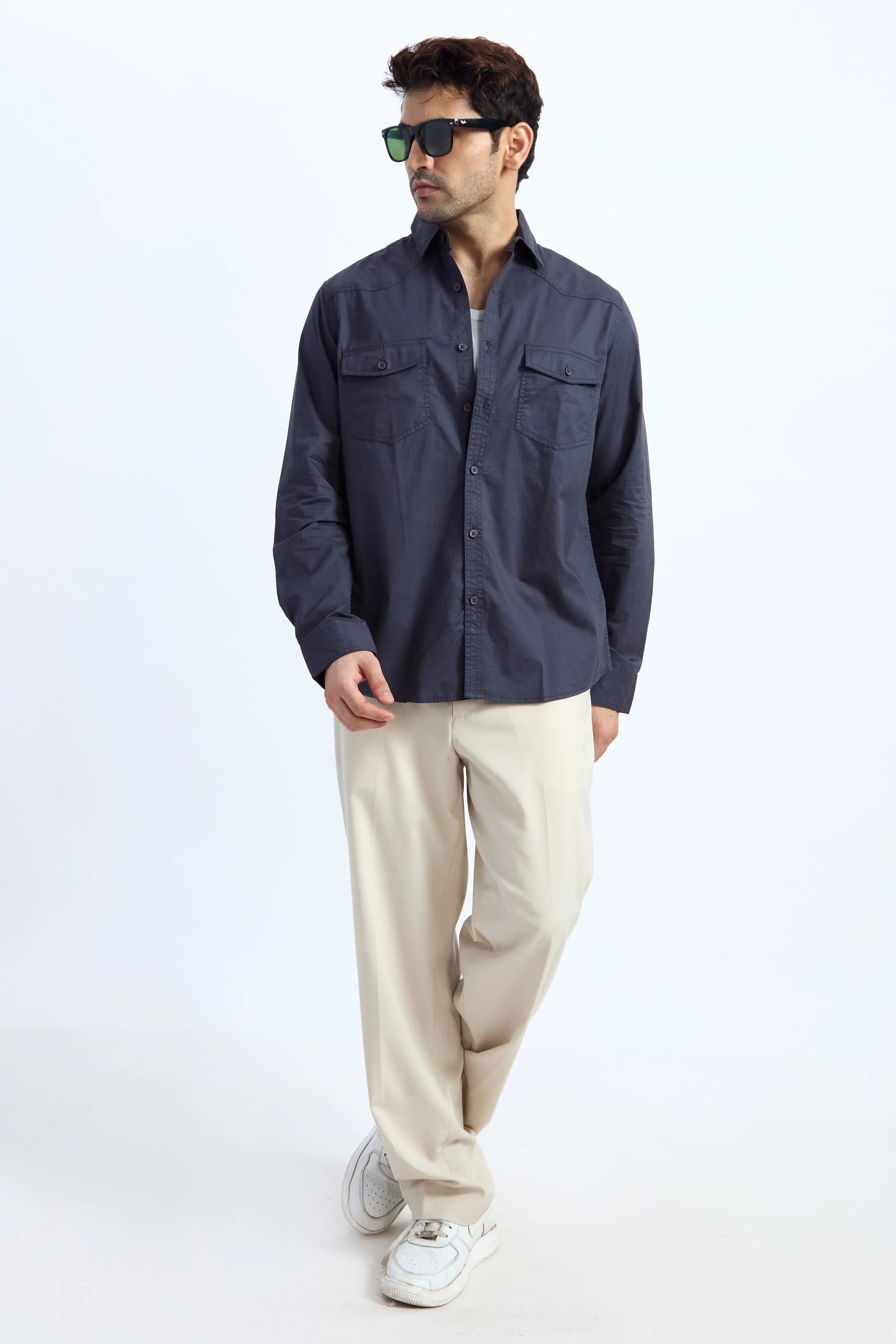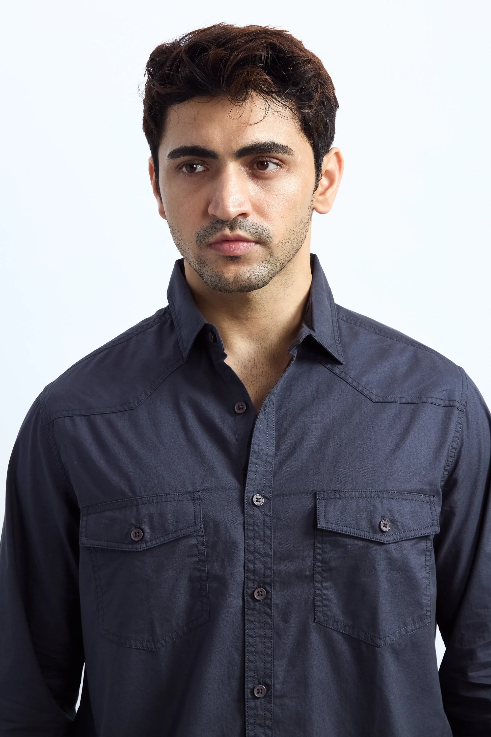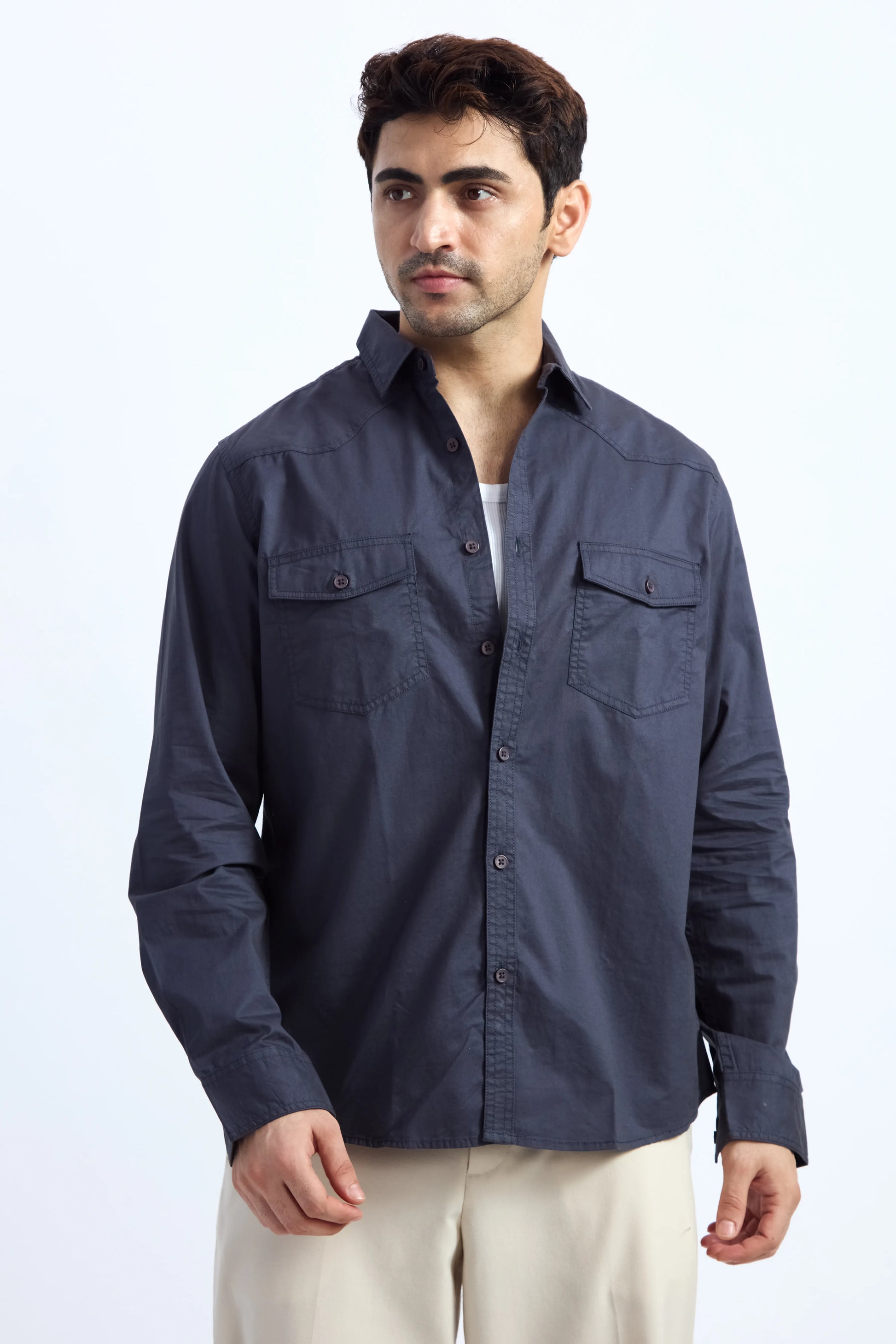 JONESBURG DARK GREY DOUBLE POCKET REGULAR FIT SHIRT