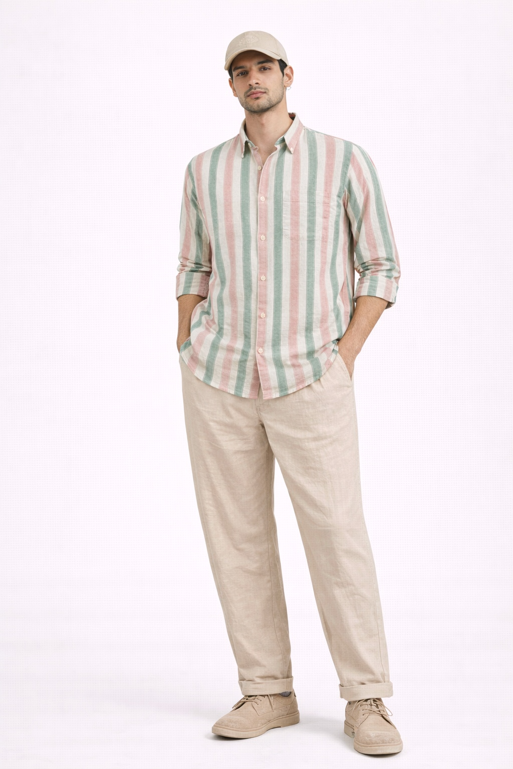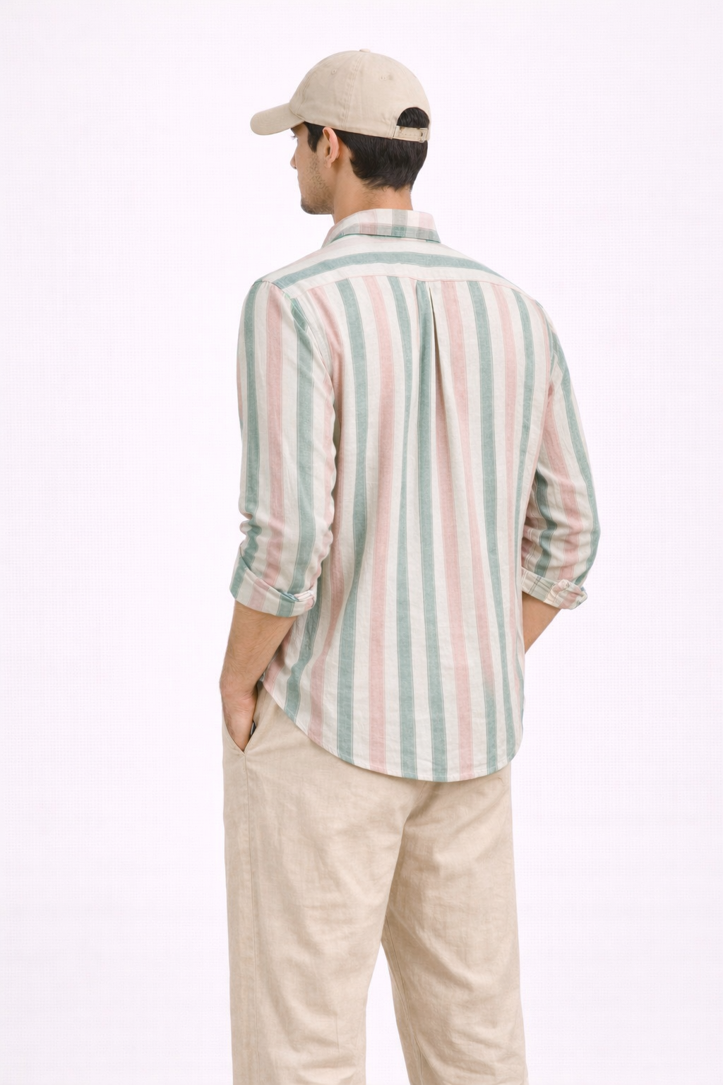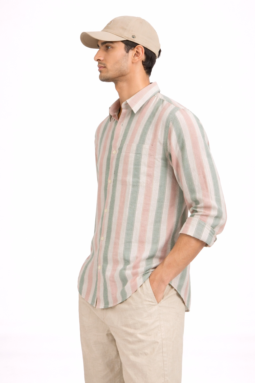 DARK GREEN STRIPE REGULAR FIT CASUAL SHIRT