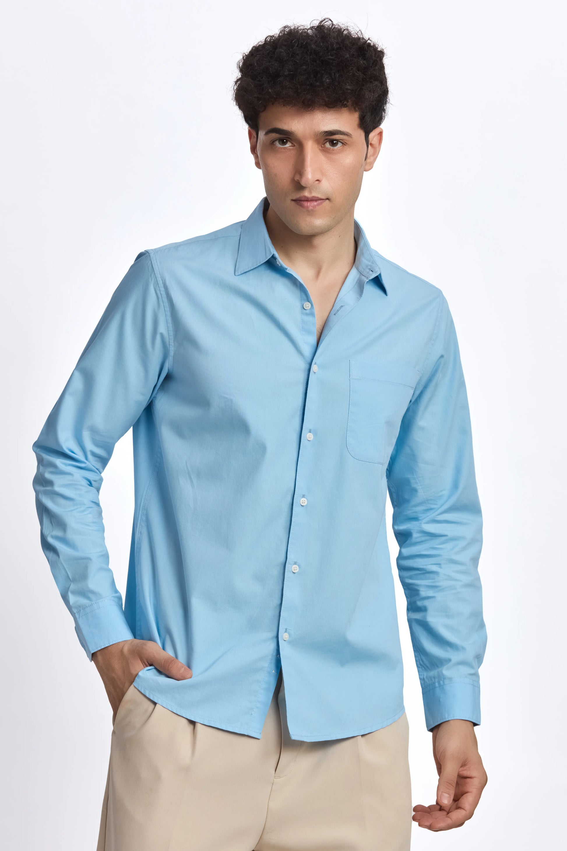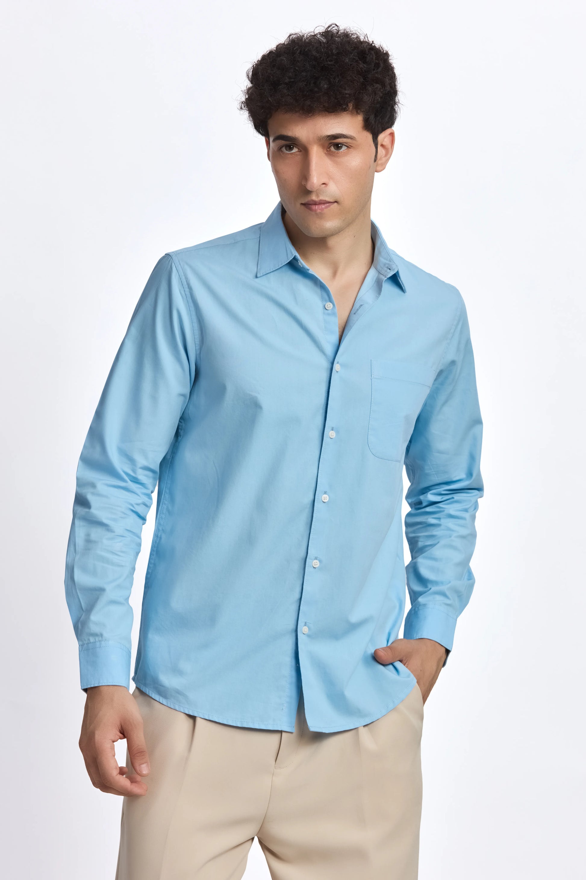 SKY BLUE POPLIN REGULAR FIT SHIRT