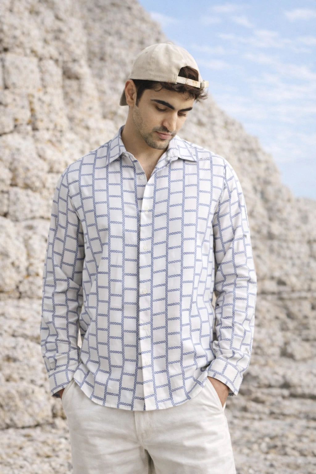 PURPLE CHAIN TENCEL PRINTED REGULAR FIT SHIRT