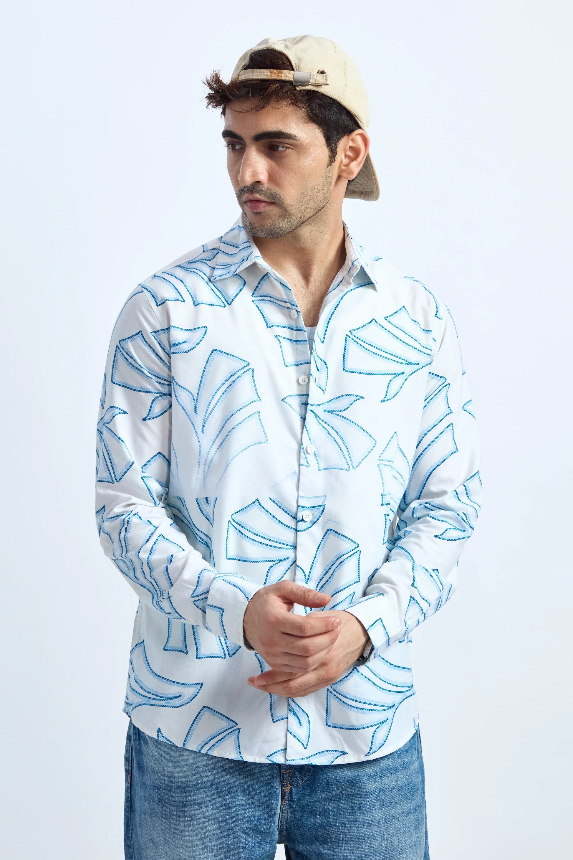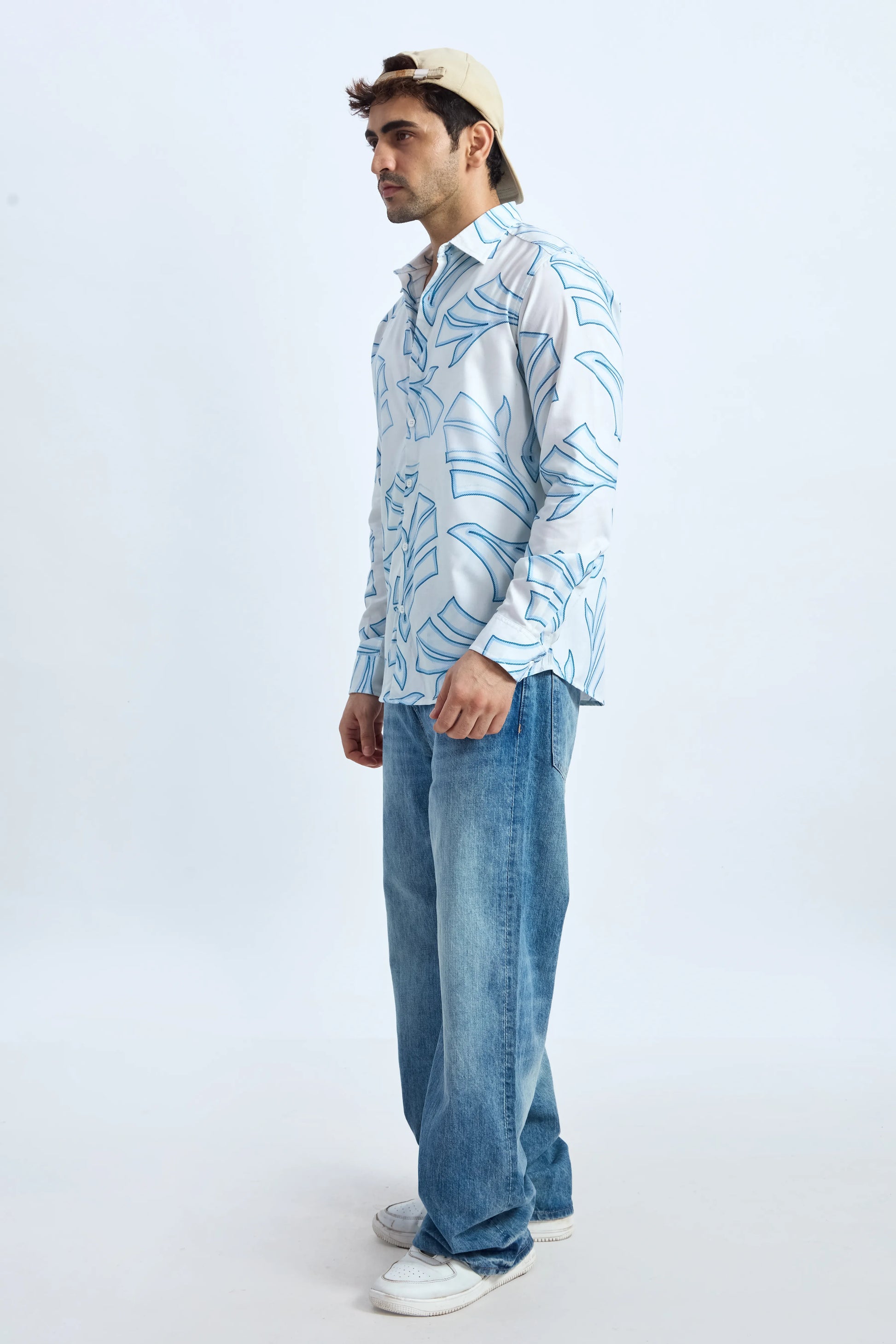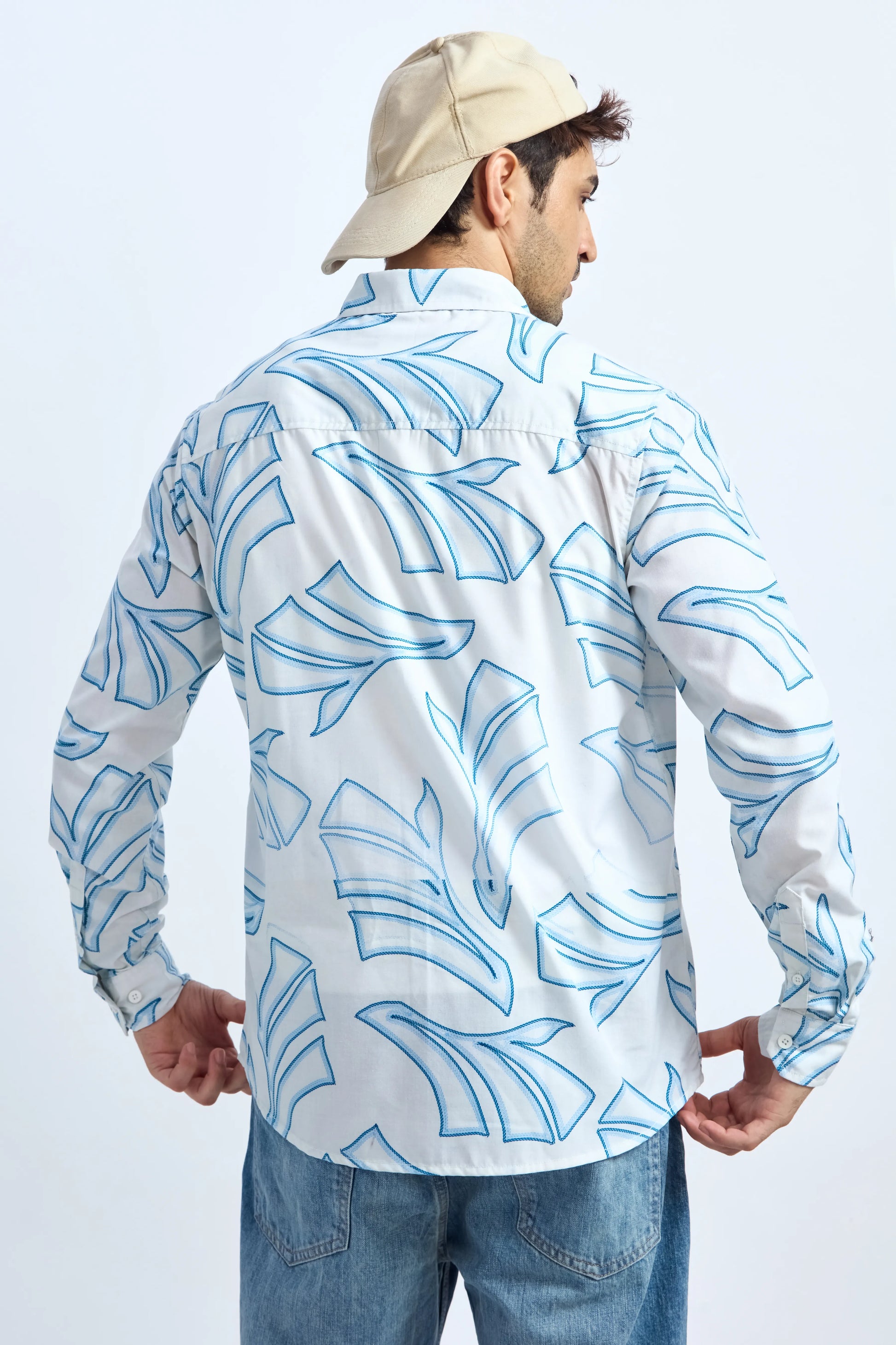 WHITE PRINTED REGULAR FIT TENCEL SHIRT