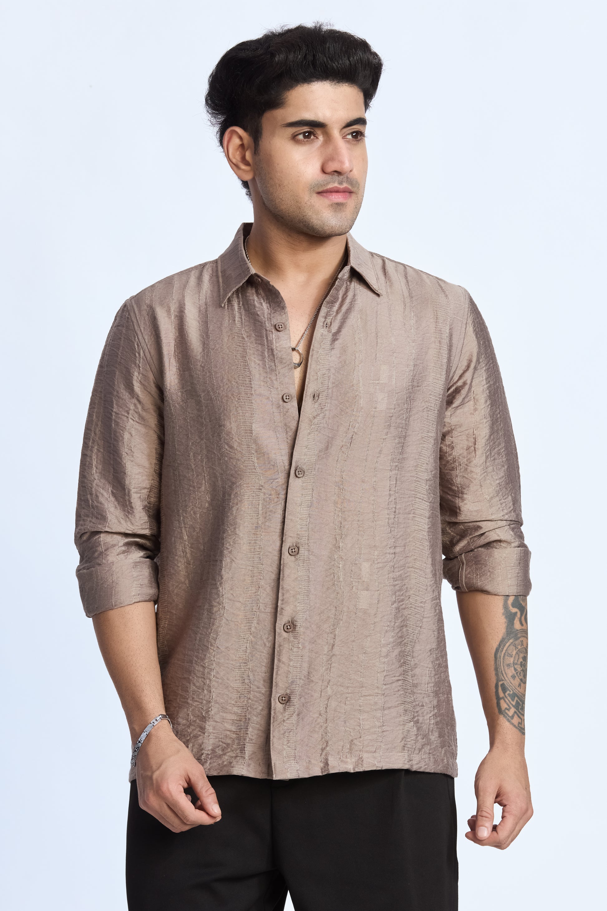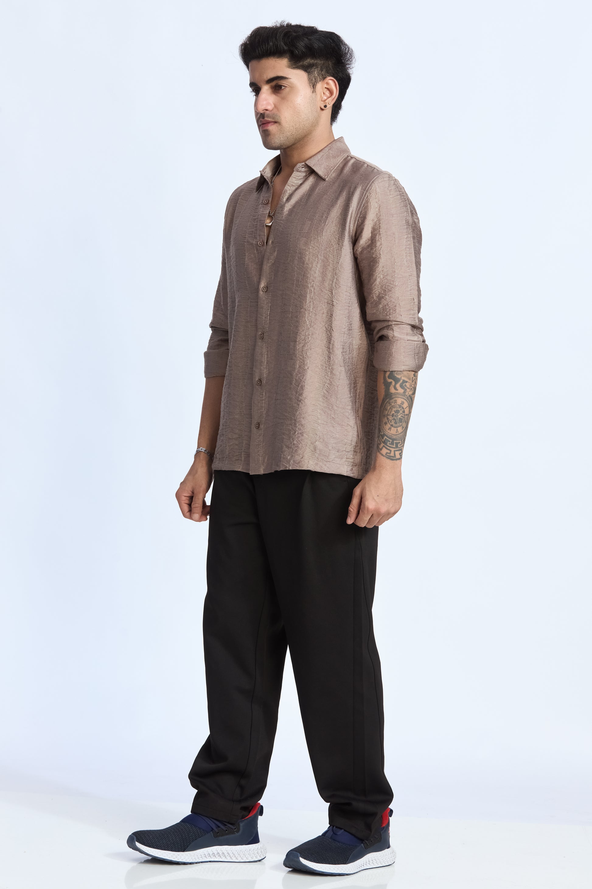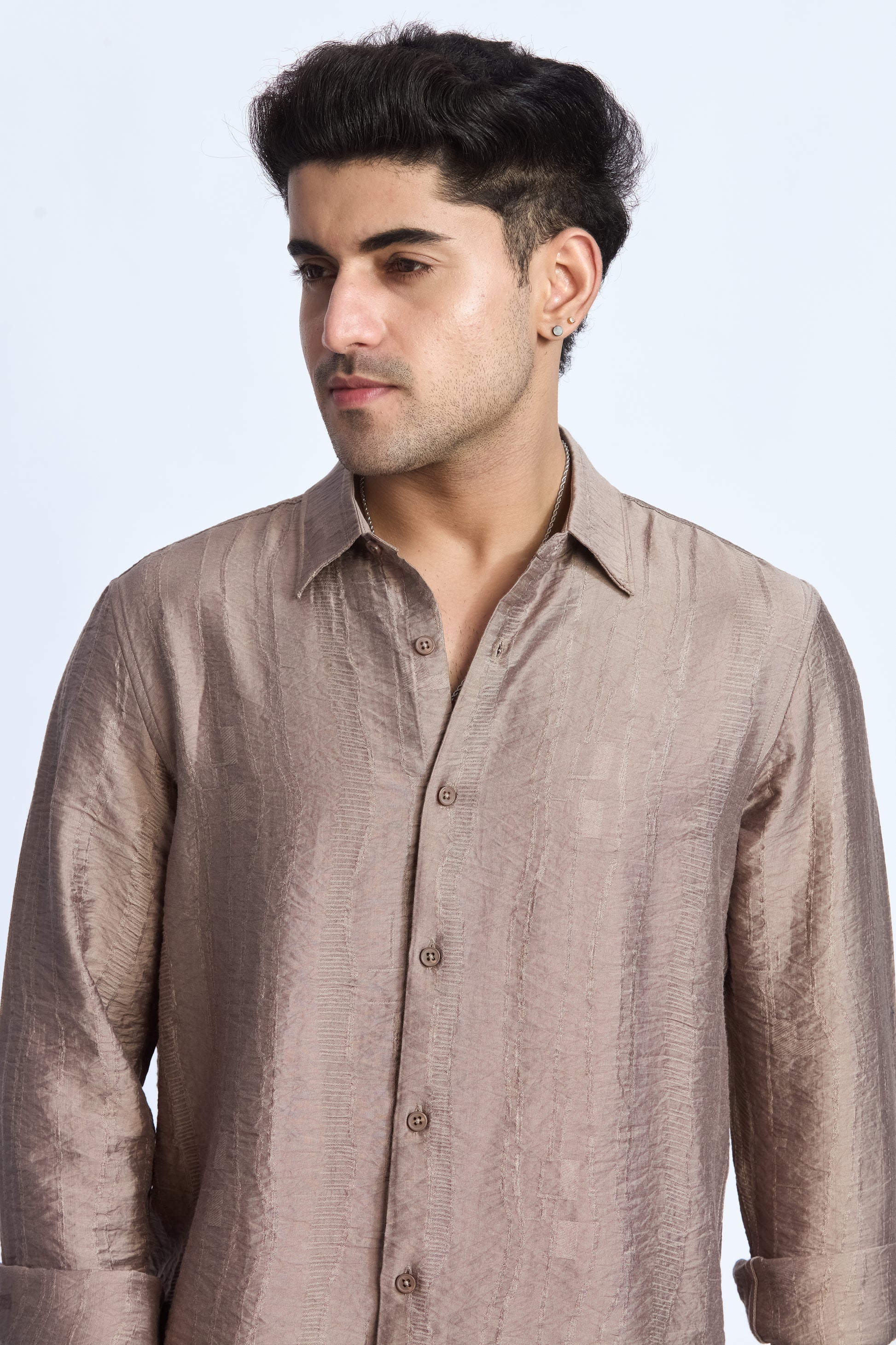 LIGHT MOCHA JACQUARD FLOWING SHIRT