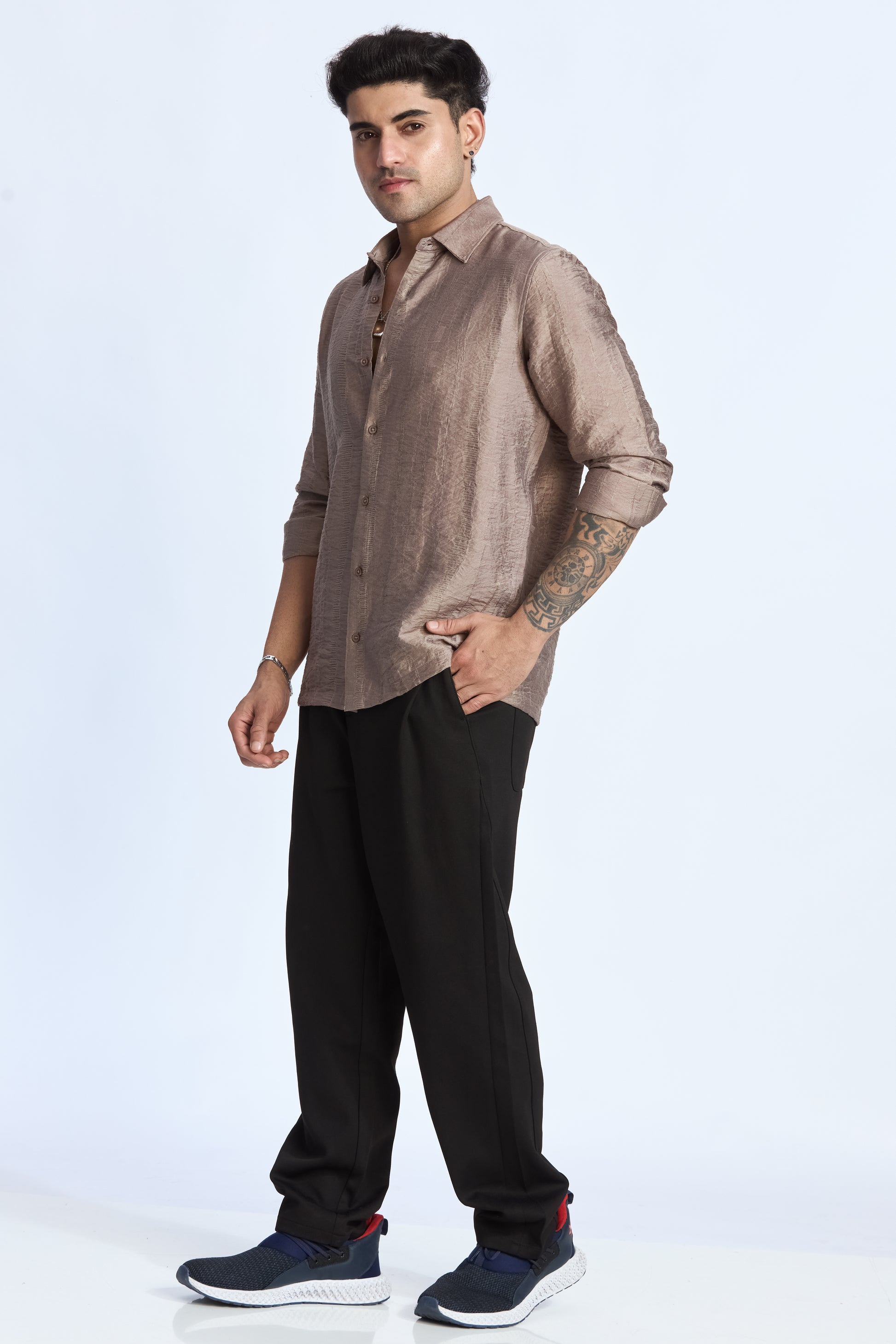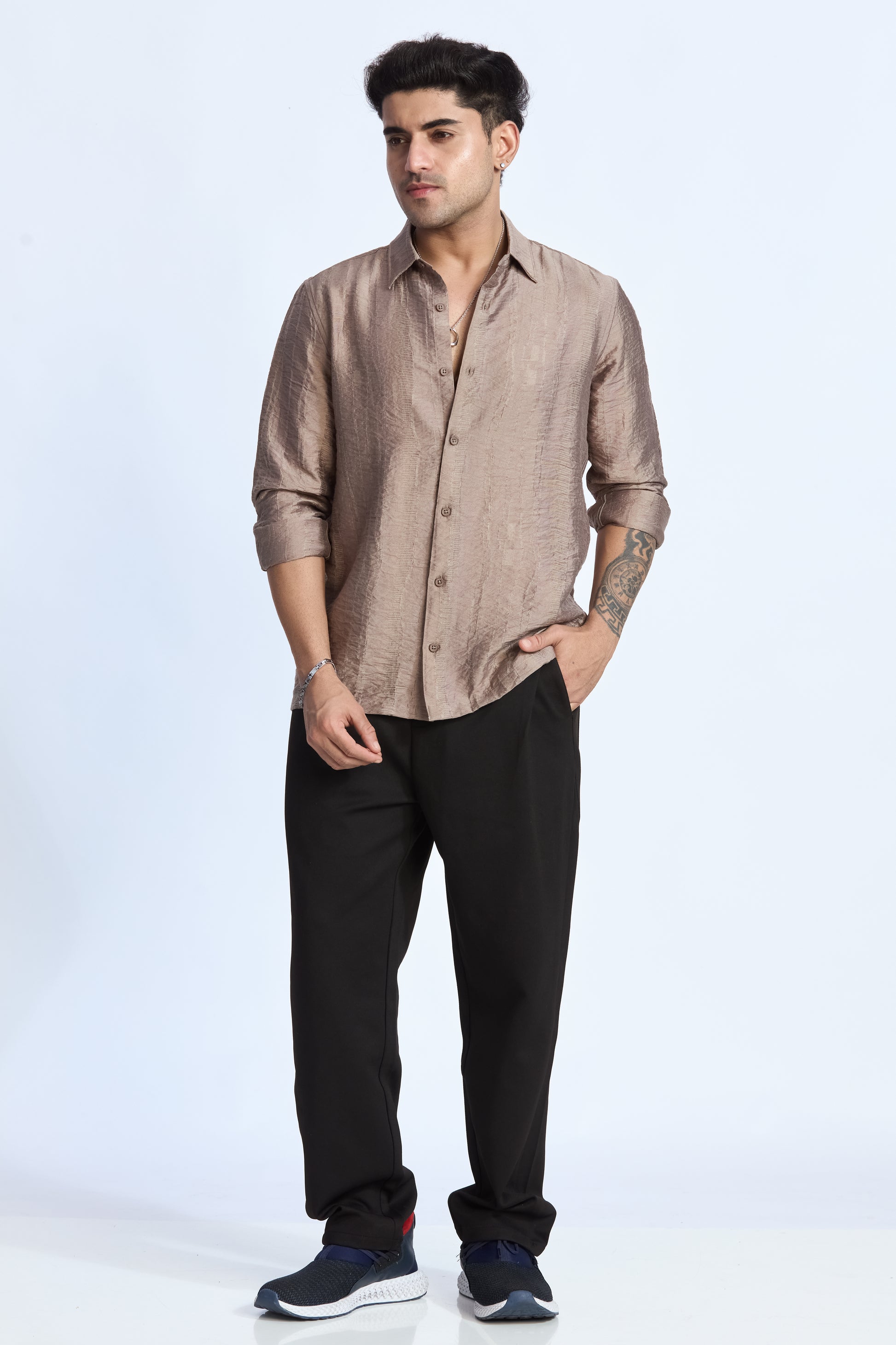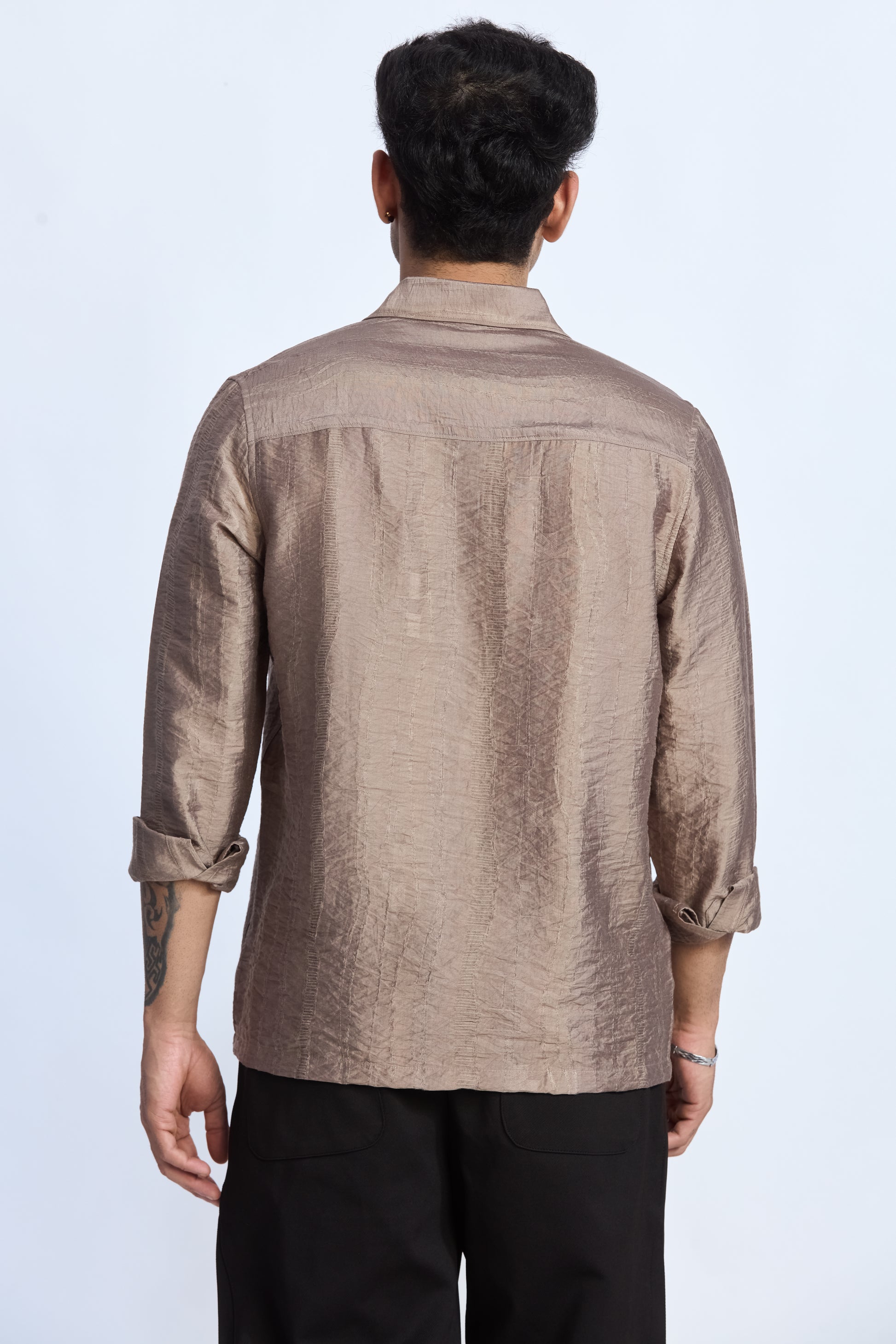 LIGHT MOCHA JACQUARD FLOWING SHIRT