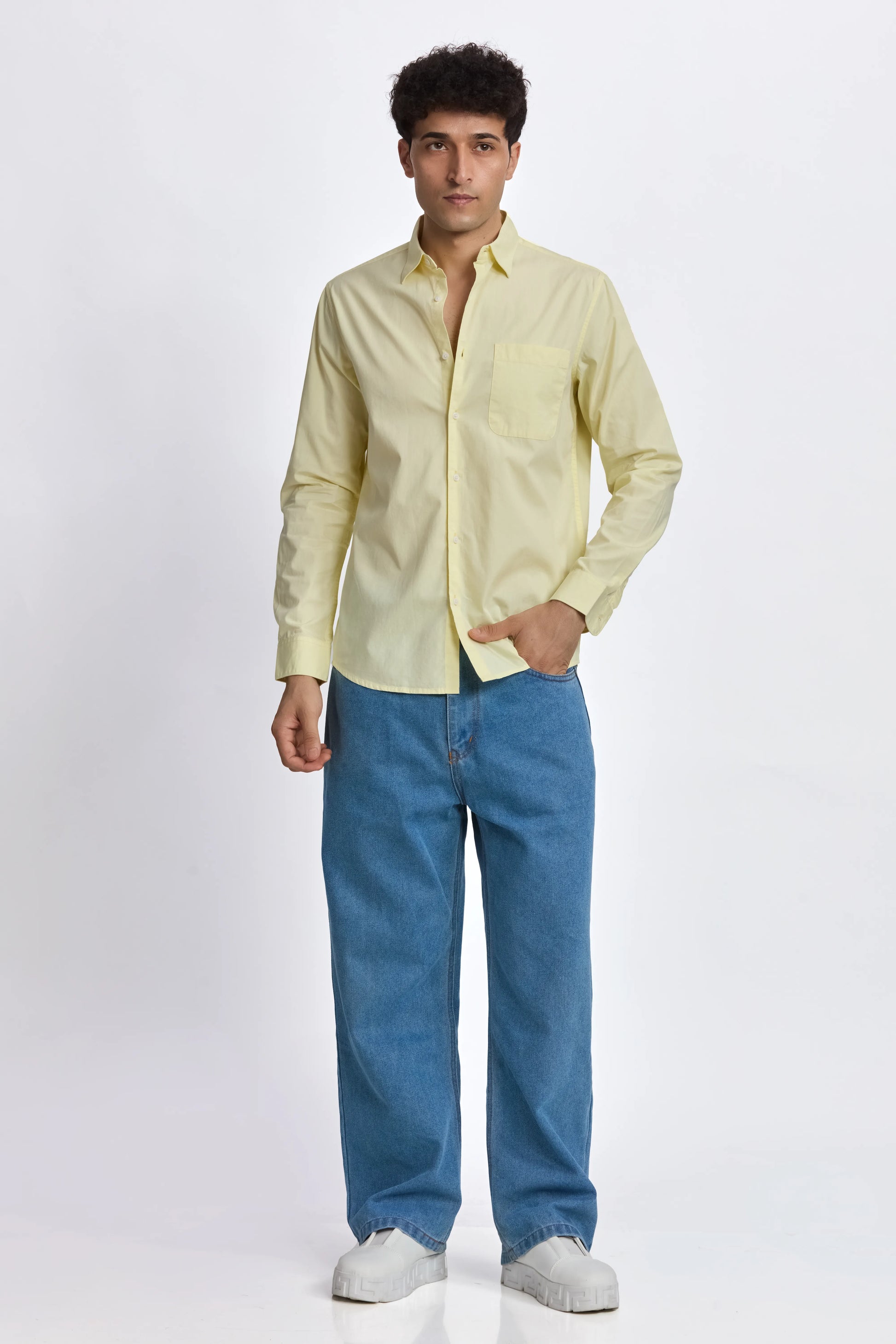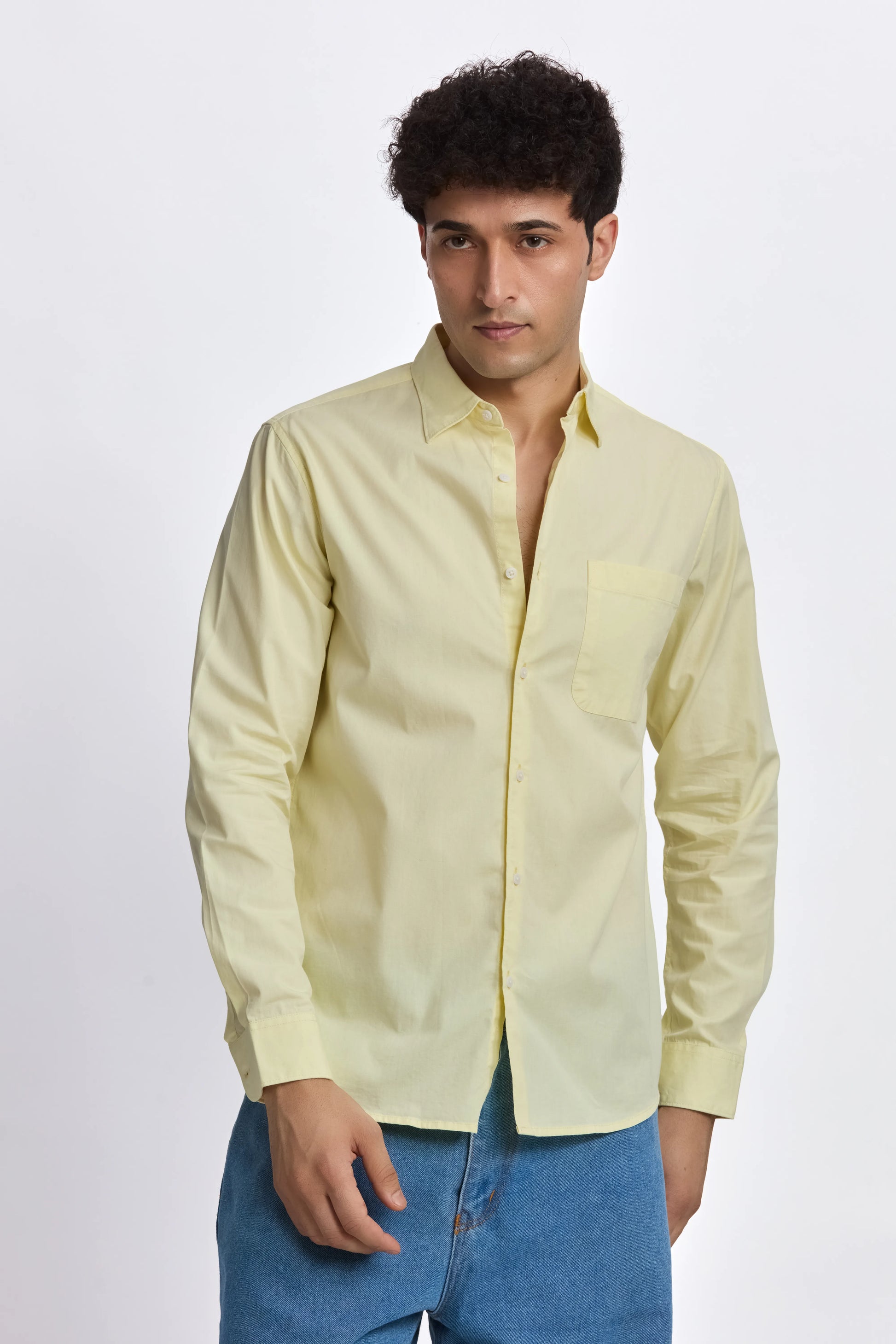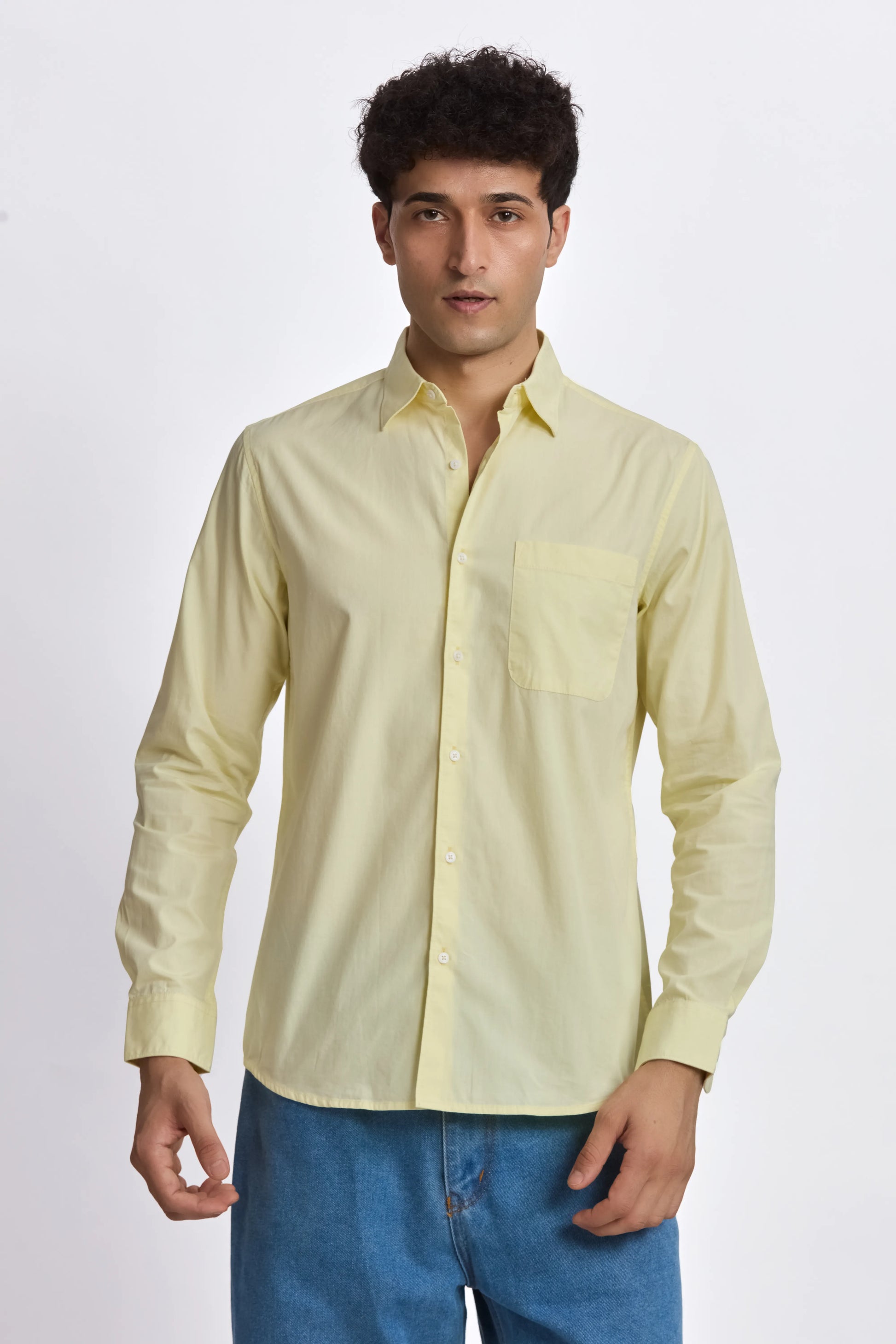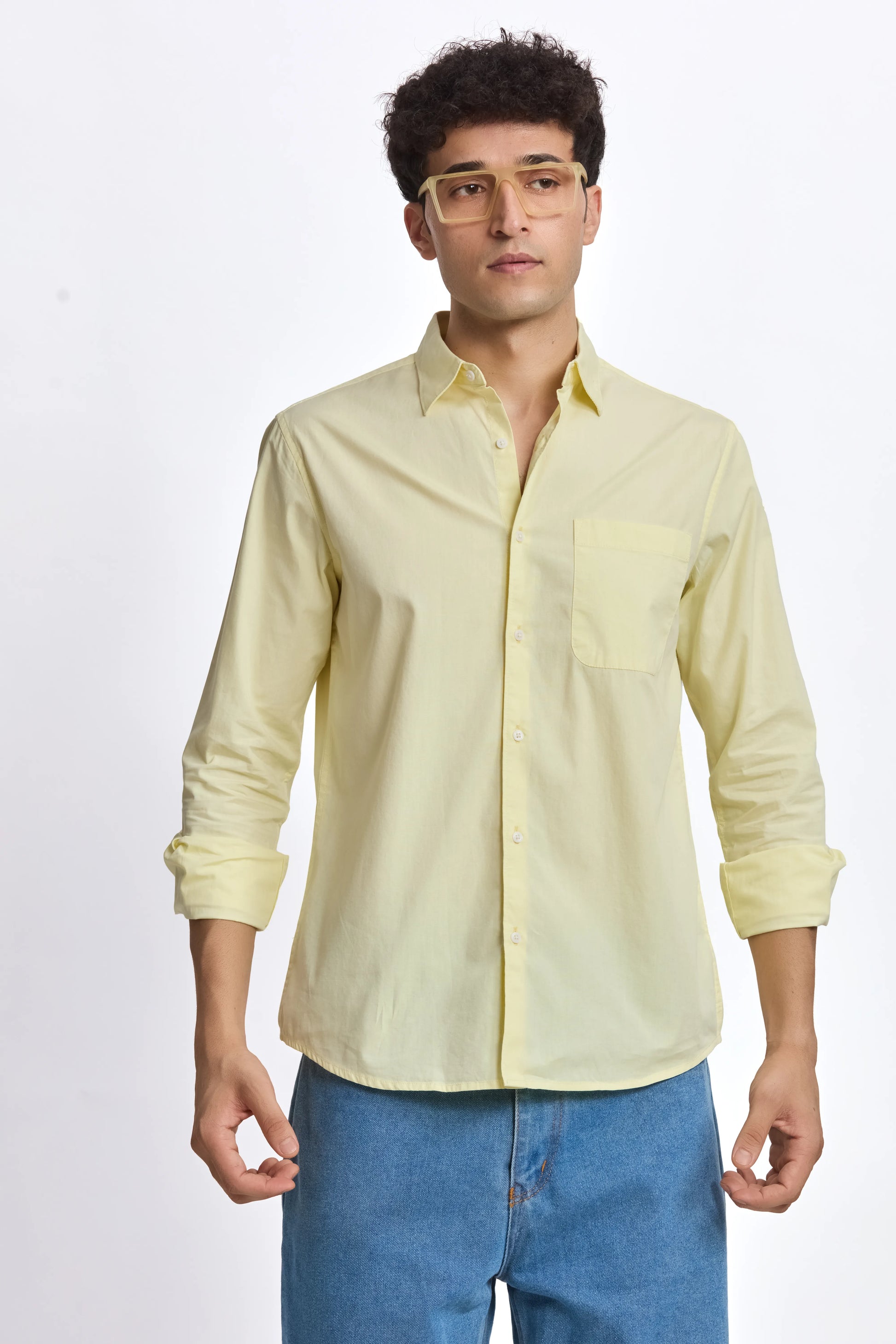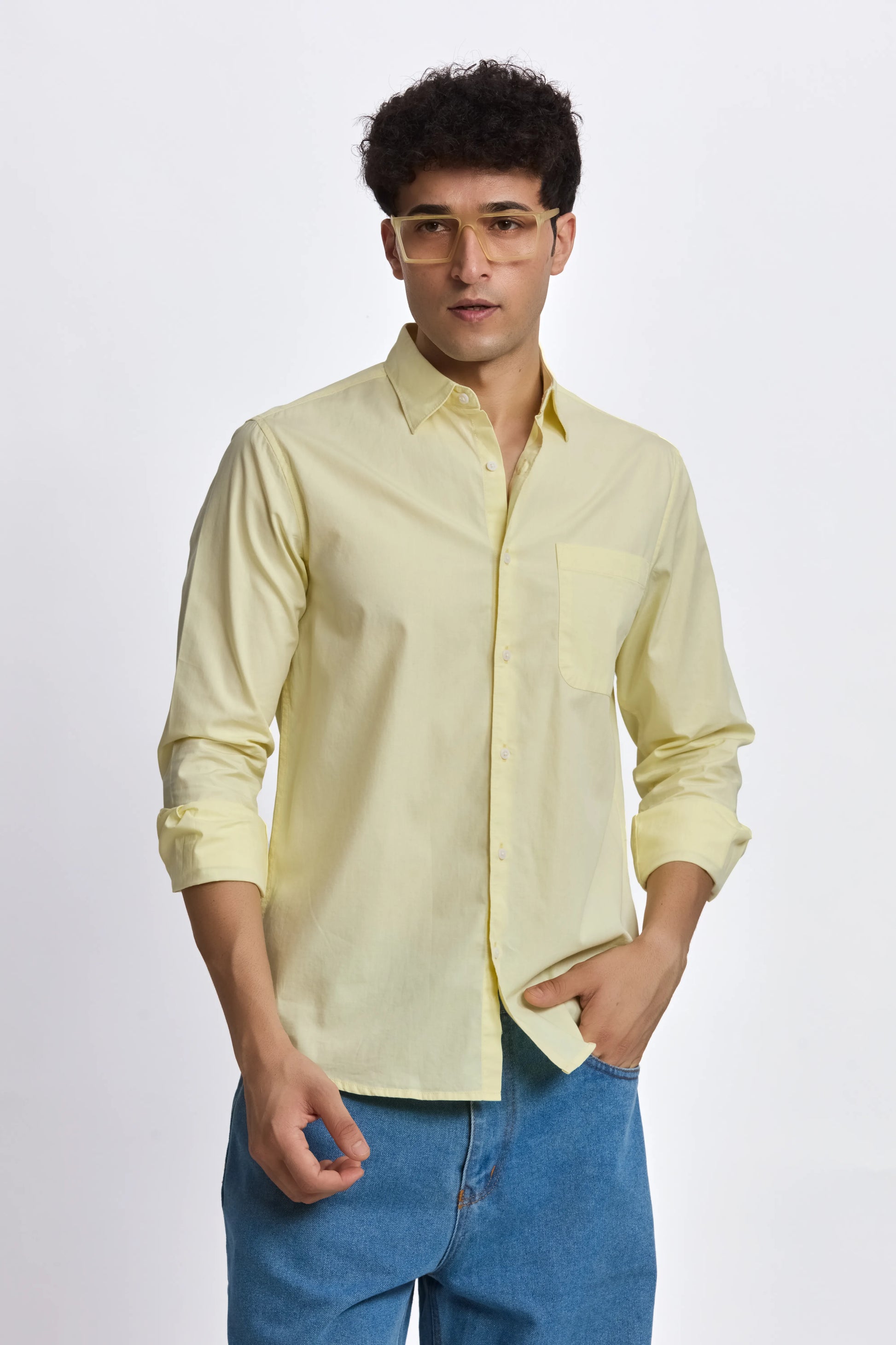 LIGHT YELLOW POPLIN REGULAR FIT SHIRT