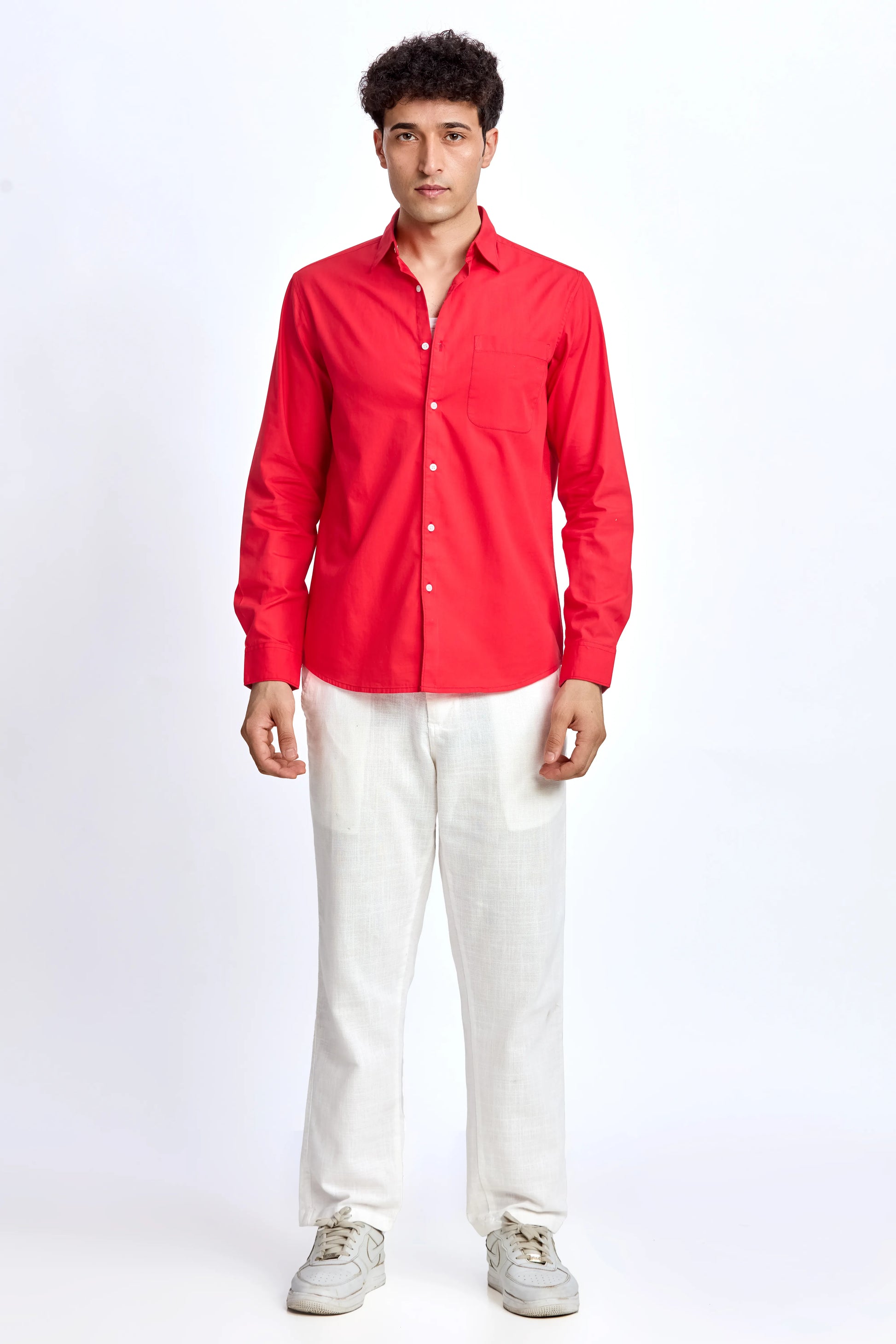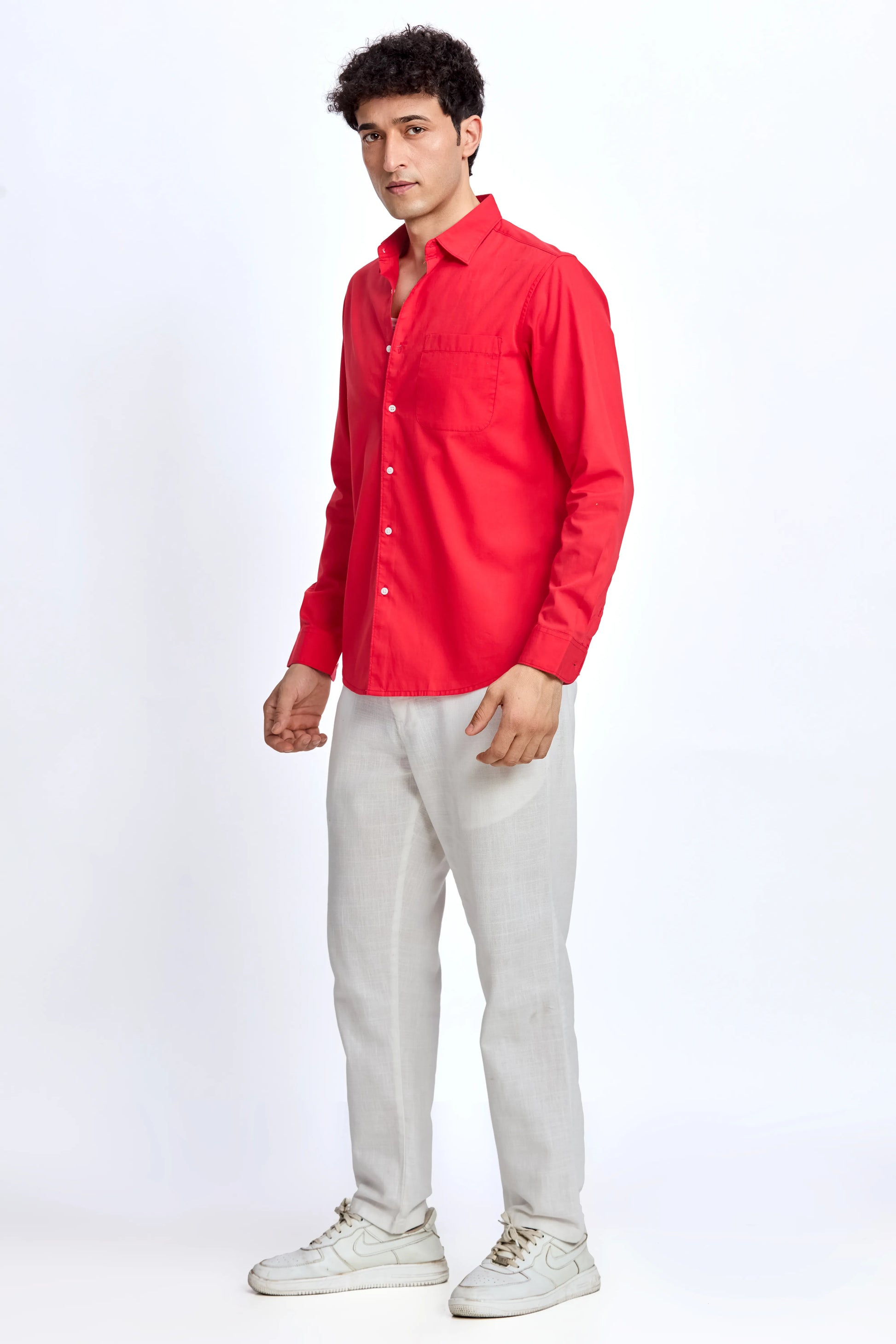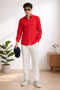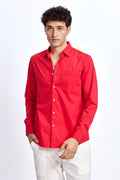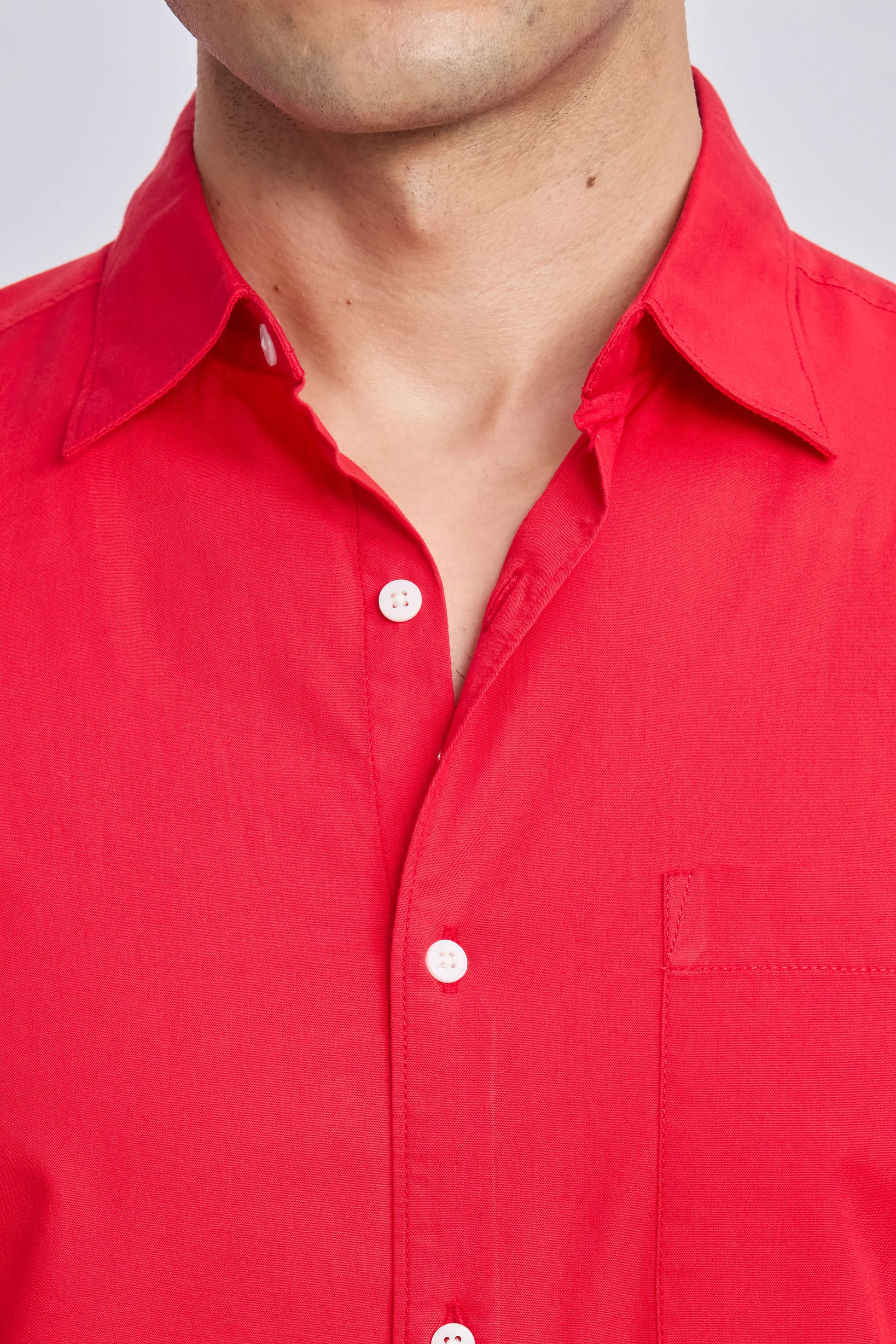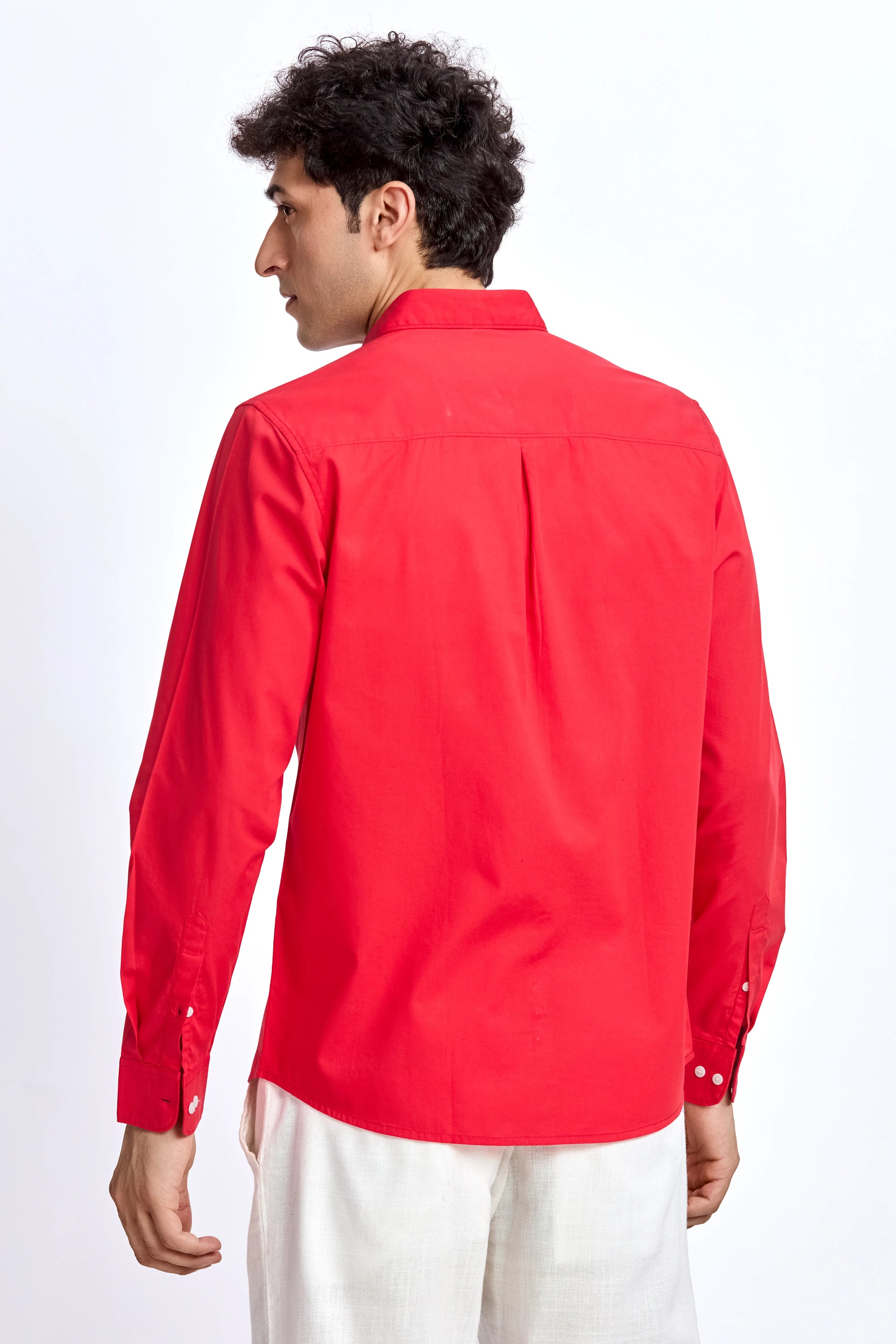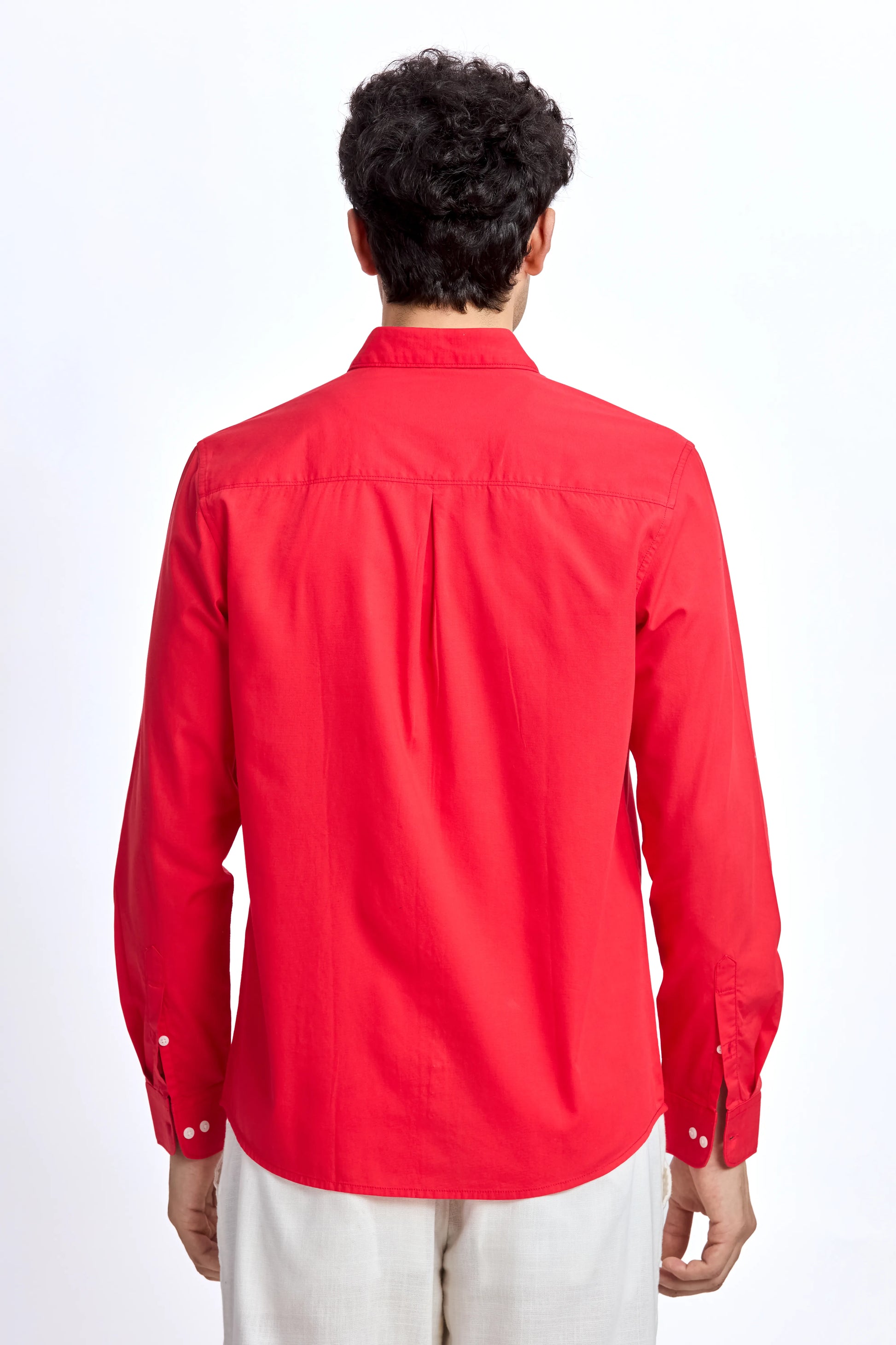 CHERRY RED POPLIN REGULAR FIT SHIRT