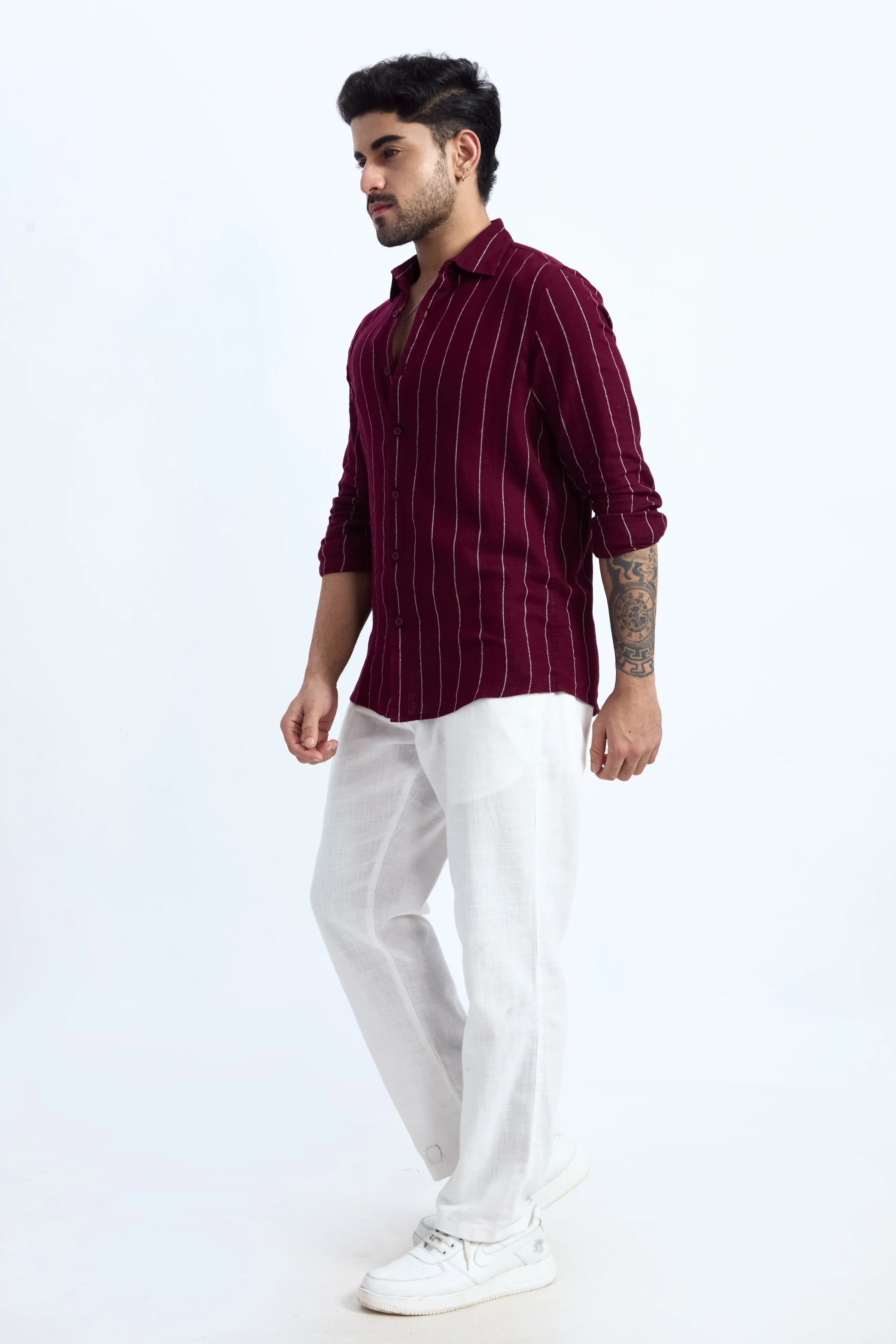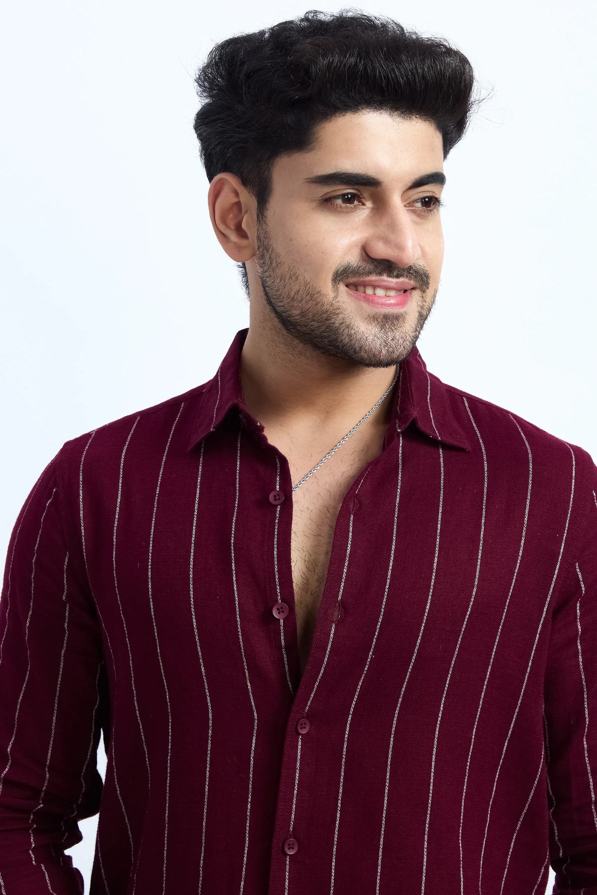 MAROON PINSTRIPE COTTON TEXTURED SHIRT