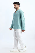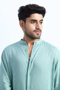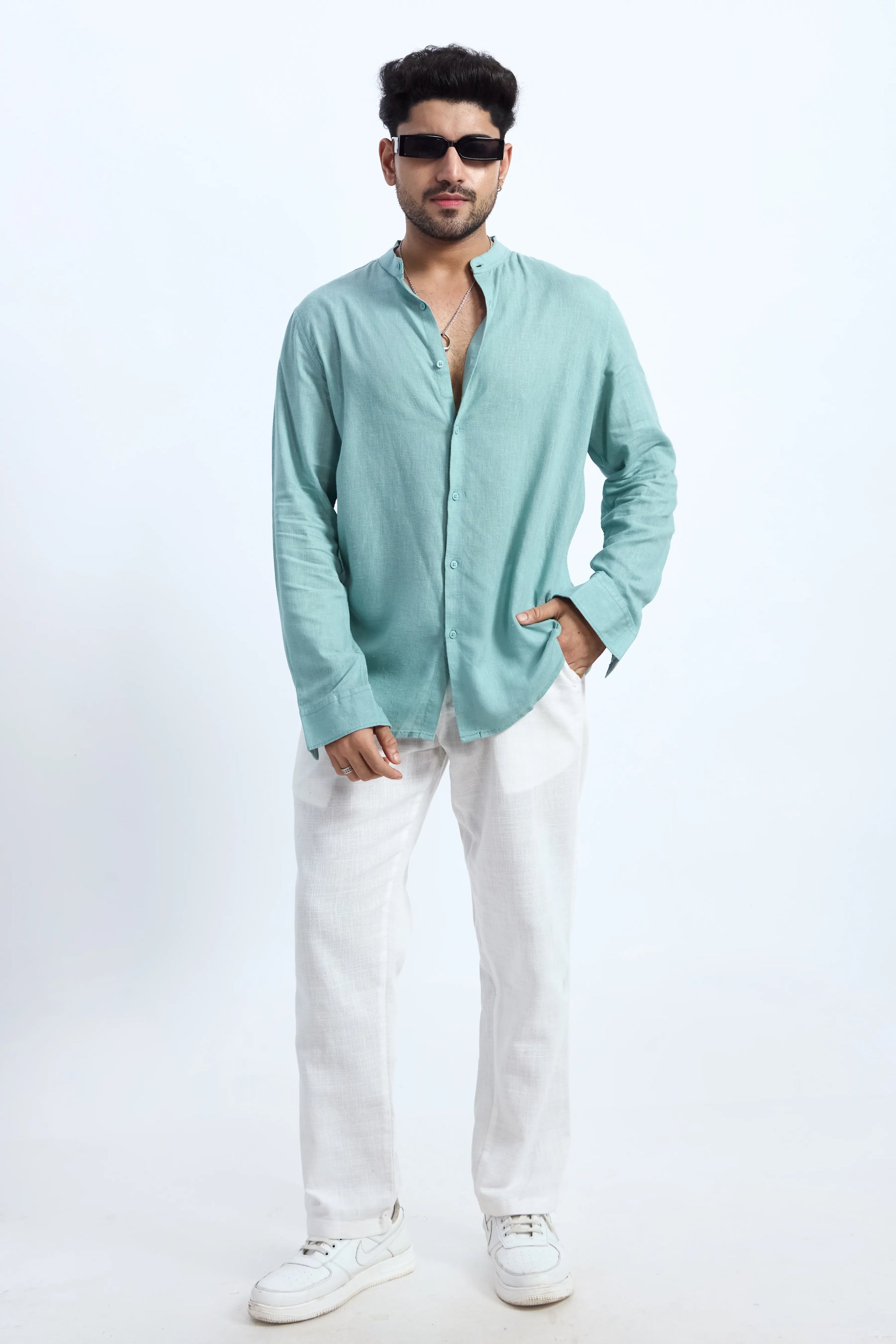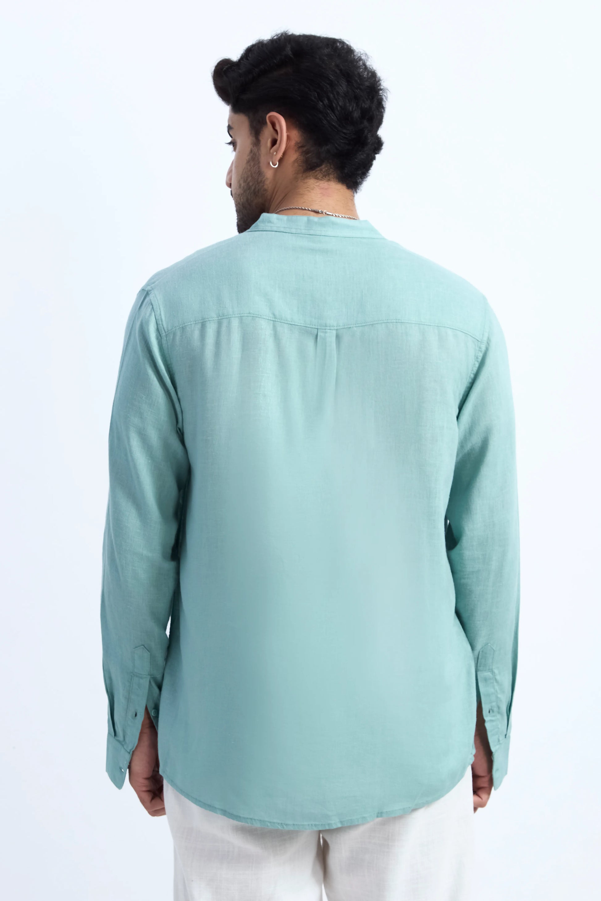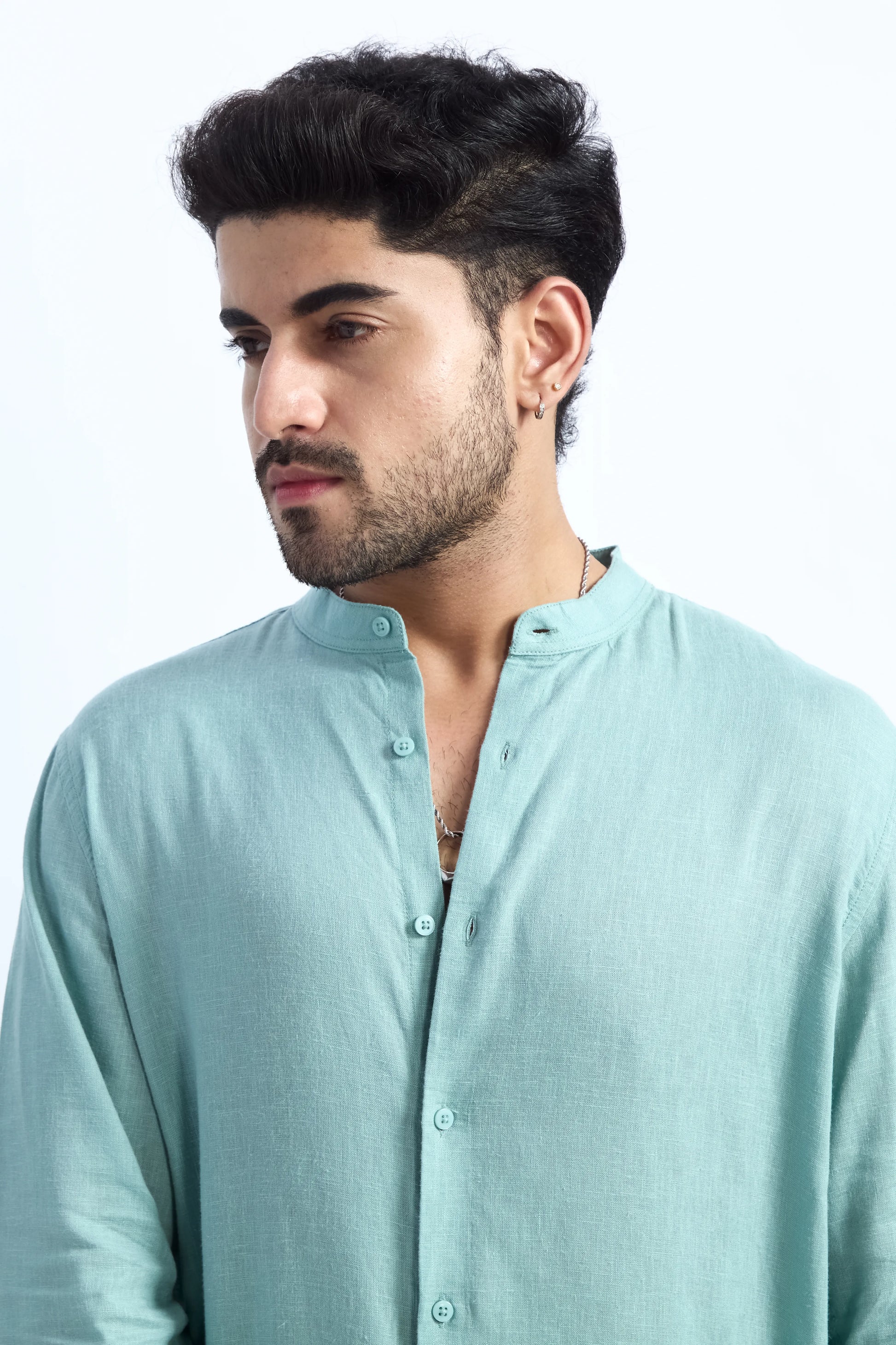 MINT GREEN LINEN BLEND MANDARIN COLLAR SHIRT
