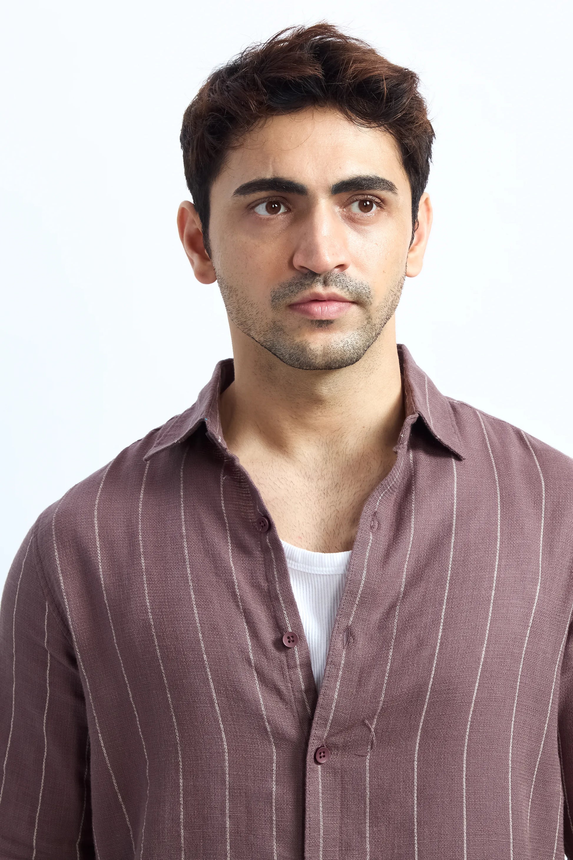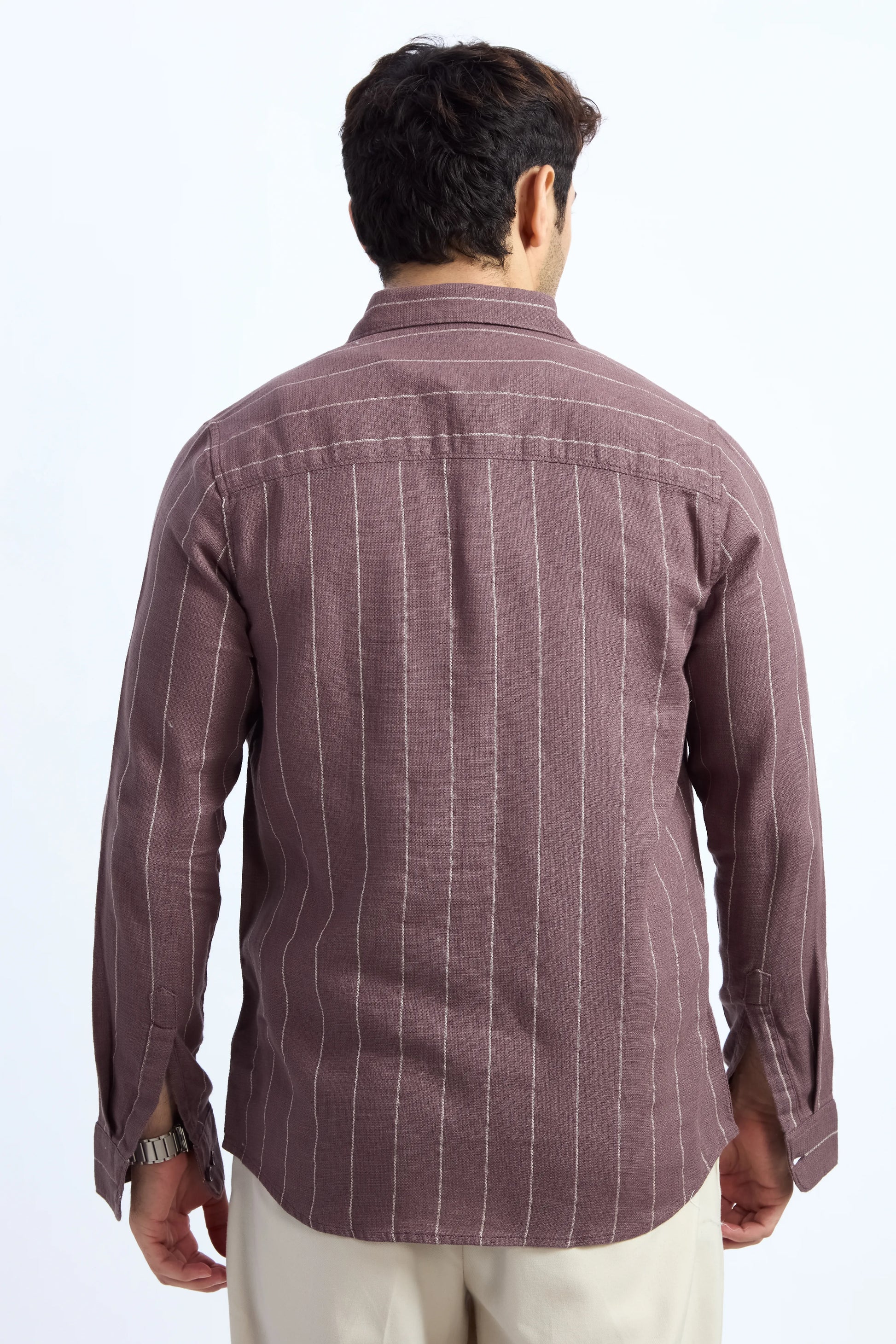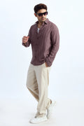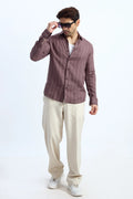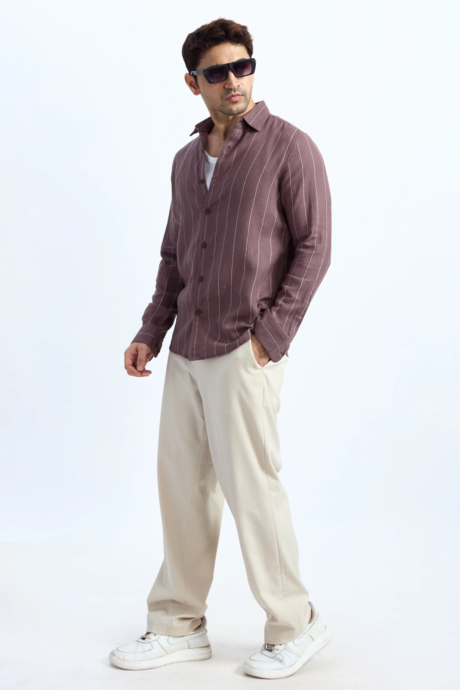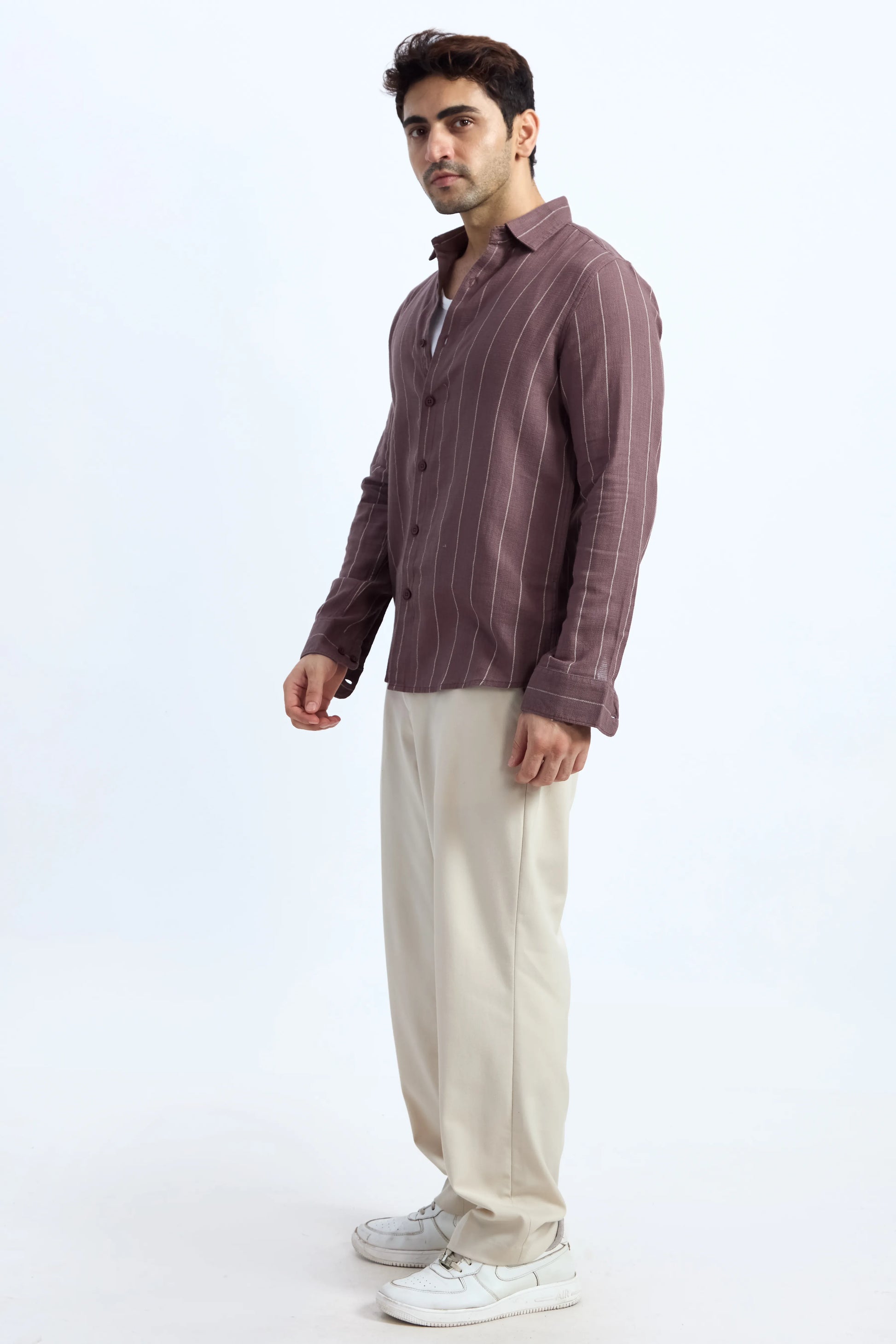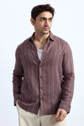 MOCHA MOUSSE PINSTRIPE COTTON TEXTURED SHIRT