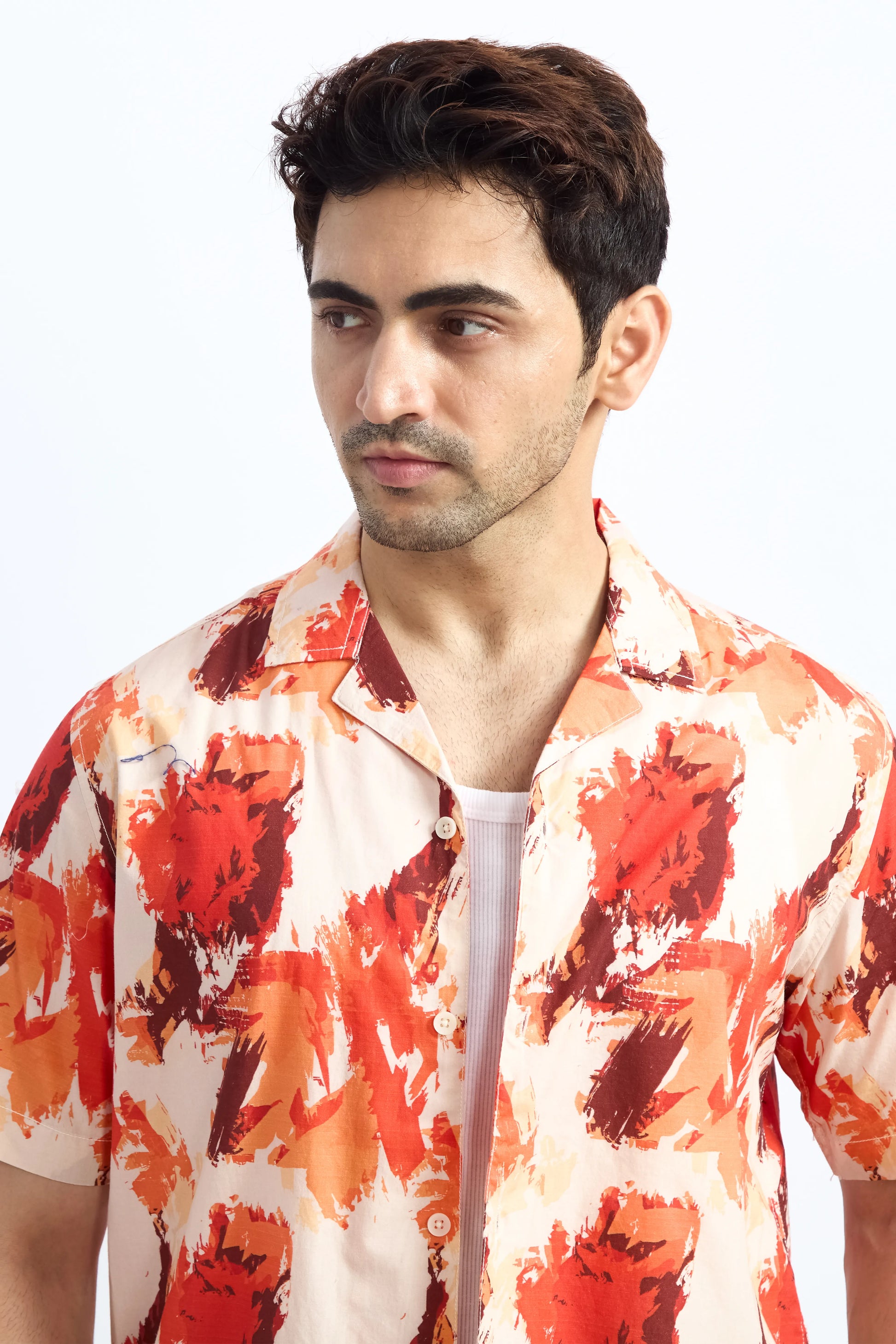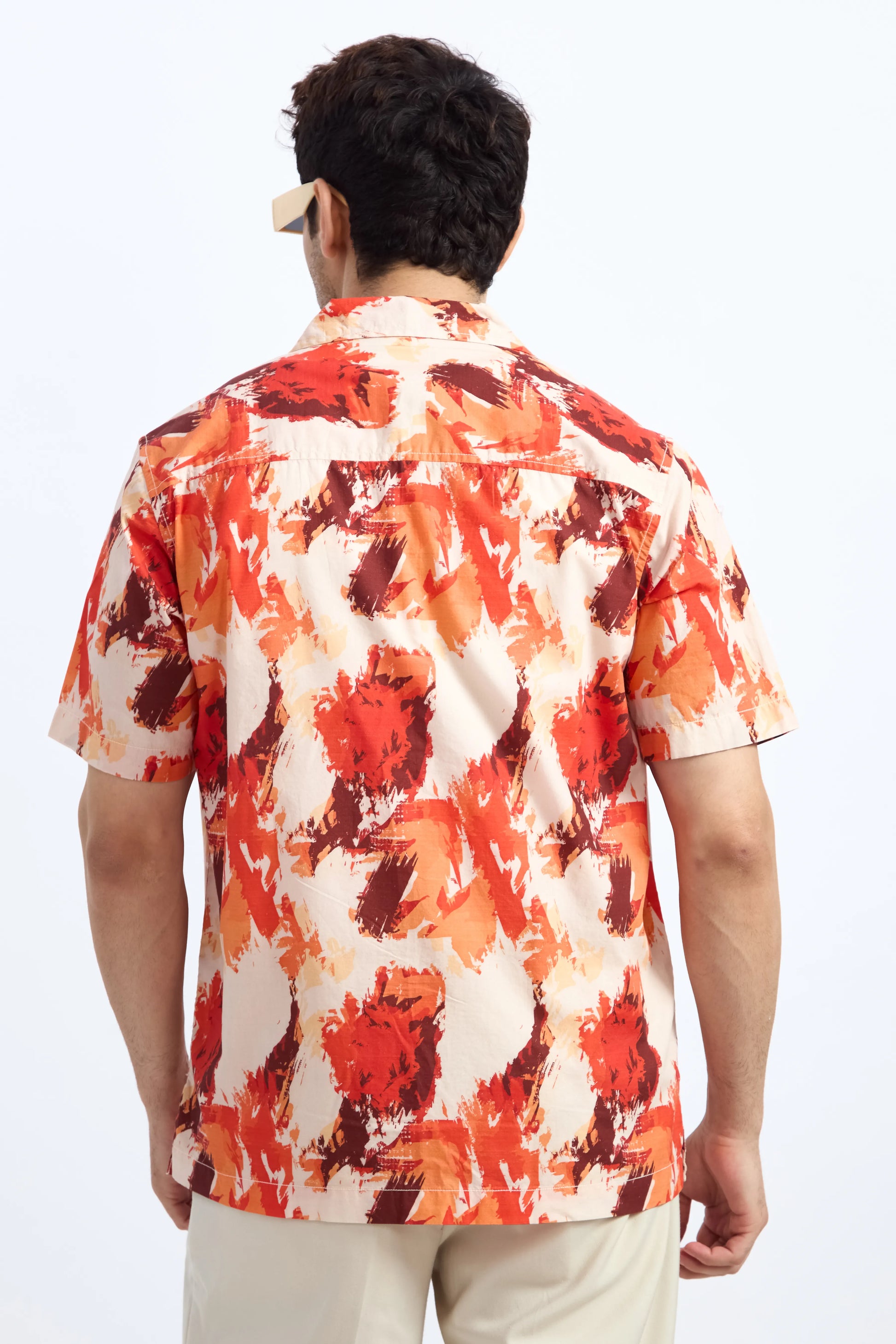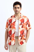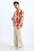 ORANGE PRINTED RELAXED FIT COTTON SHIRT